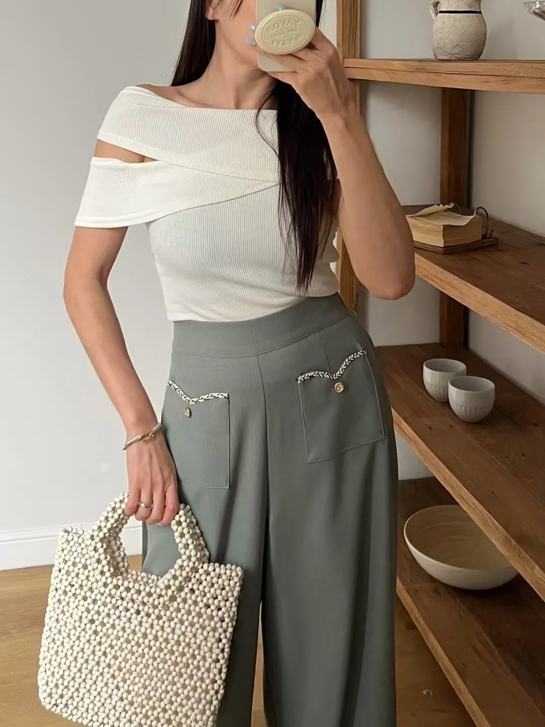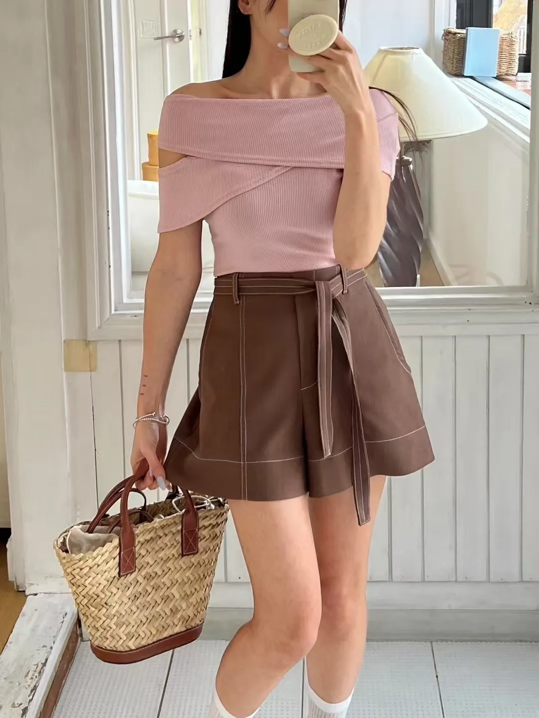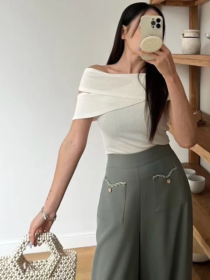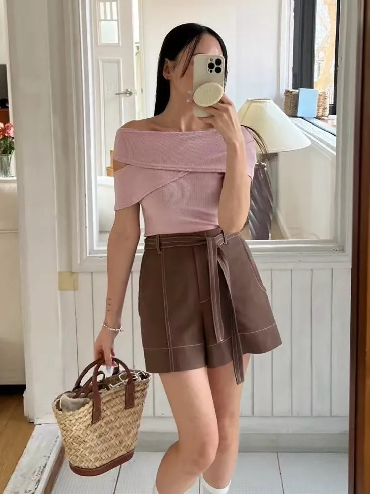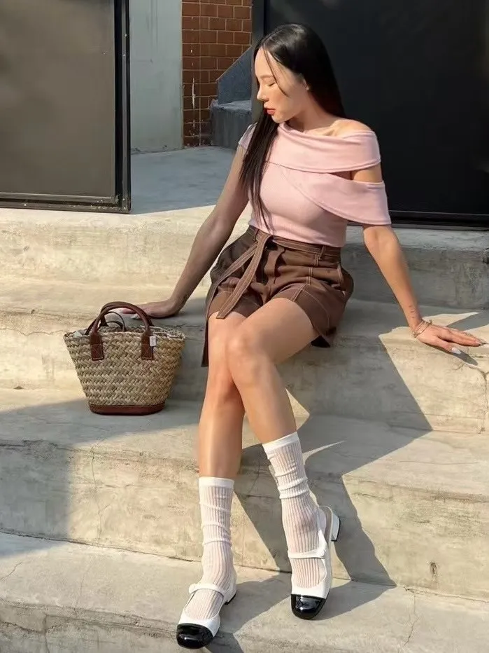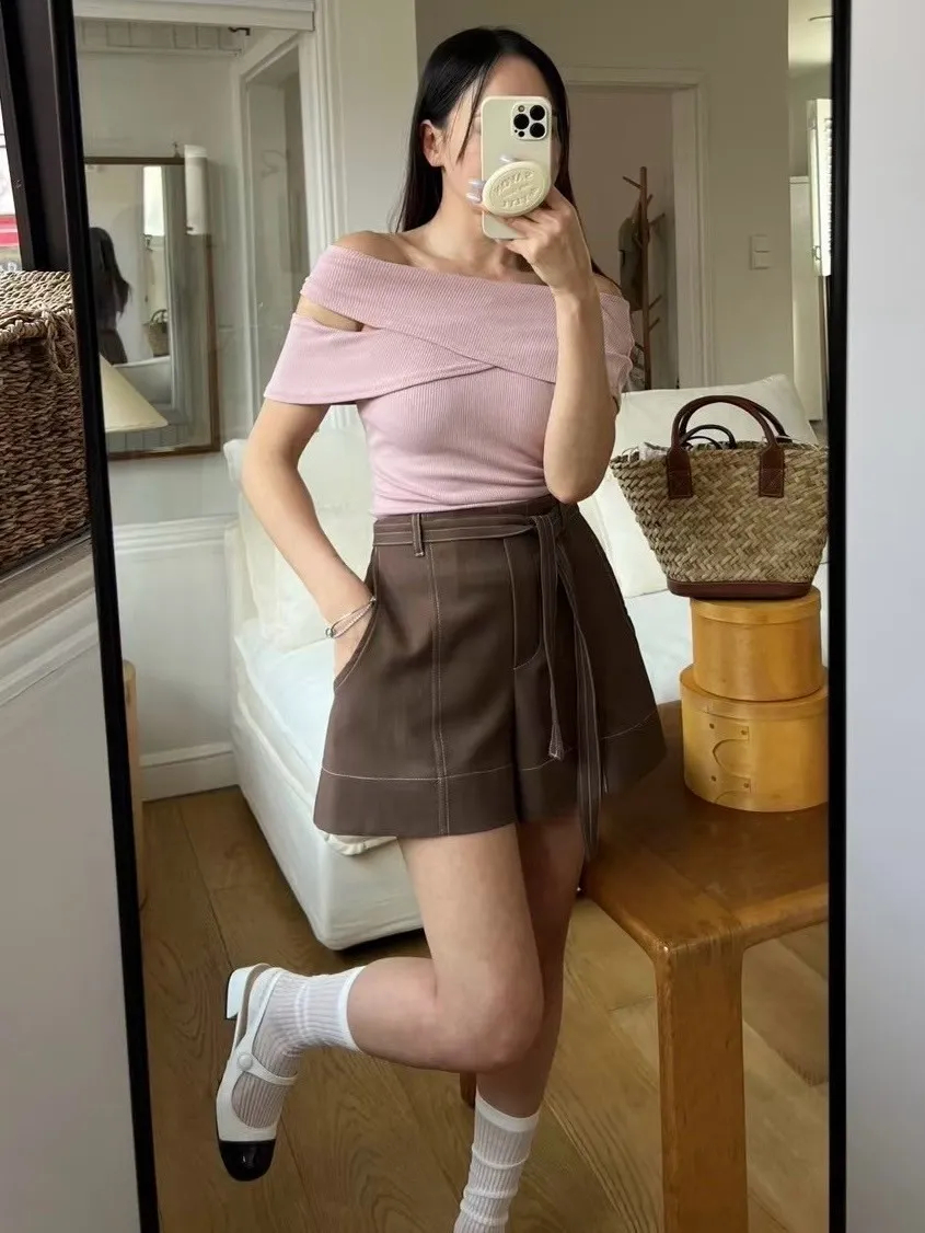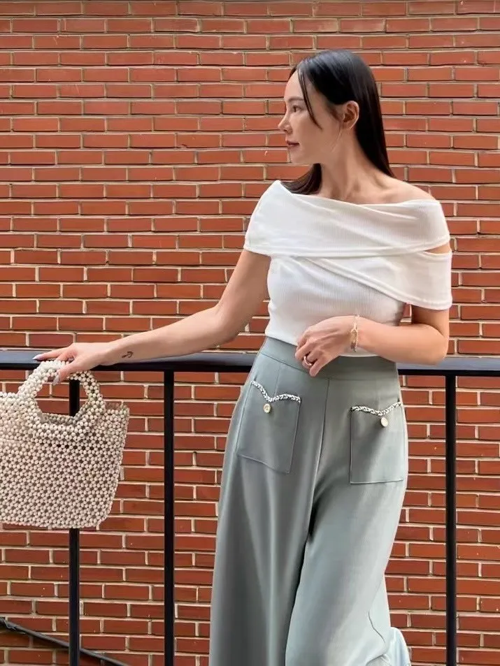 聚酯+彈力 薄款彈性大 顏色好看 層次造型 小露香肩