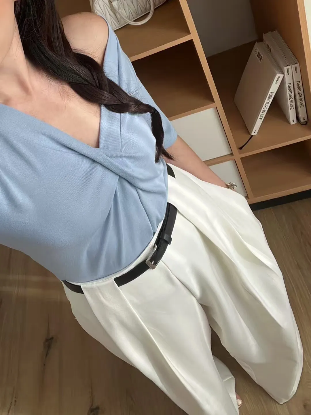 棉+彈力 可拉一字領 垂墜感大寬袖 實體很美