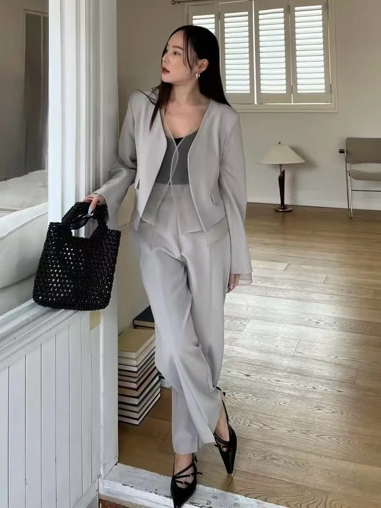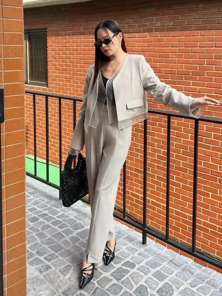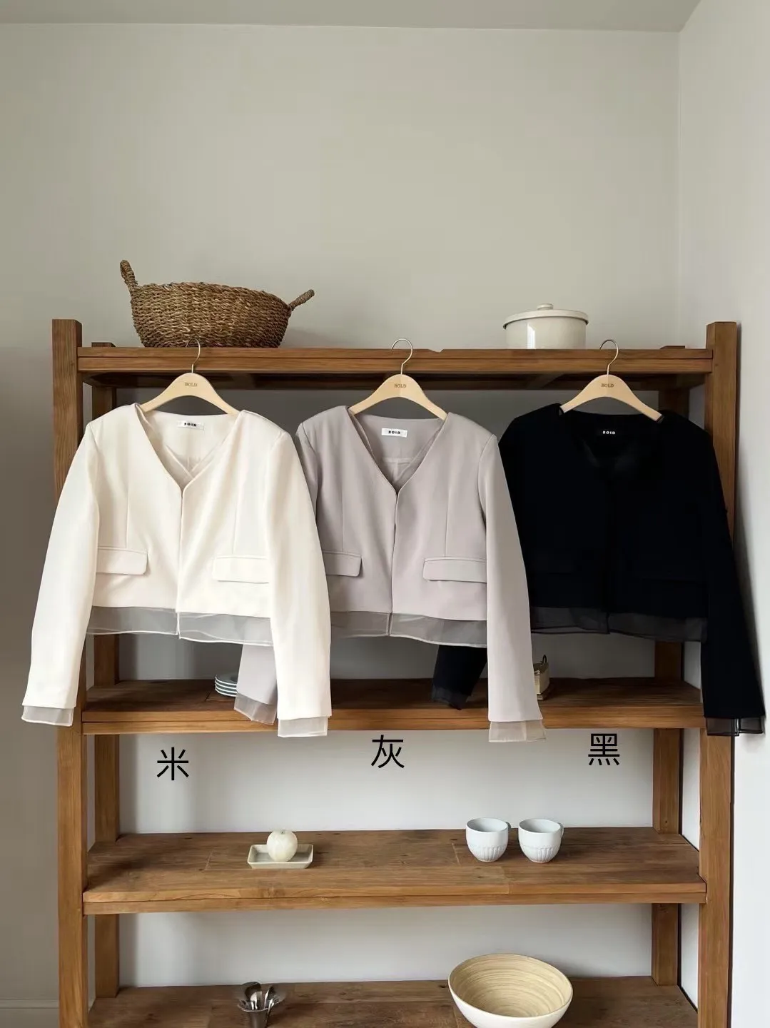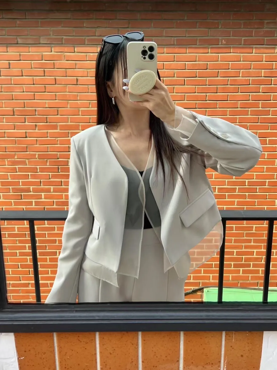 TW677套裝的高級歐根紗V領西裝外套 米 灰 黑 官網價$1850 線上價$1820
