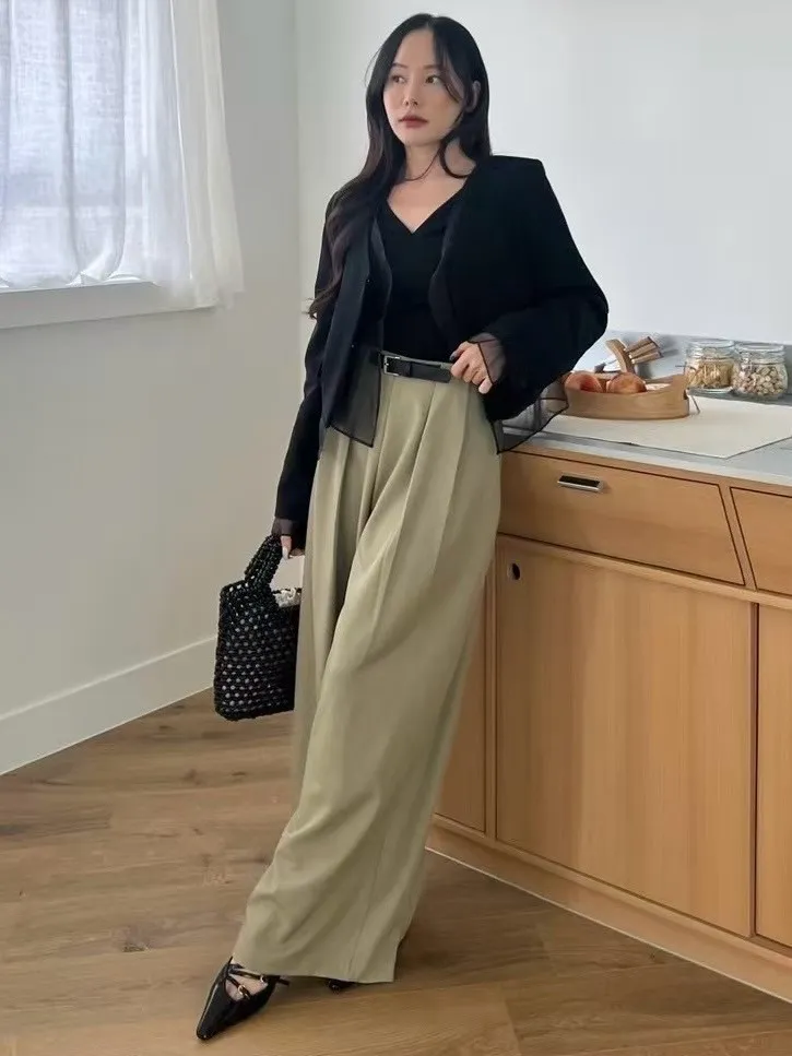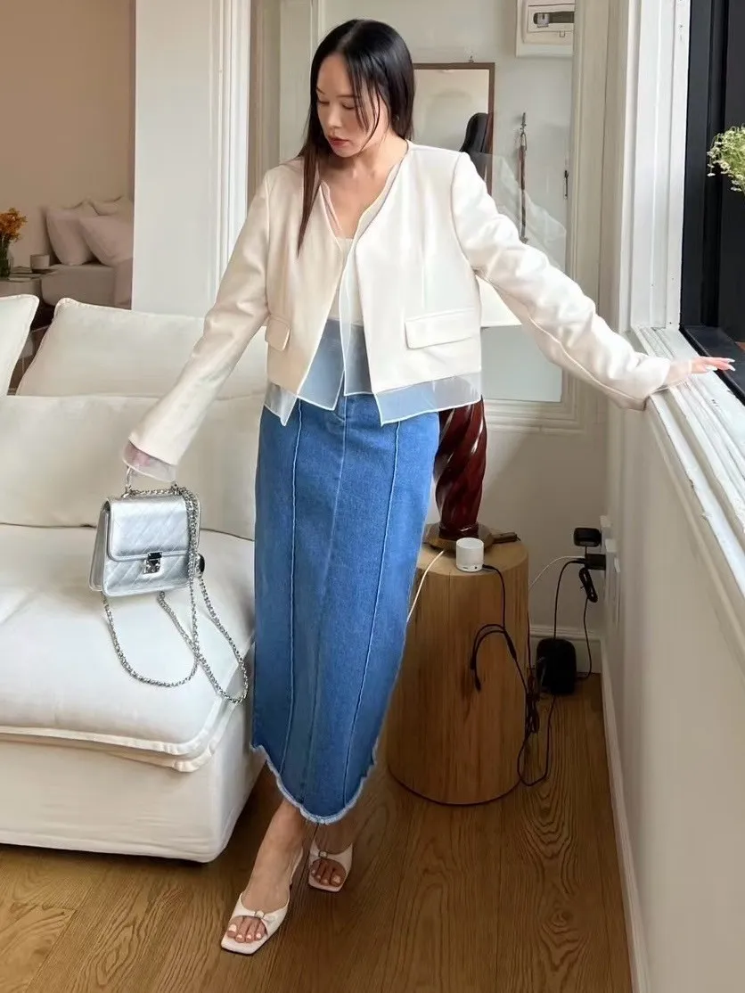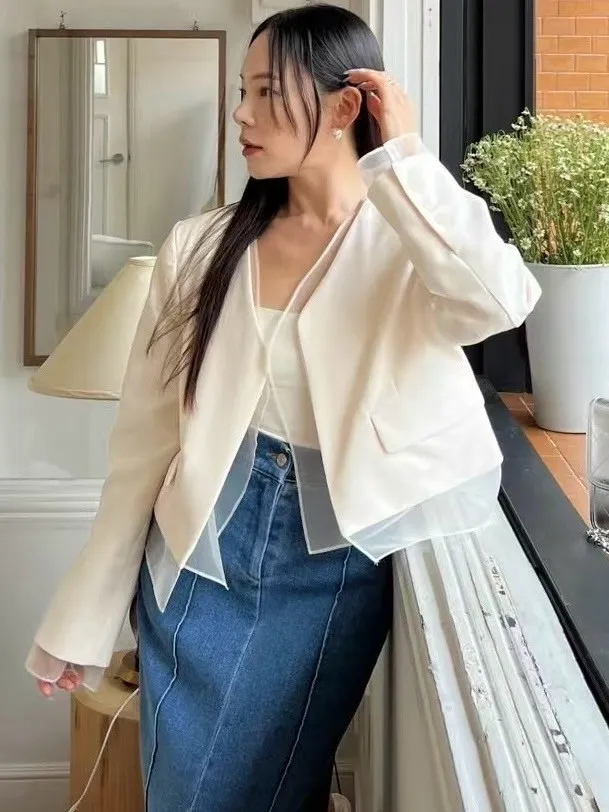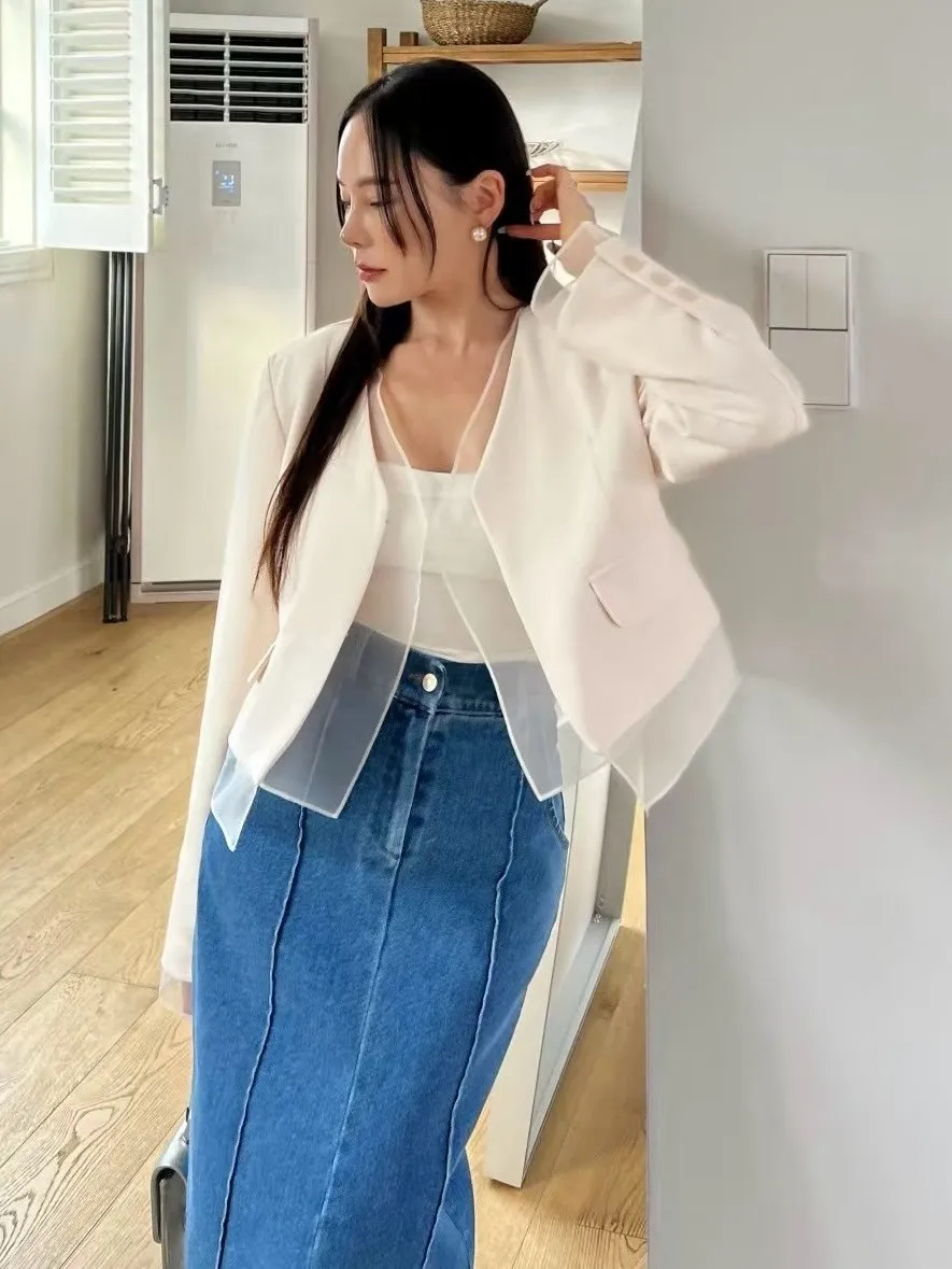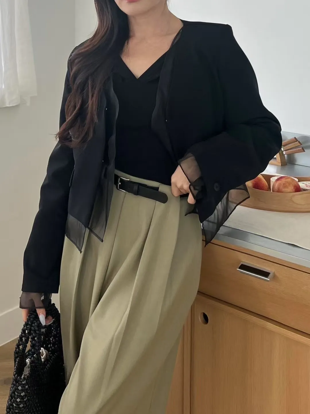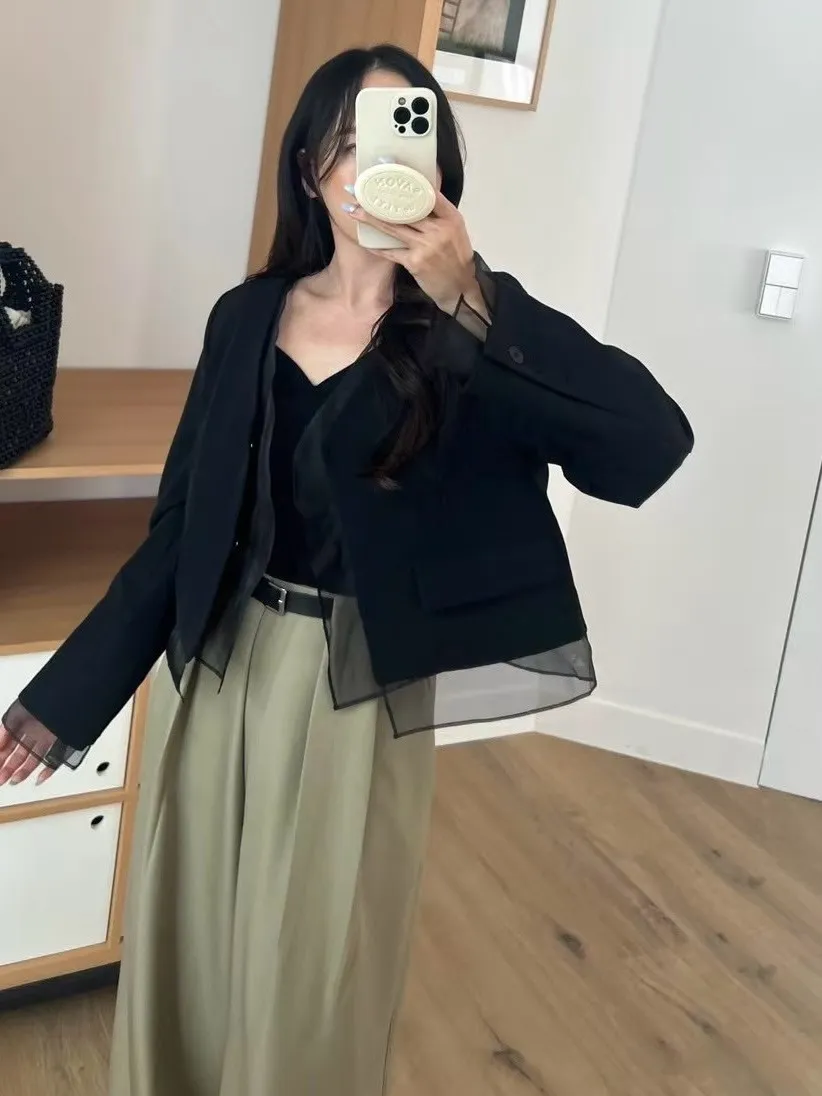 西裝面料+歐根紗 不刺癢 假兩件層次視覺 勾釦穿脫 微墊肩