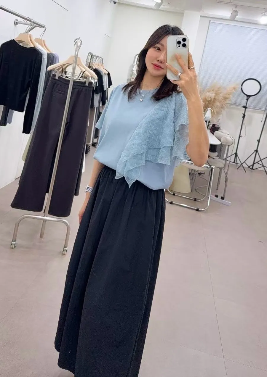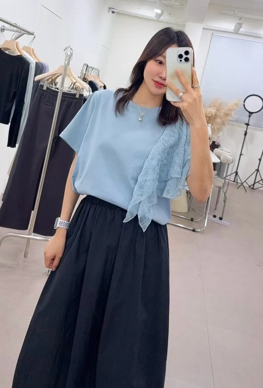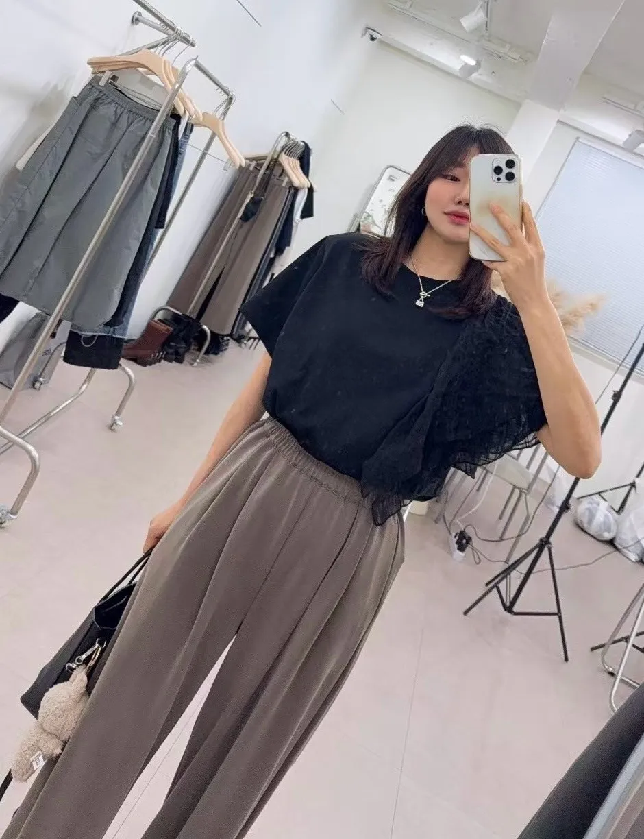 棉+亞麻5% 三種異材質拼接 特殊設計格紋美袖 不易皺