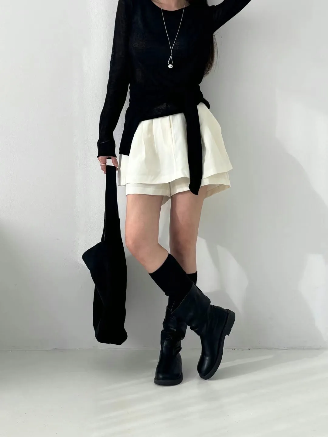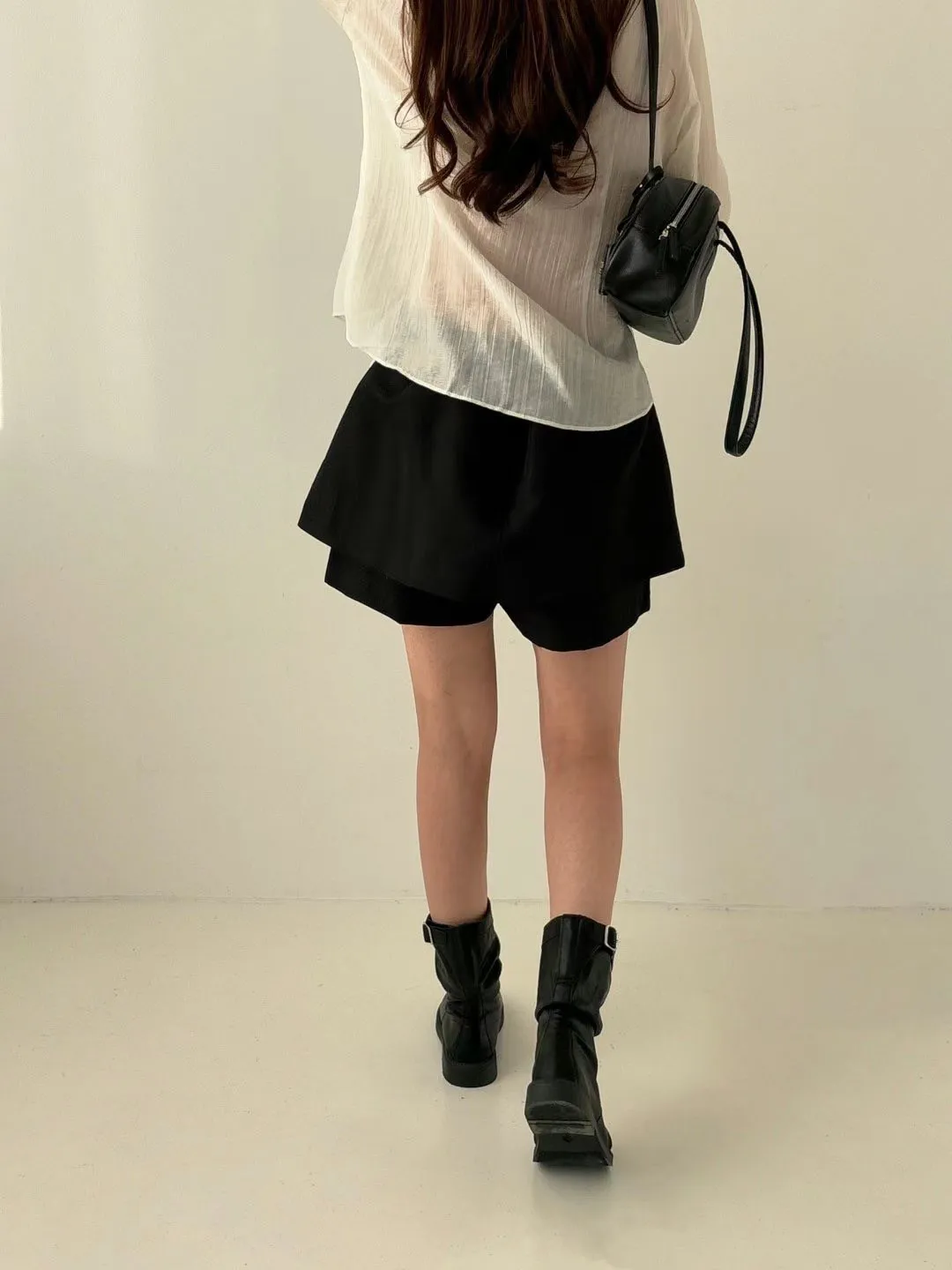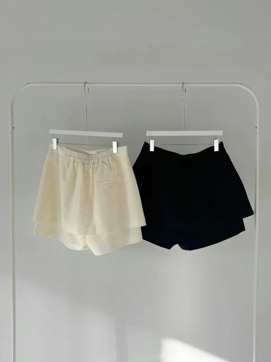 薄款 觸感滑順 釦鍊穿脫 視覺雙層次 後腰鬆緊 有口袋