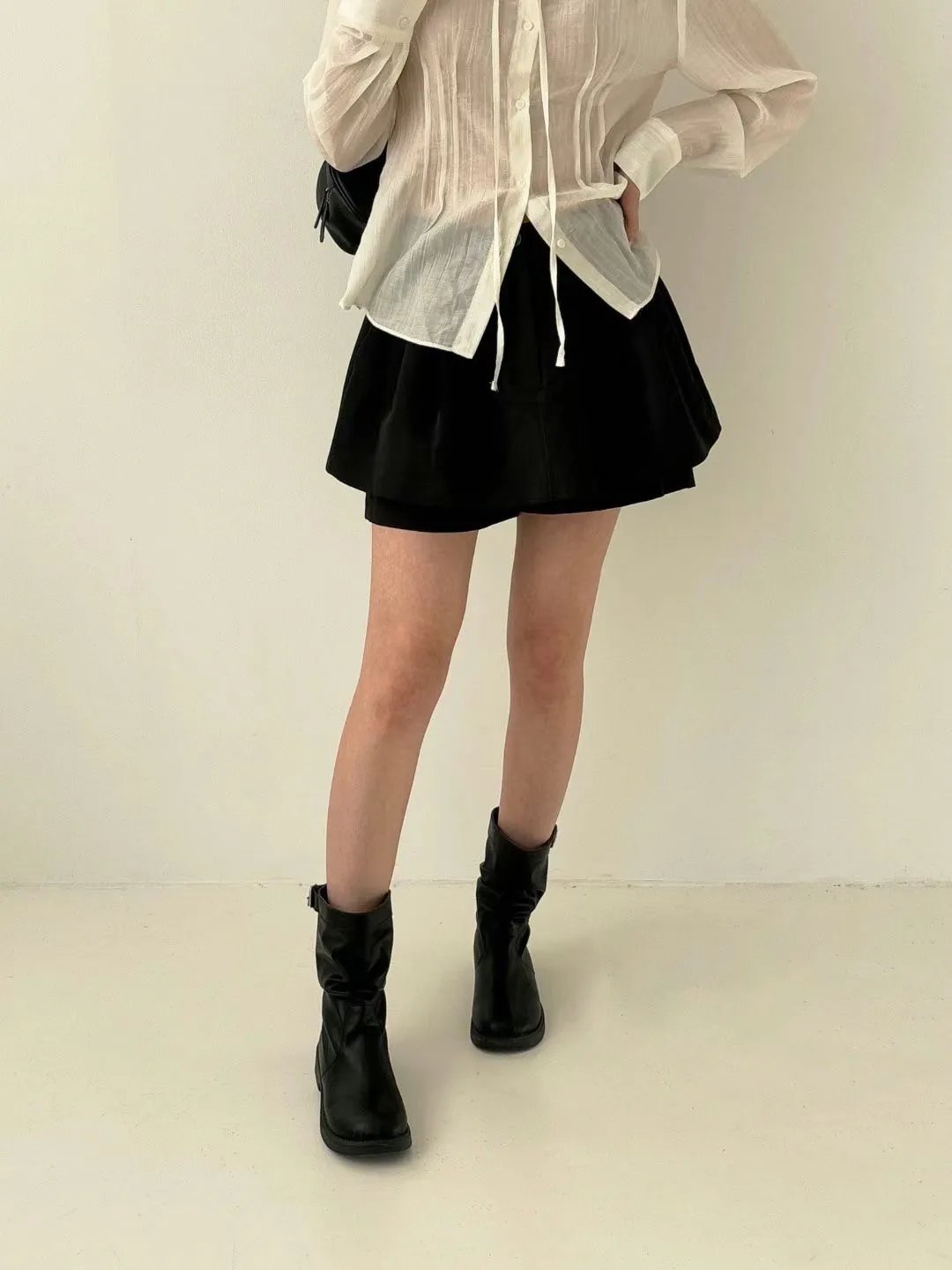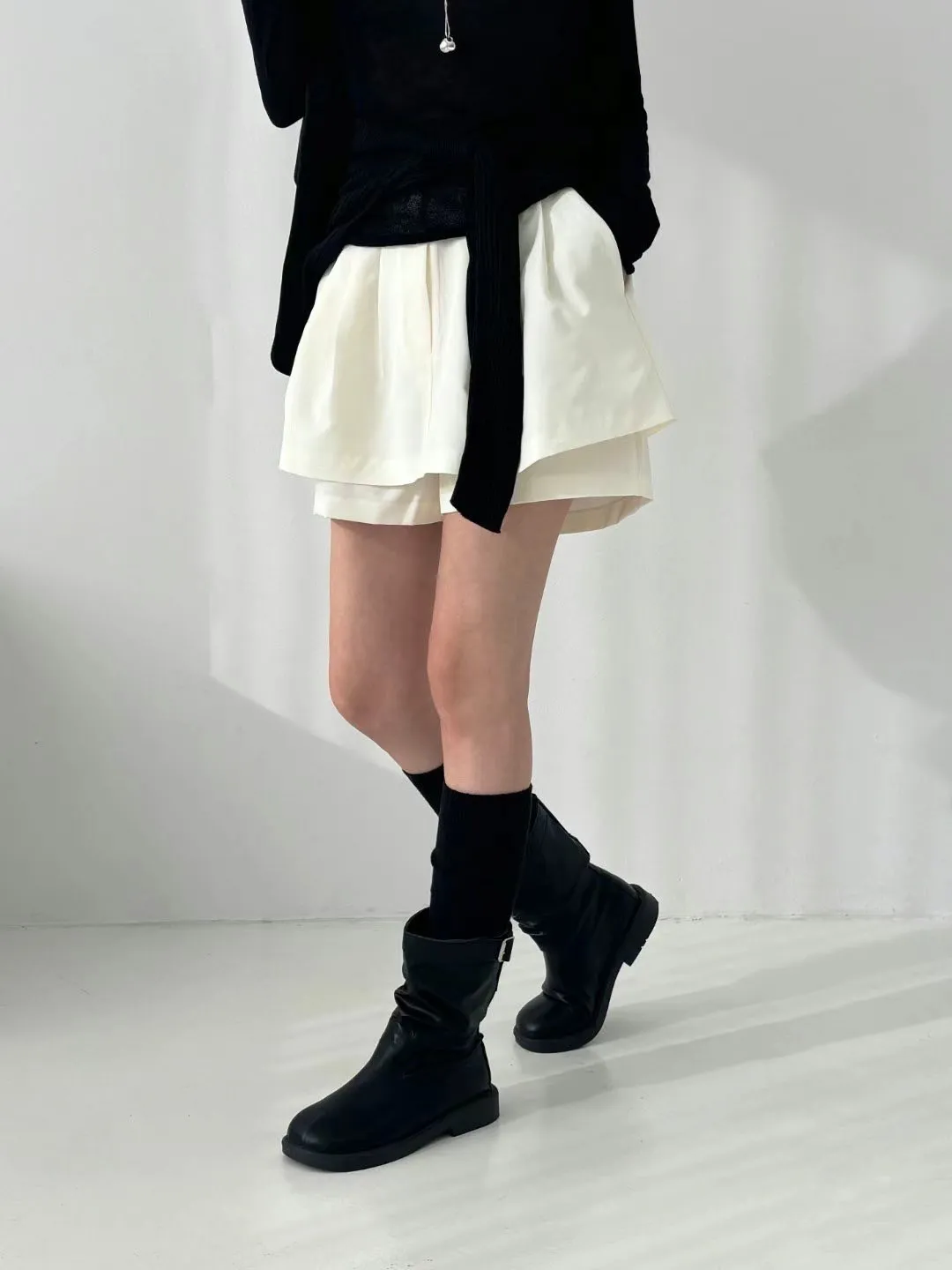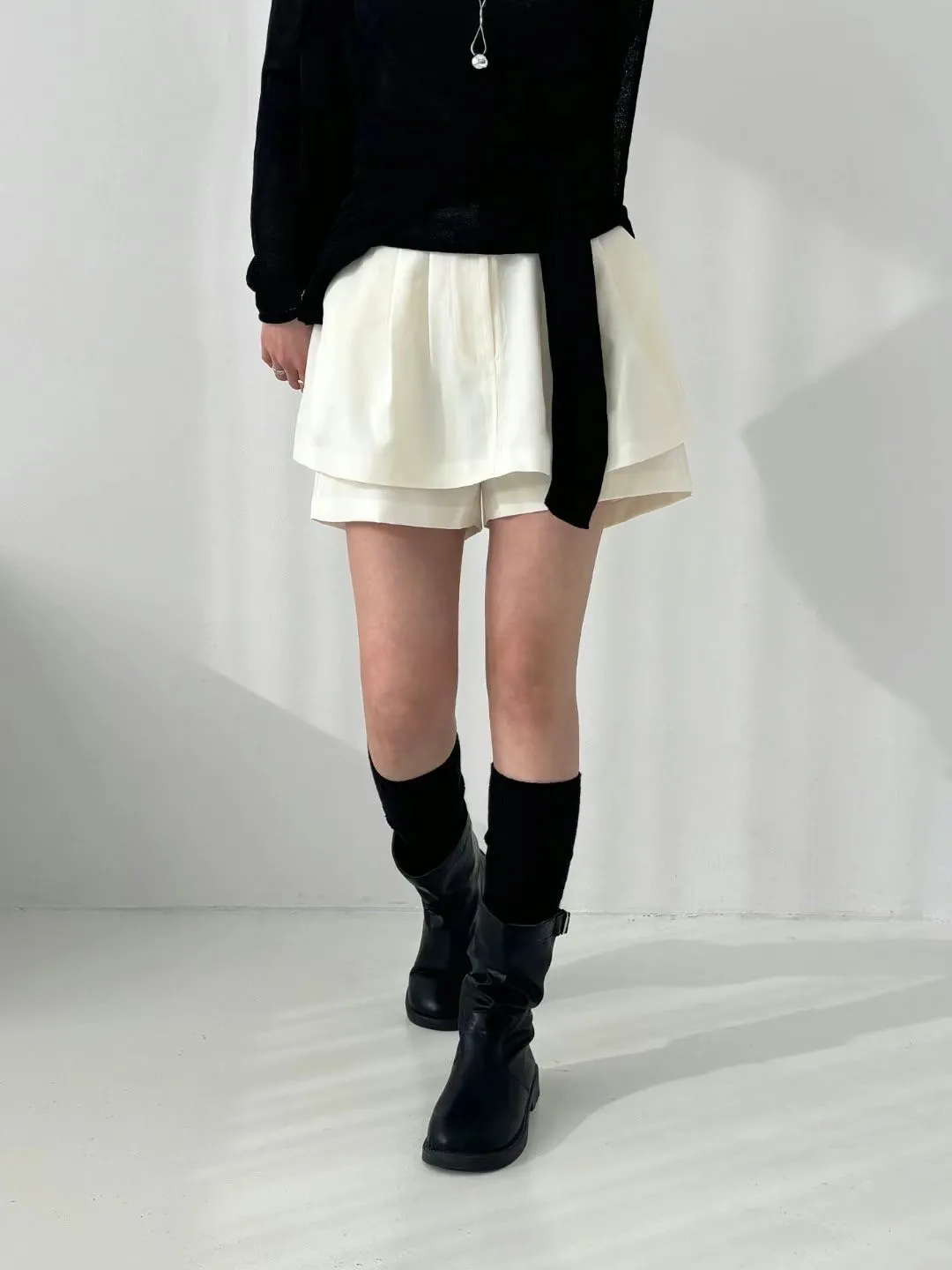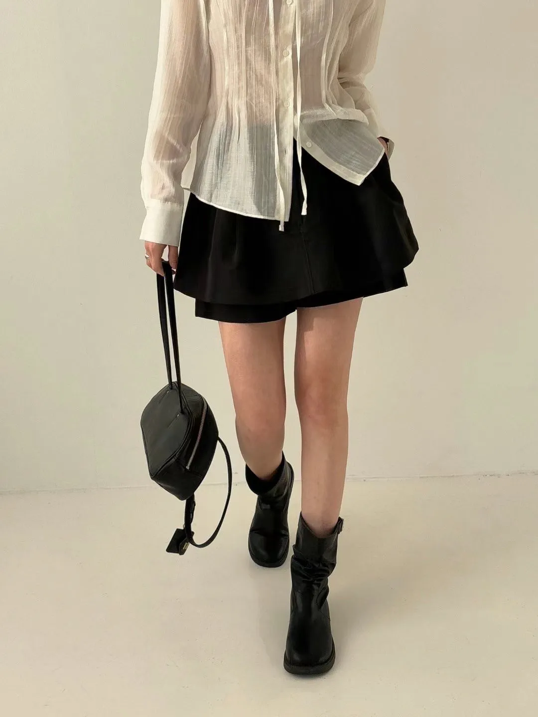 薄款 觸感滑順 釦鍊穿脫 視覺雙層次 後腰鬆緊 有口袋