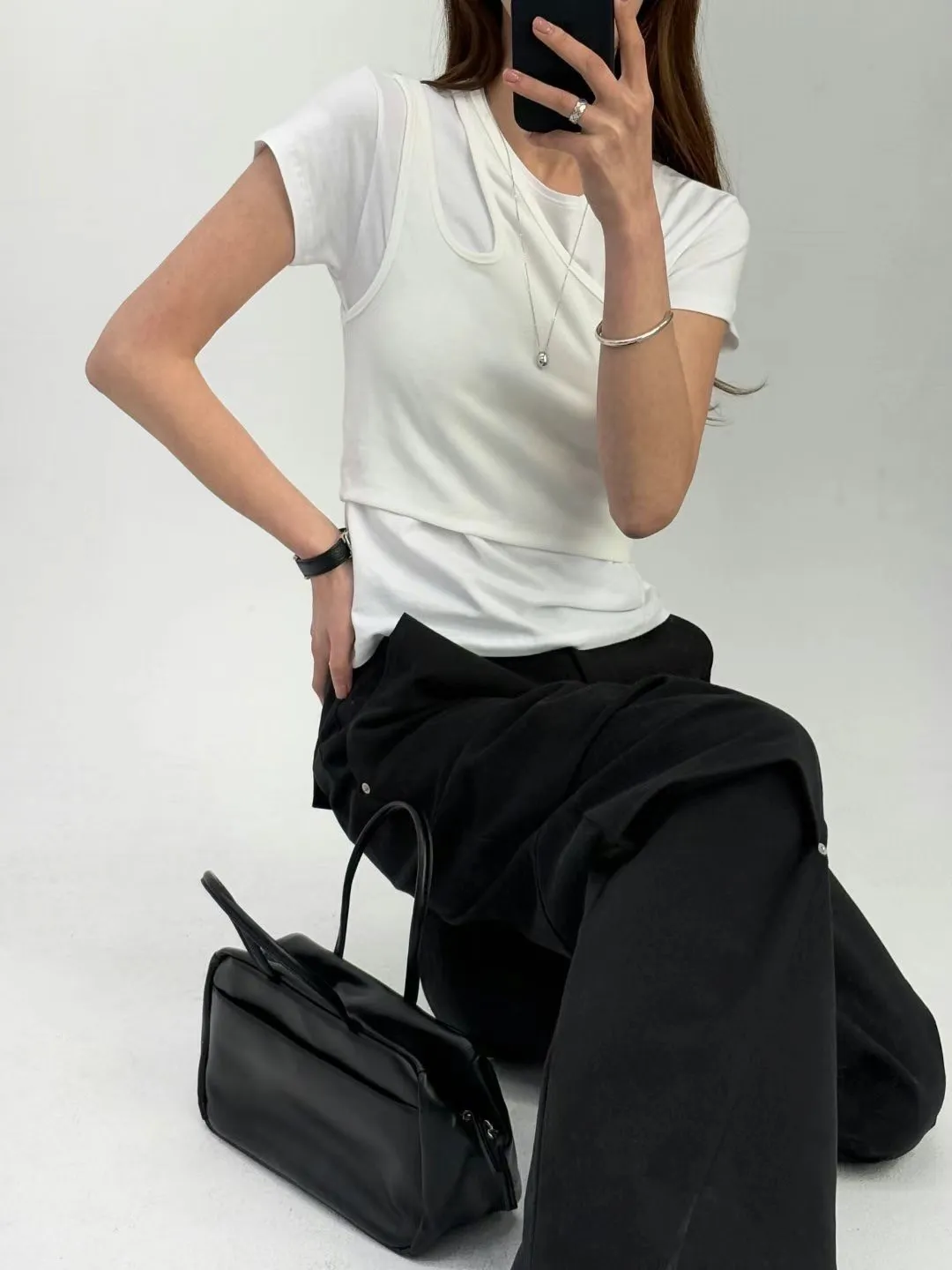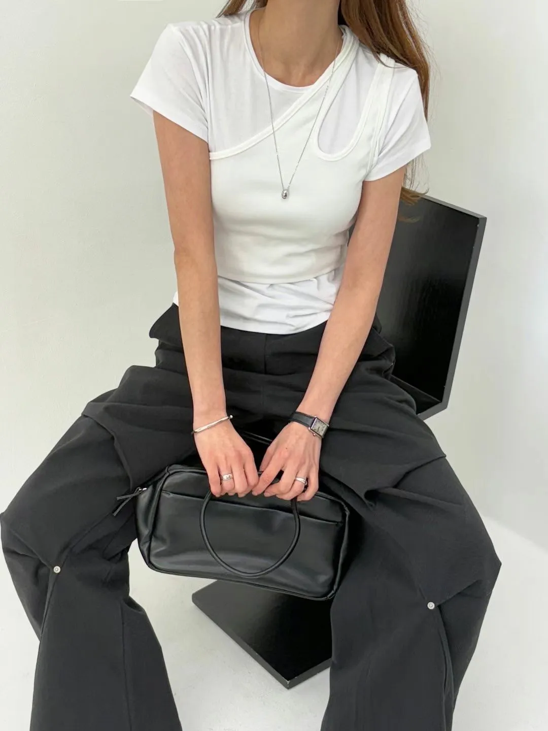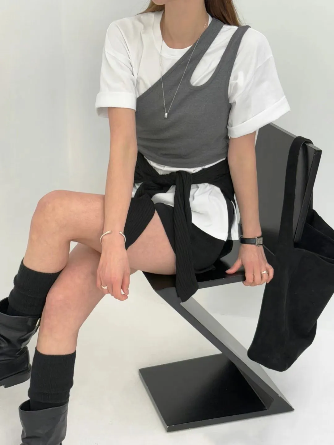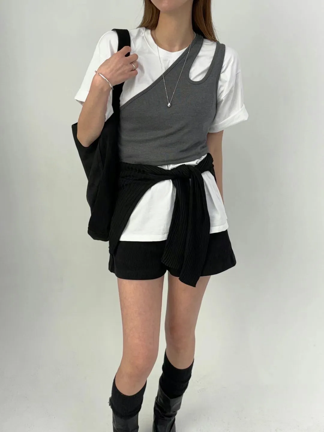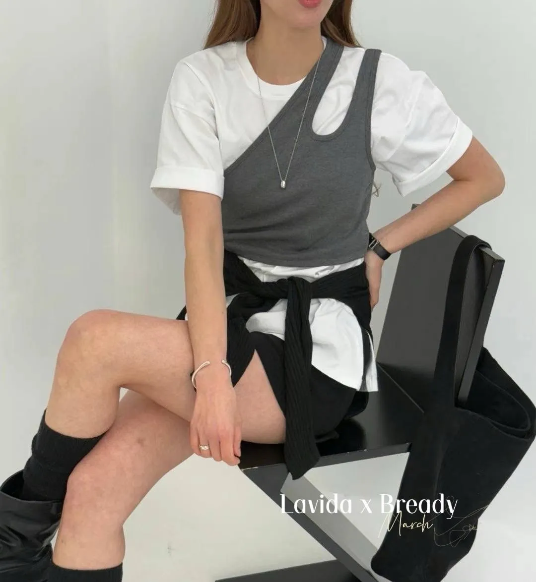 棉 搭配單品 斜肩簍空 短版層次穿搭 包邊車線