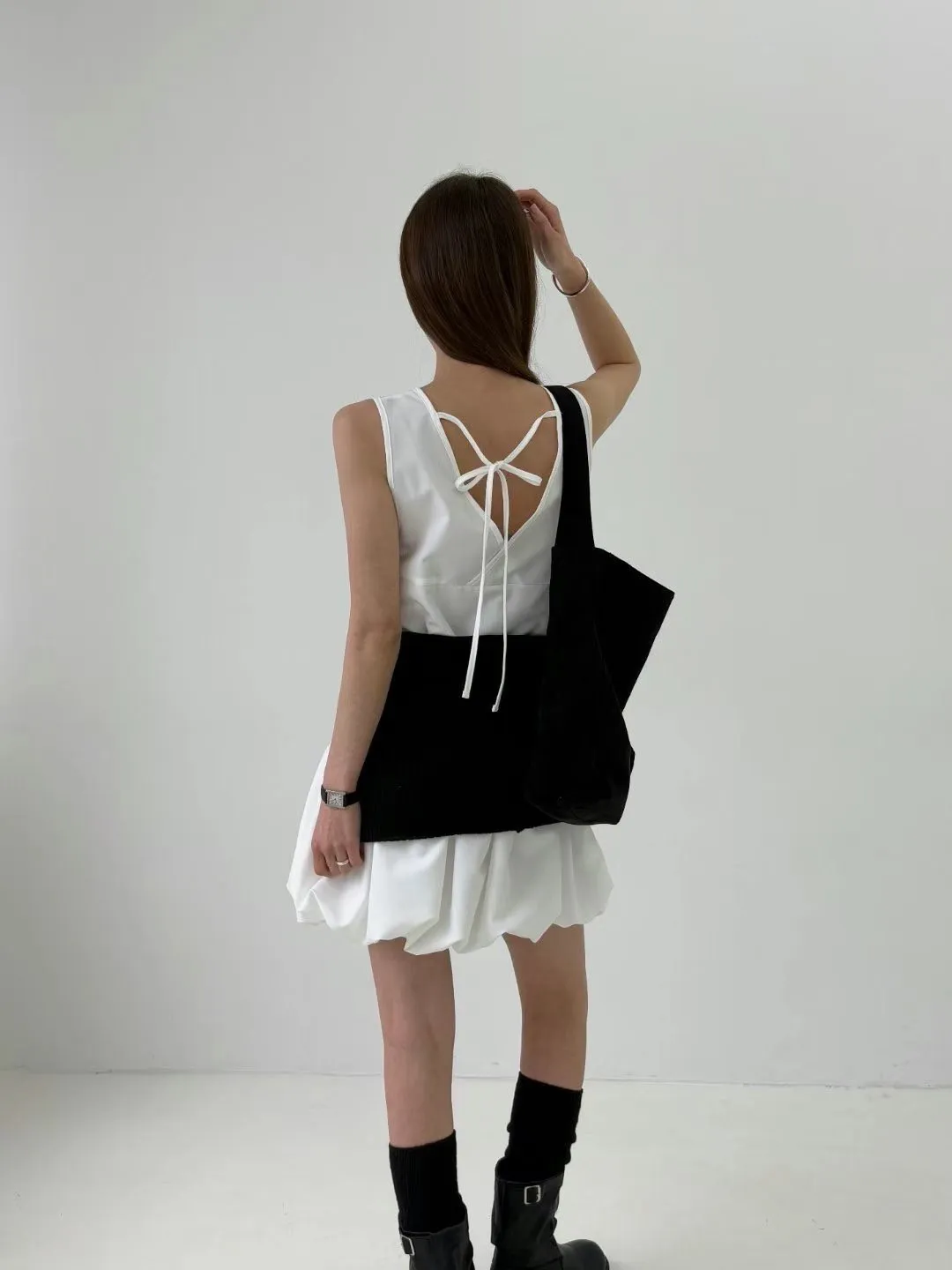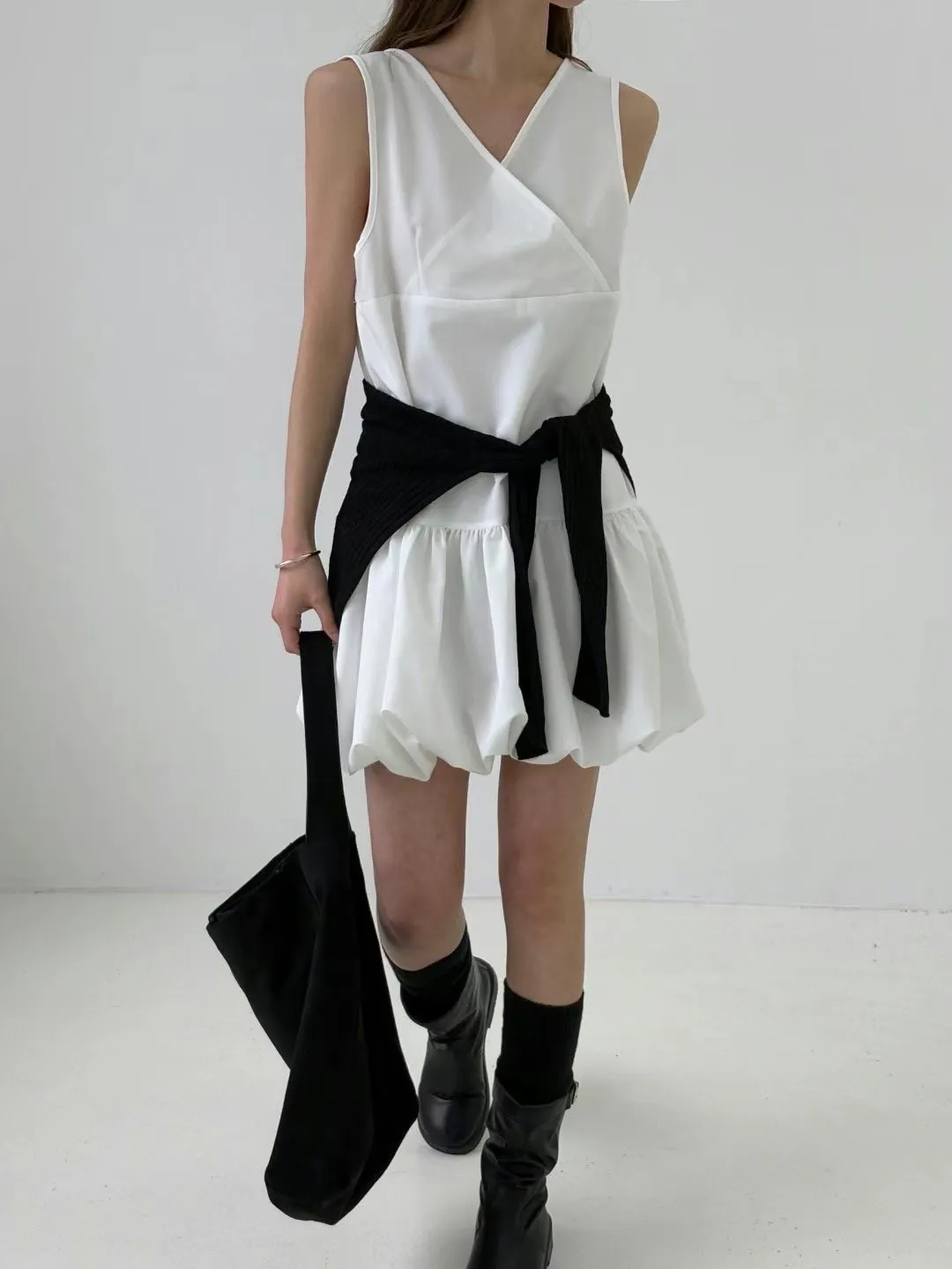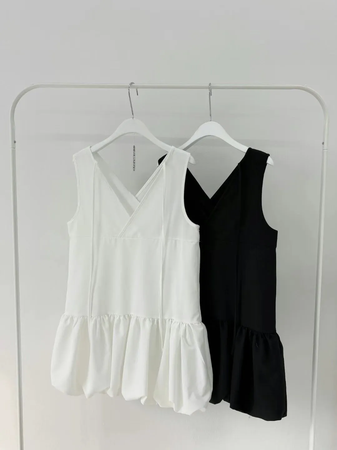 棉+聚酯 美背綁帶 南瓜裙 寬肩帶交疊V領 大胸友善