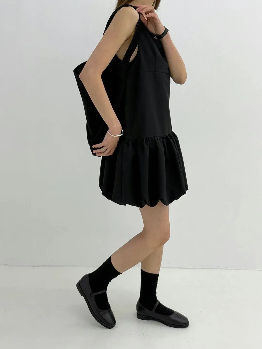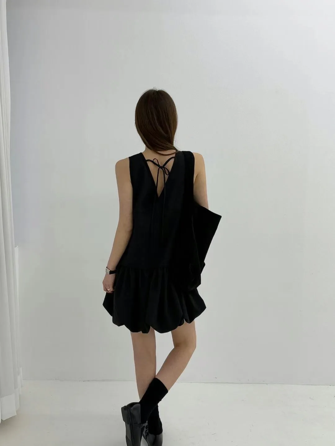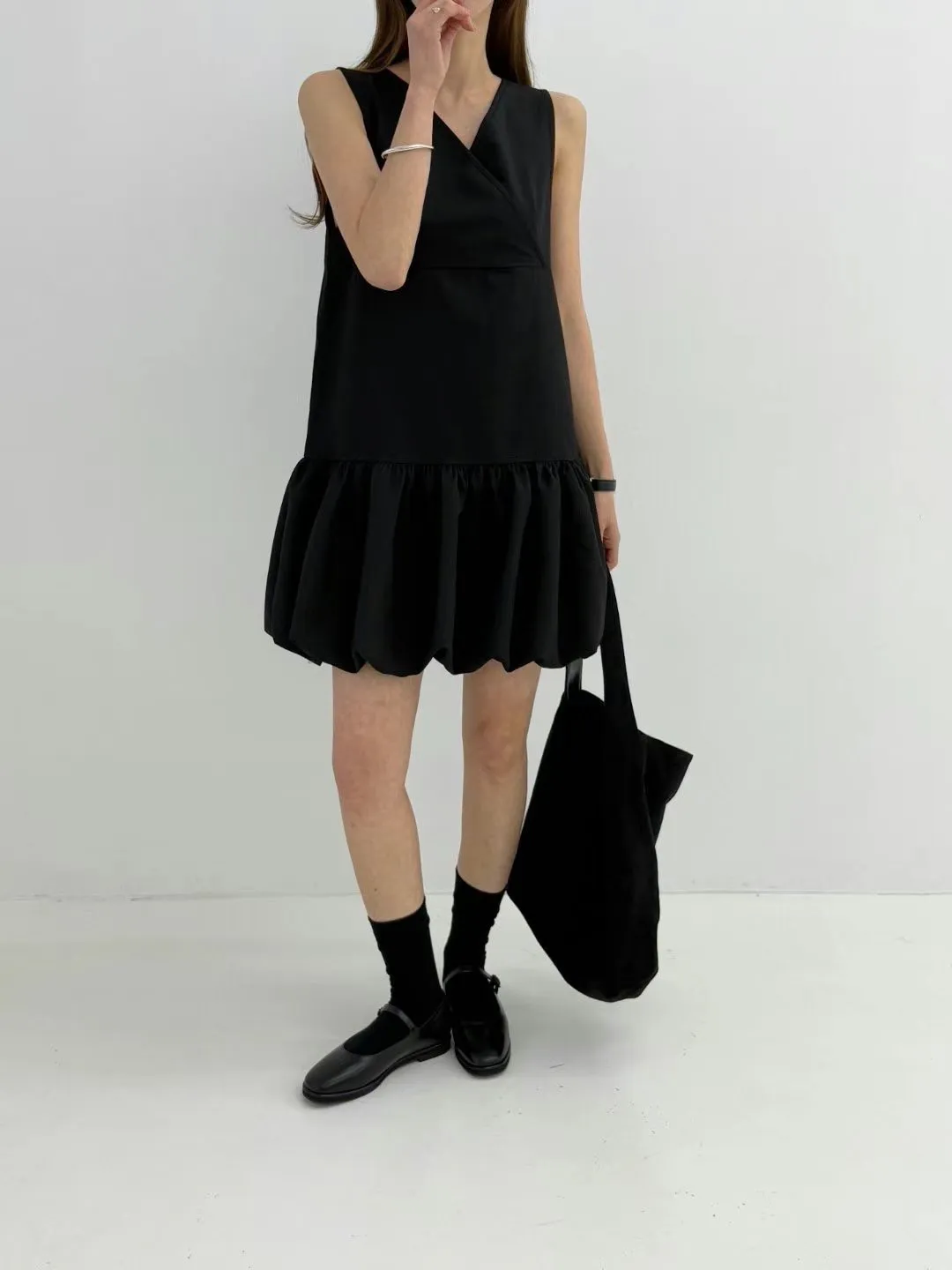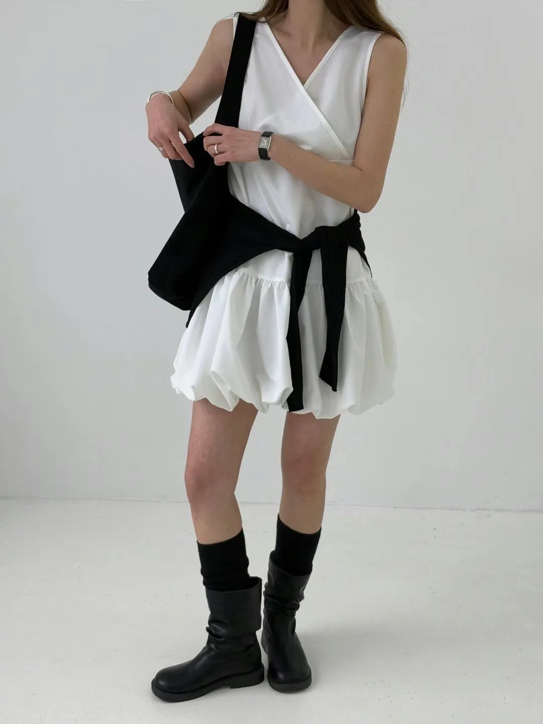 棉+聚酯 美背綁帶 南瓜裙 寬肩帶交疊V領 大胸友善