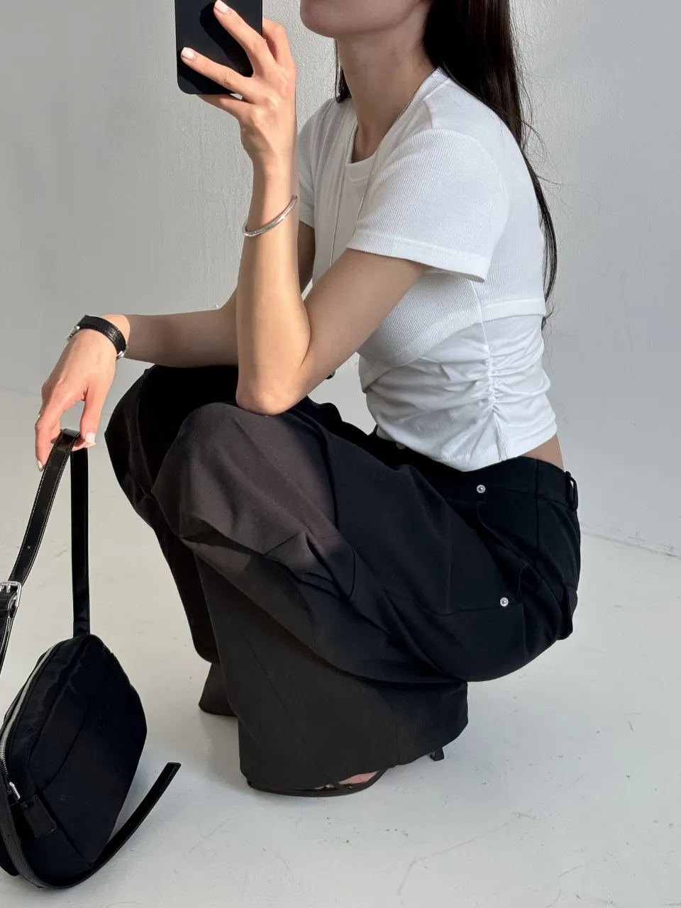 棉 小露腰微短版 側縮腰層次 穿到M號