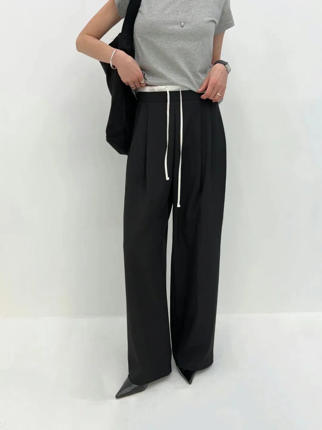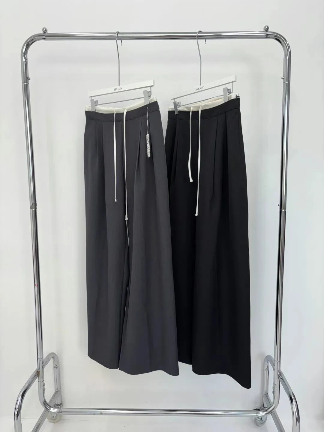 縲縈+聚酯 薄款 腰有抽繩 高腰設計 無口袋 垂墜長腿視覺