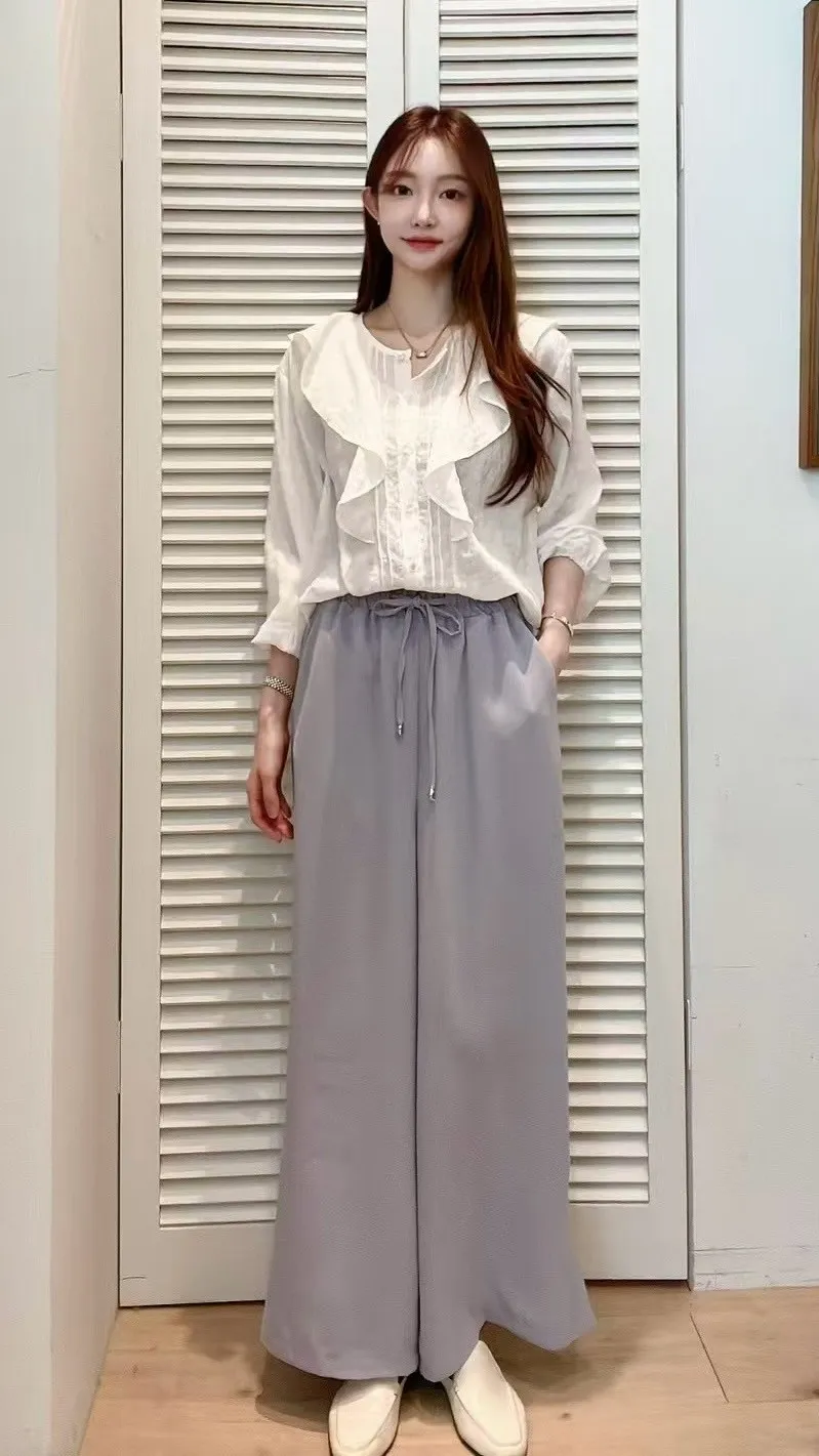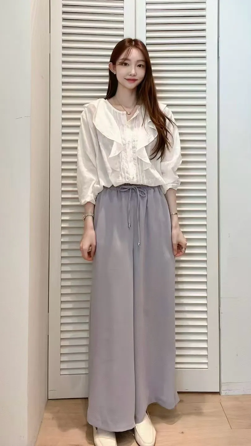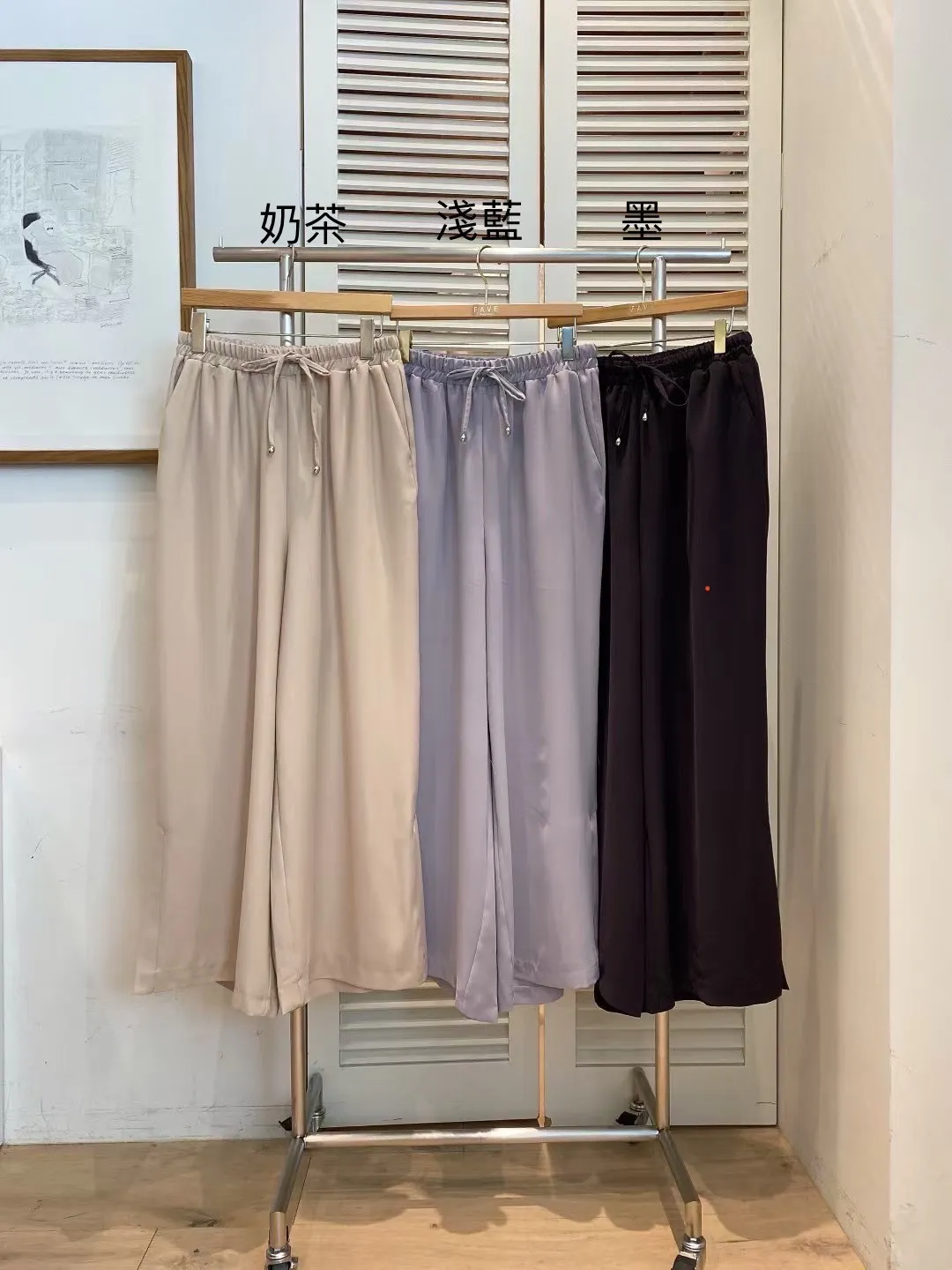 雪紡 材質冰涼感 腰全鬆緊 有口袋 不易皺 XL友善 褲管開叉