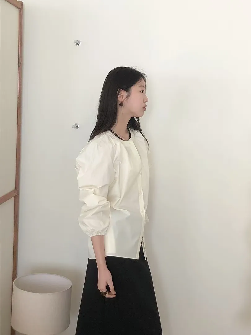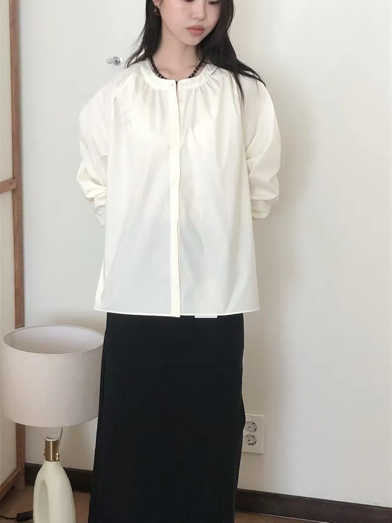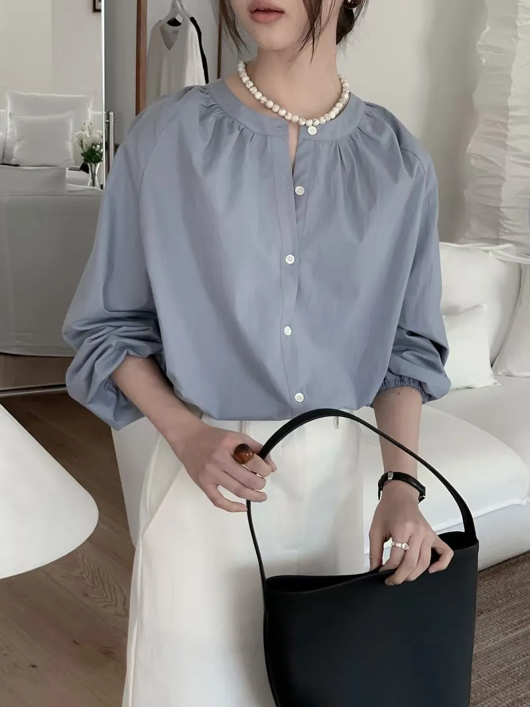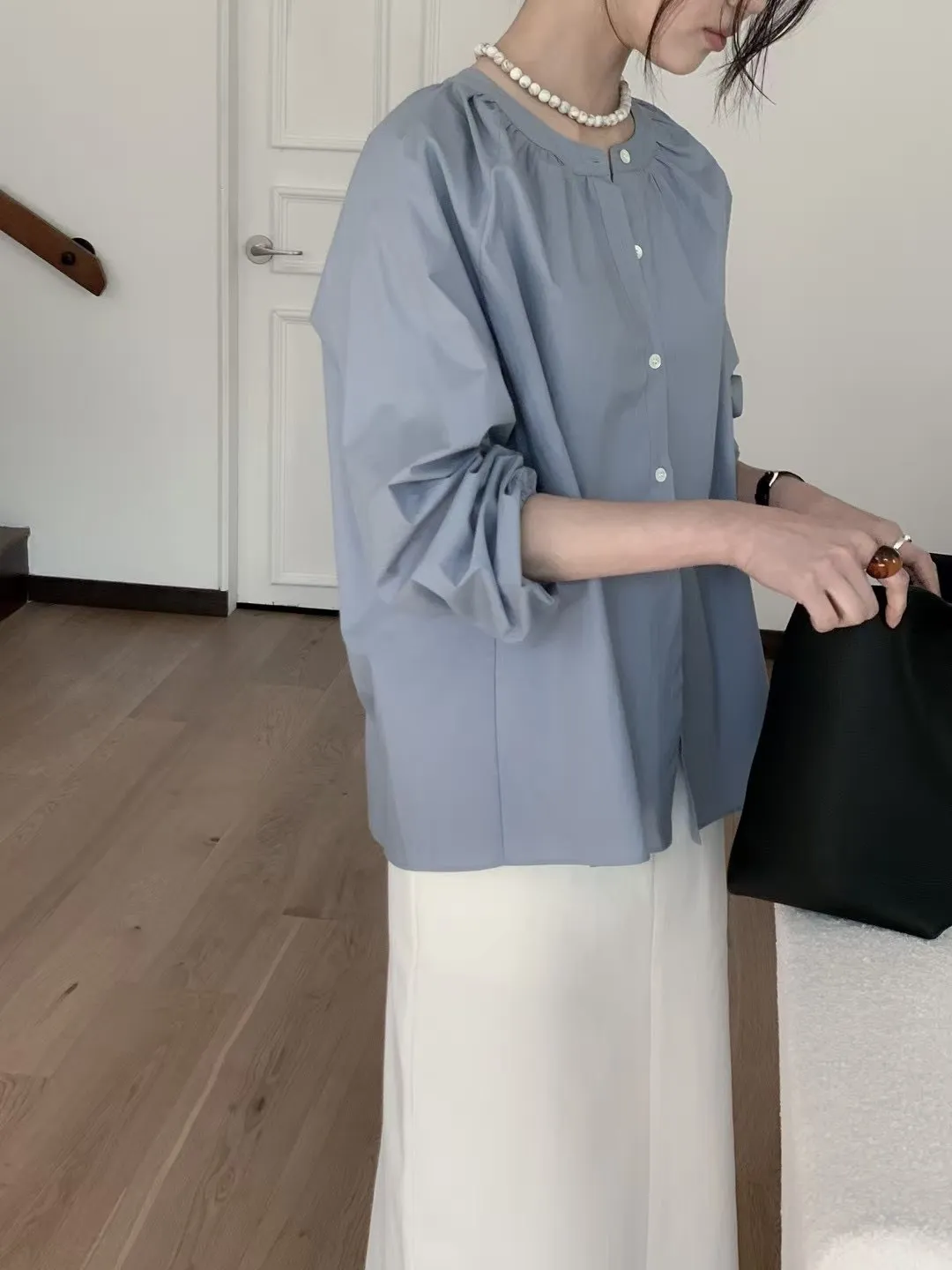 棉,女人味微皺圓領 排釦穿脫 空間寬鬆