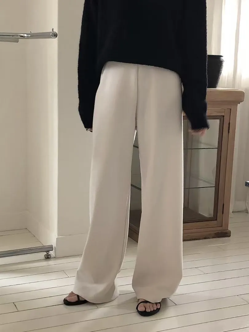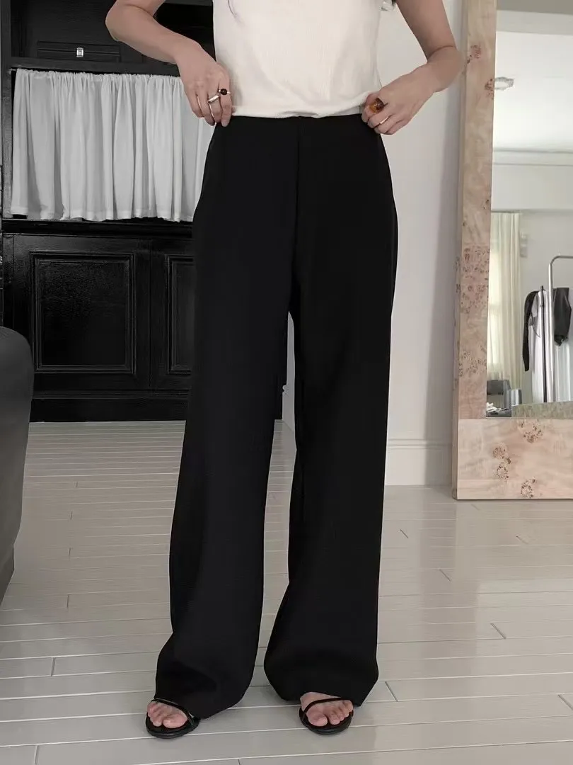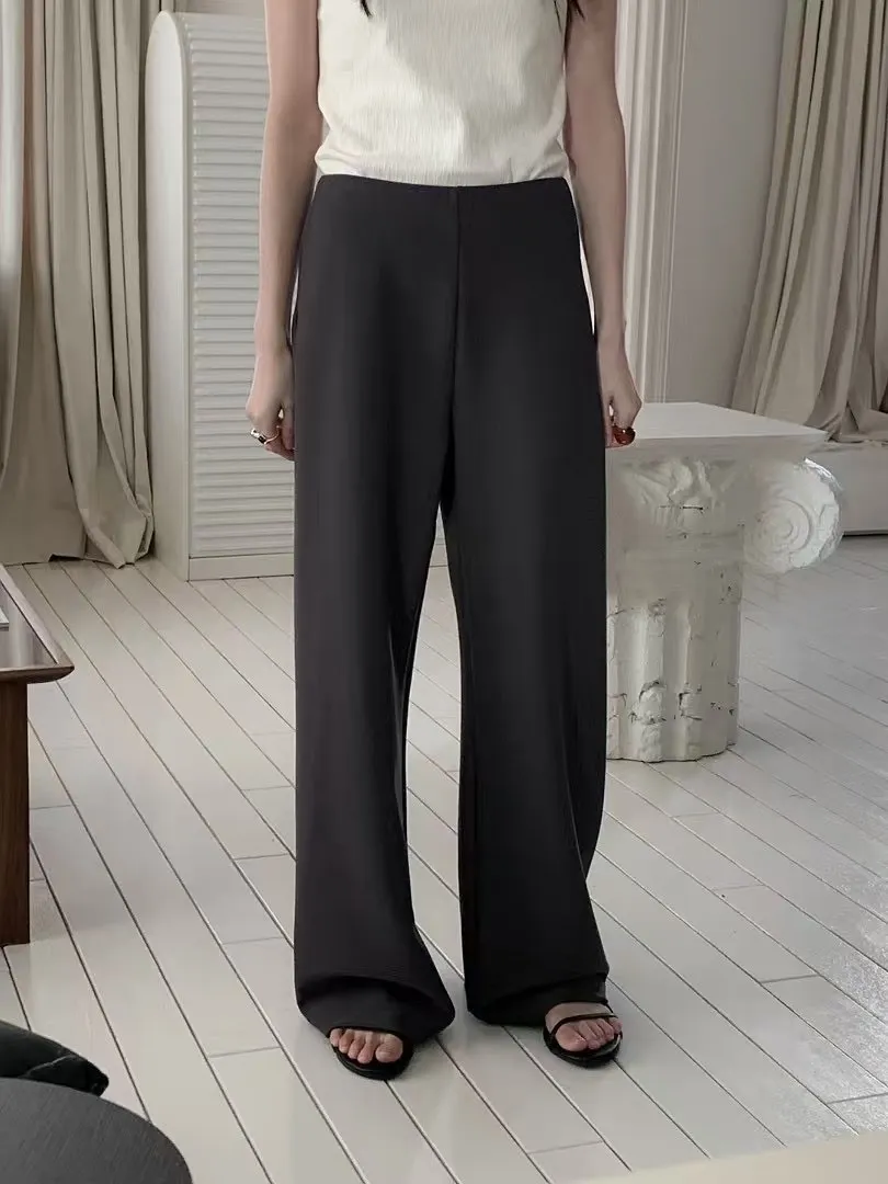 西裝面料,腰有鬆緊 垂墜細直腿 無口袋 彈性佳