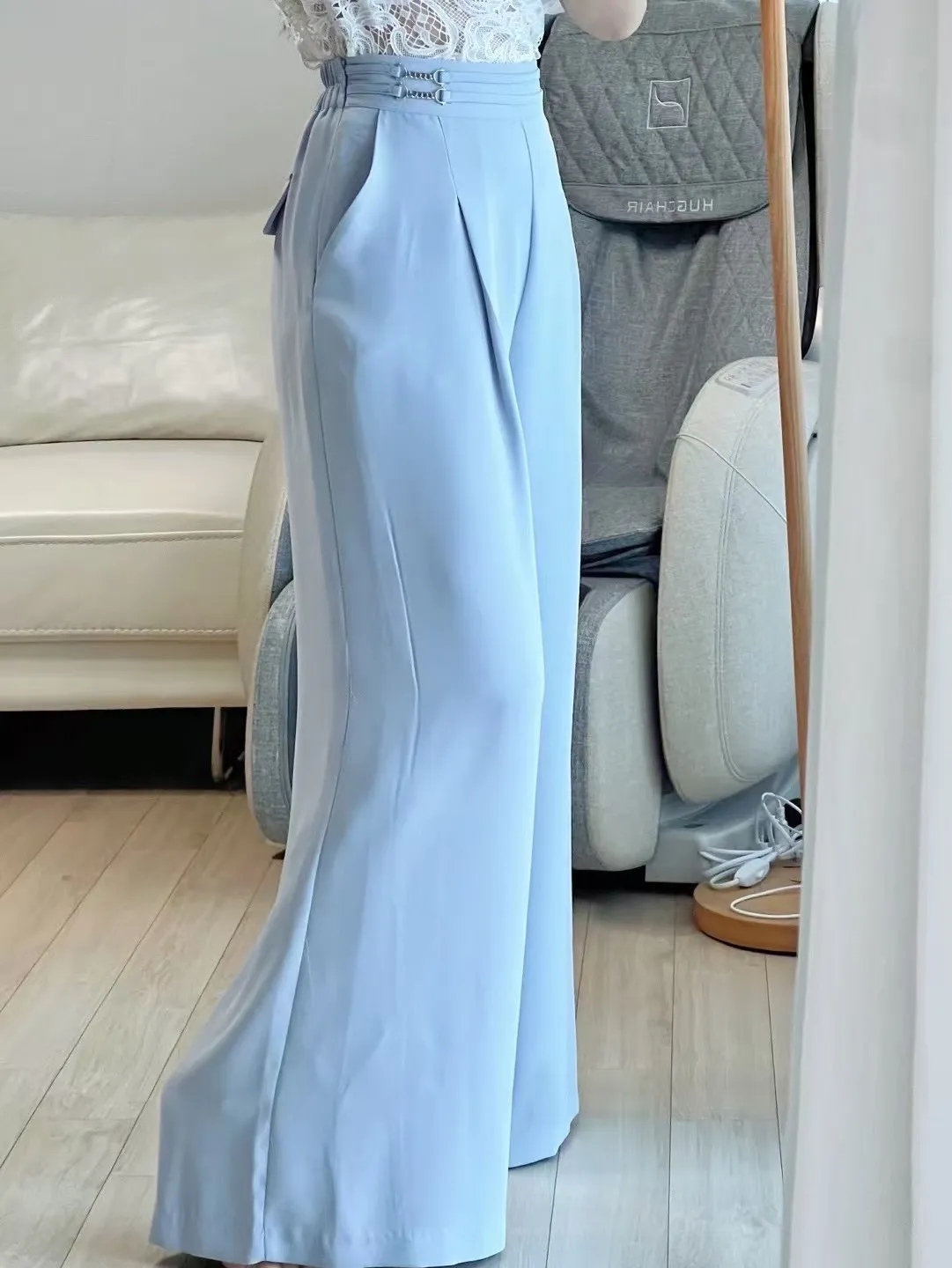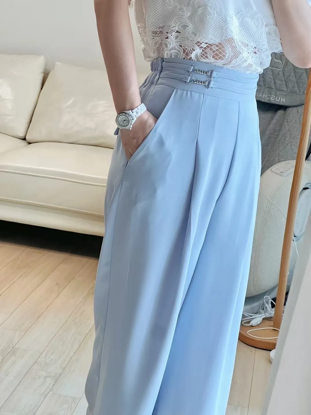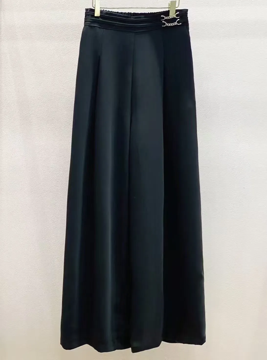 TW829慵懶金屬側腰雪紡長褲 藍 黑 官網價$1220 線上價$1190雪紡 側拉鍊 有口袋 垂墜感佳 高腰後鬆緊 夏季合適 小L友善腰寬32-43臀寬53褲檔39大腿36全長100以下藍色穿搭👇🏻 以下顏色,黑 以下顏色,黑>藍