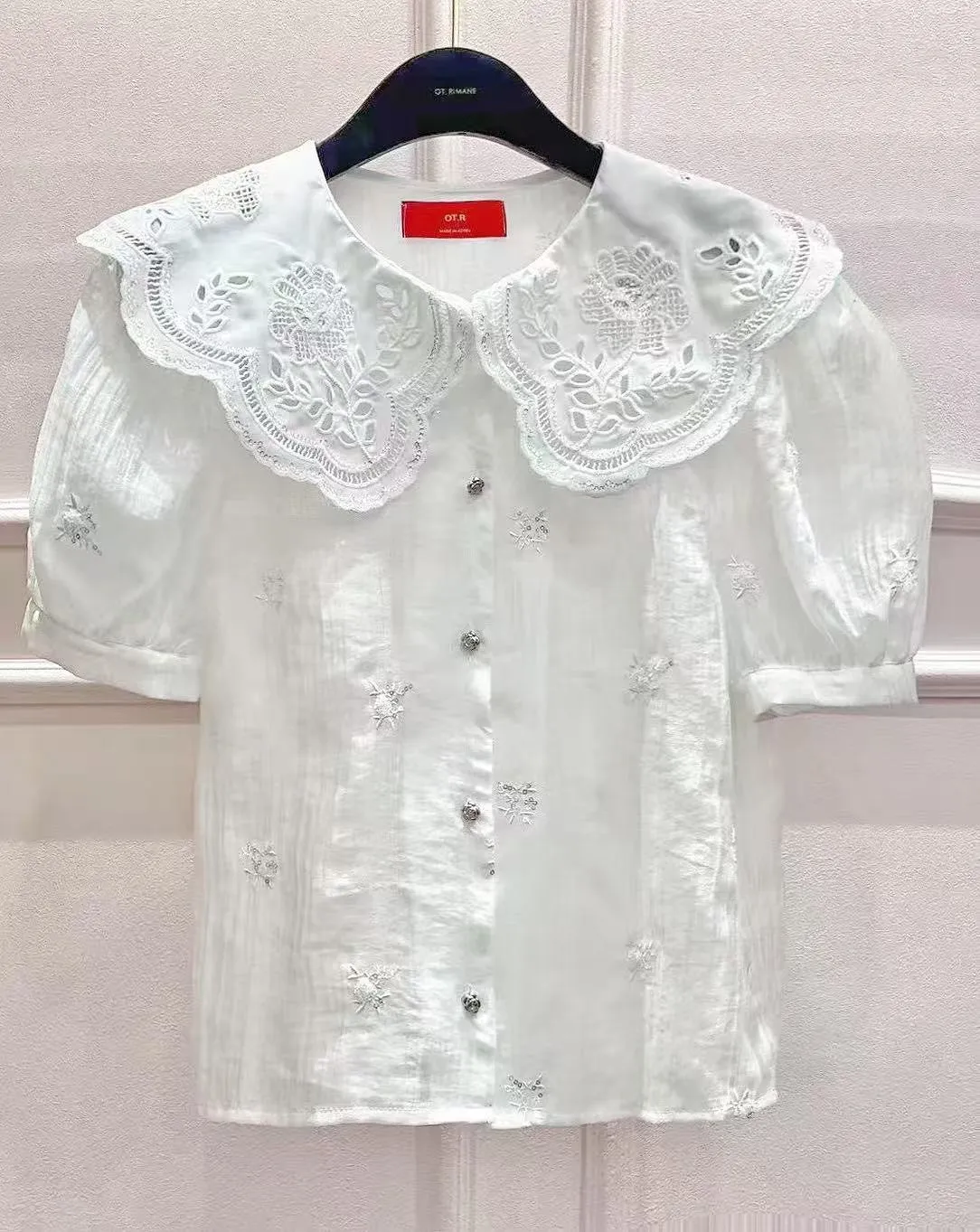 棉+聚酯 美麗程度五顆星 銀釦亮片 白色刺繡小花