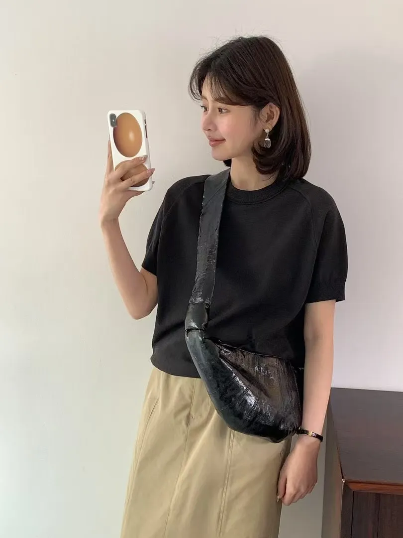 有機棉 觸感細針織 手袖下擺鬆緊 灰是很深的灰