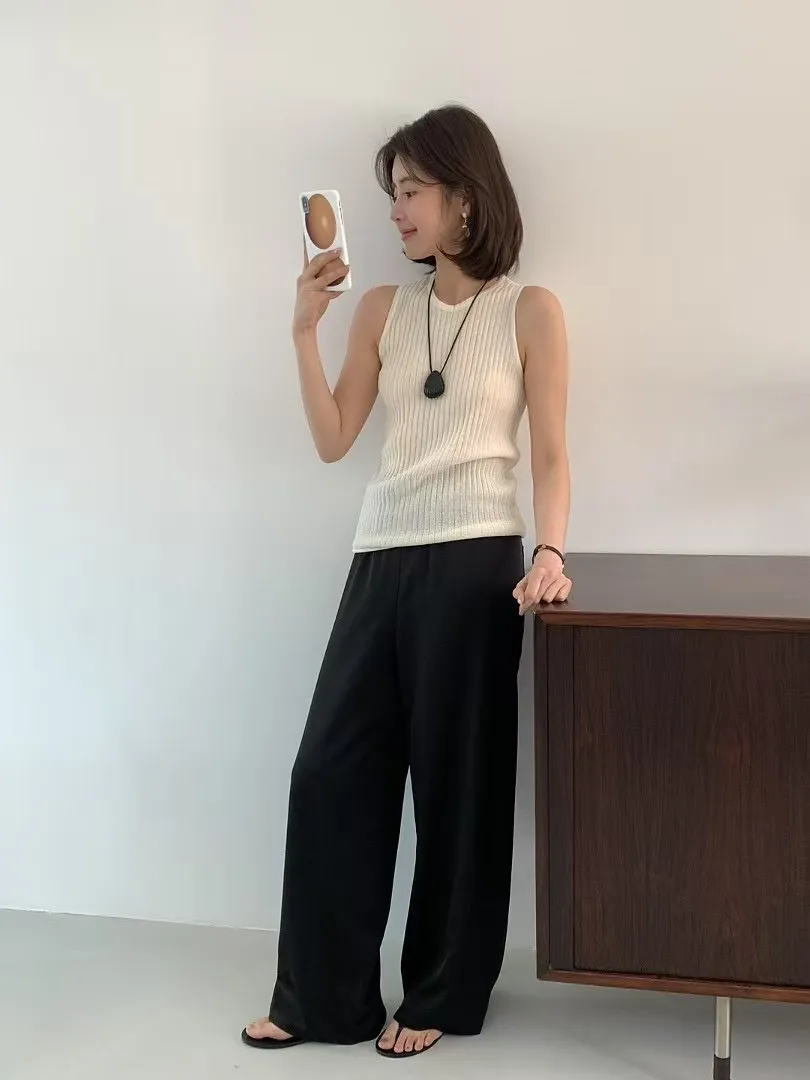TW929柔光飄逸縲縈長褲 米 黑 官網價$1660 線上價$1630