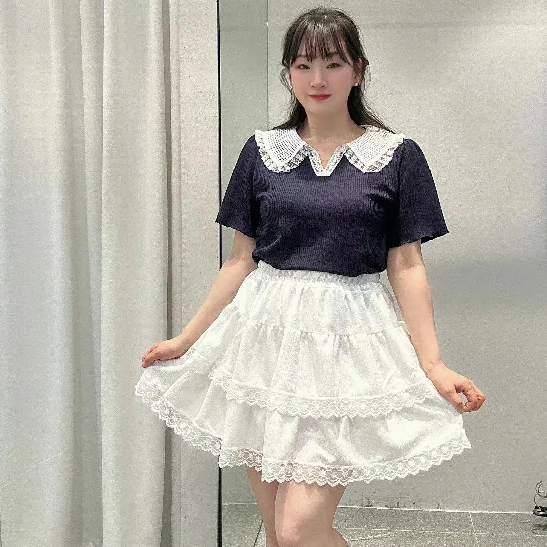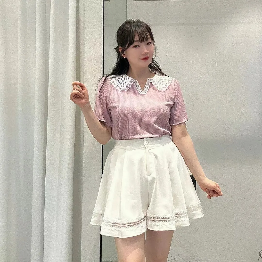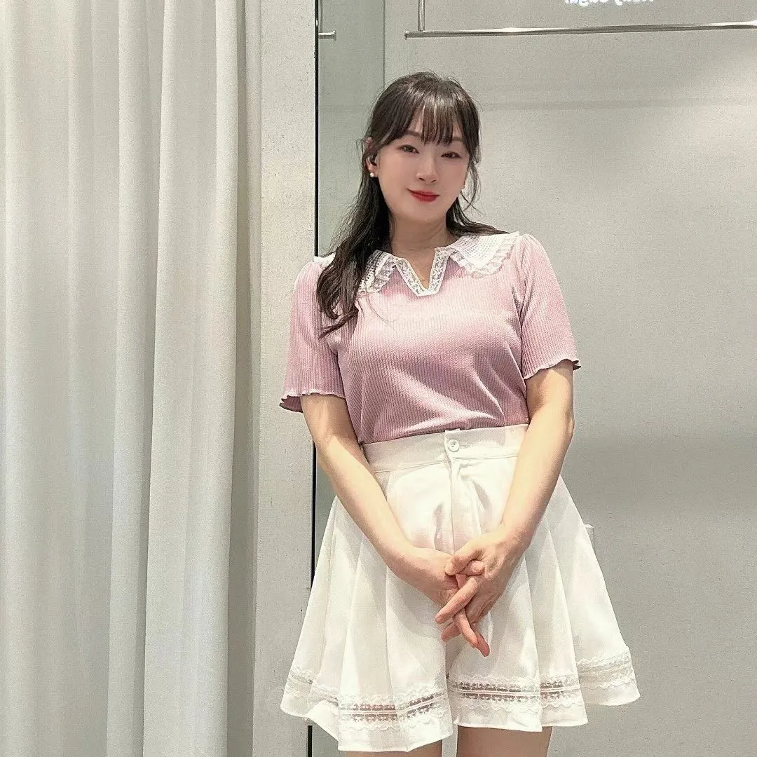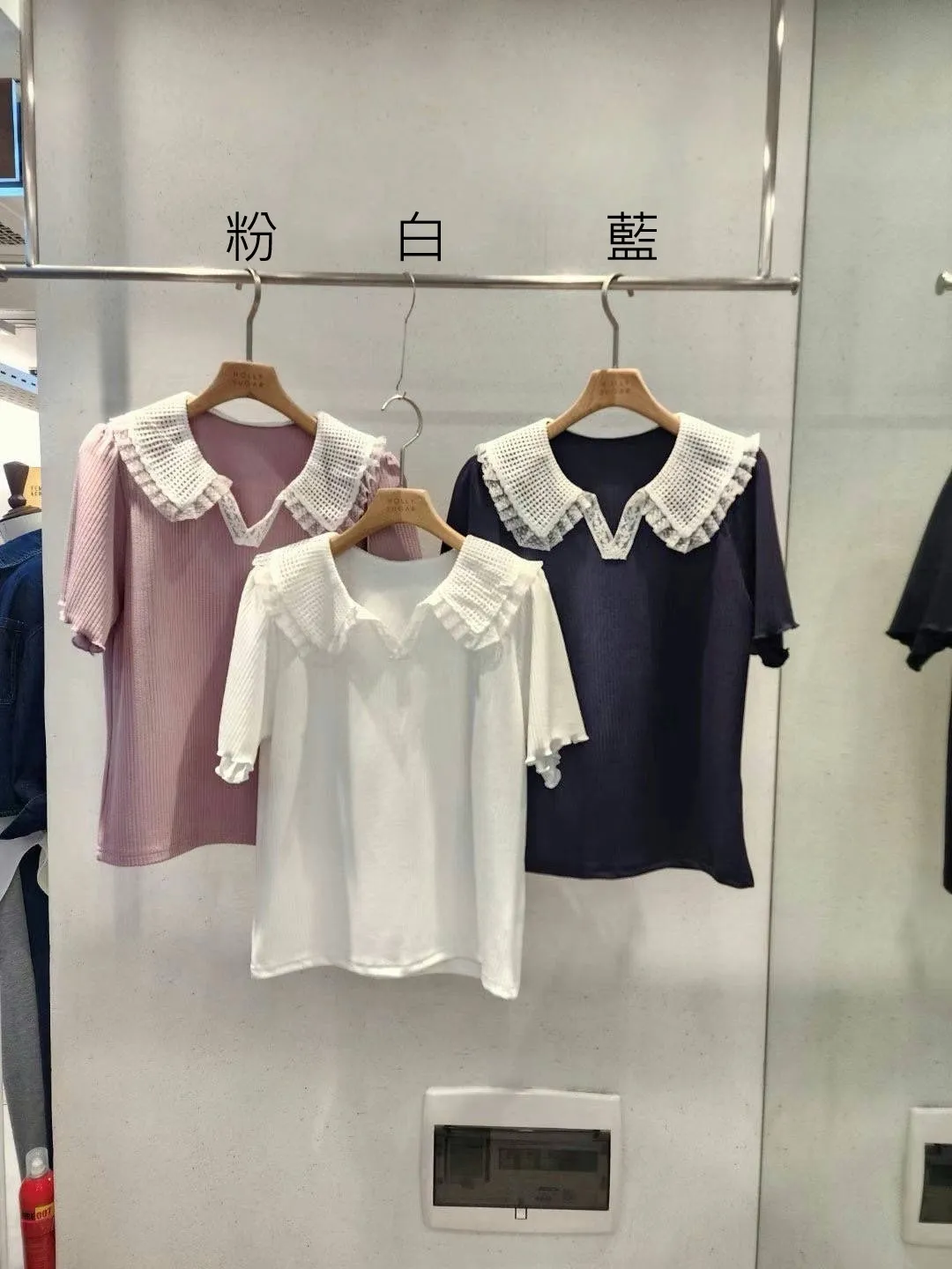 棉+聚酯 精緻細格蕾絲領 QQ麻糬感 寬鬆有彈力 不易皺