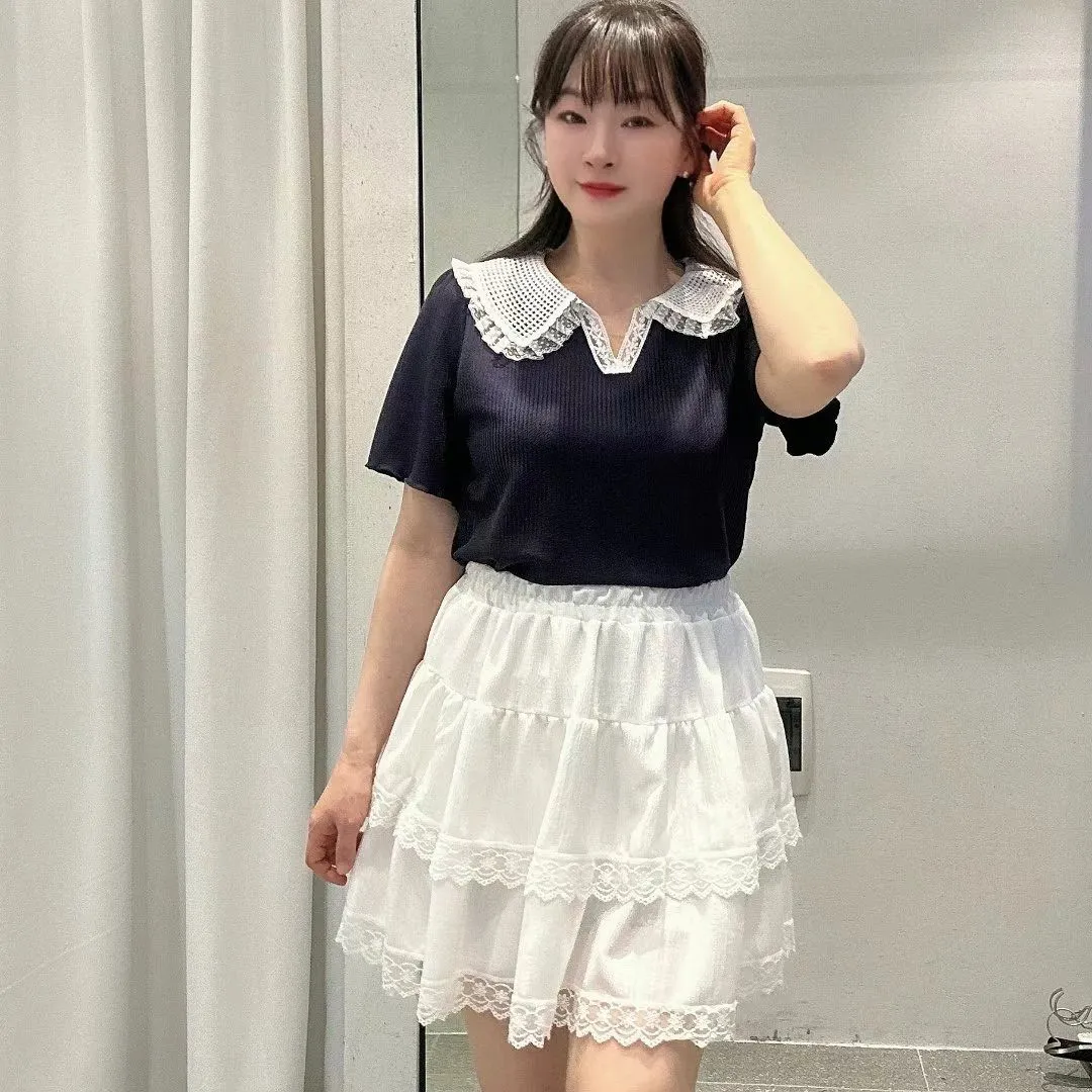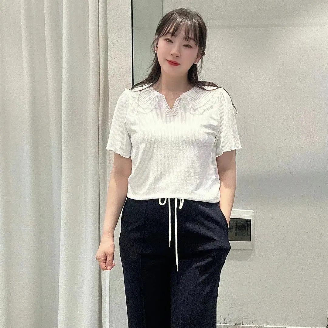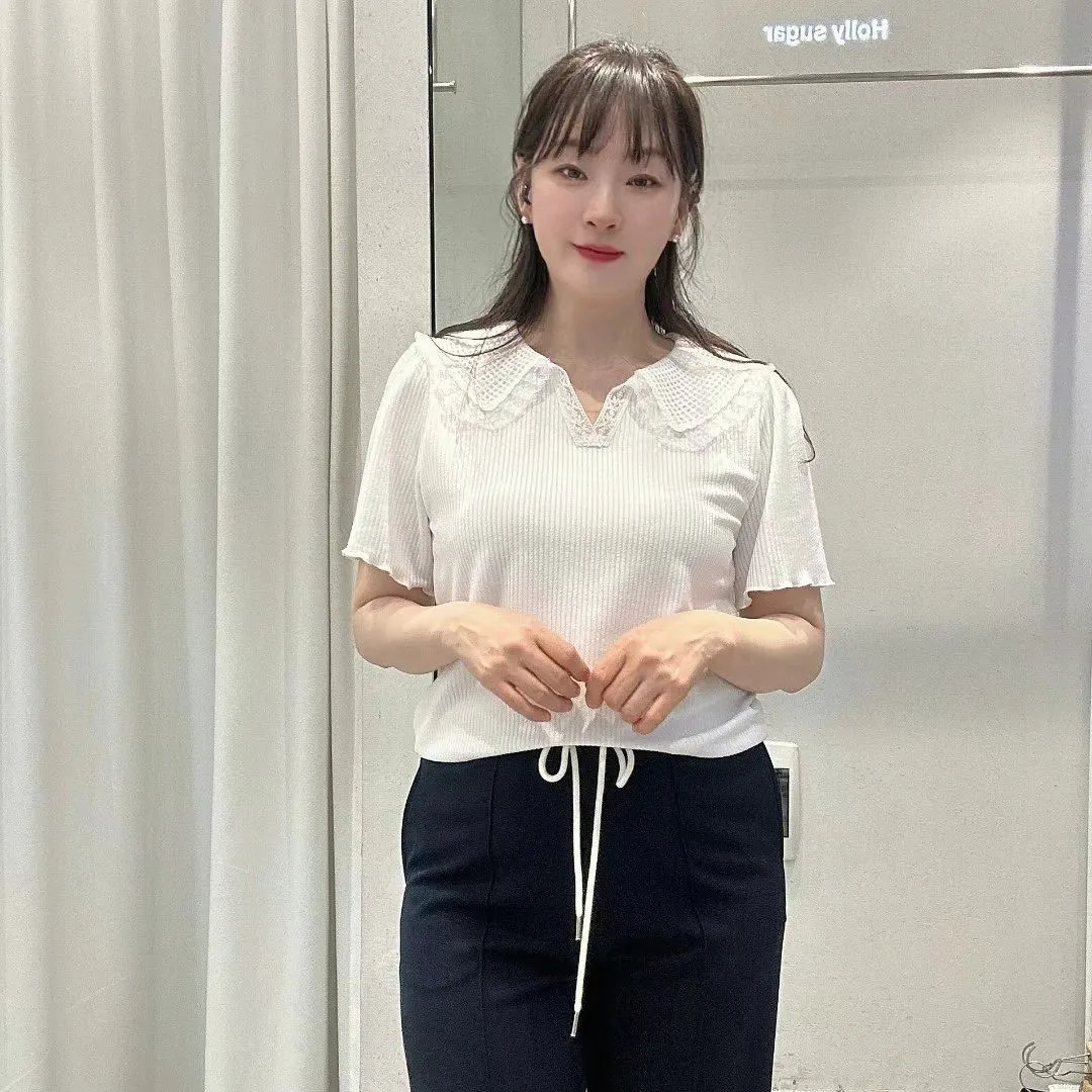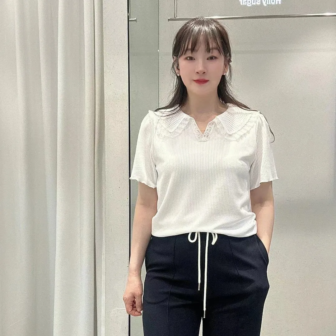 棉+聚酯 精緻細格蕾絲領 QQ麻糬感 寬鬆有彈力 不易皺