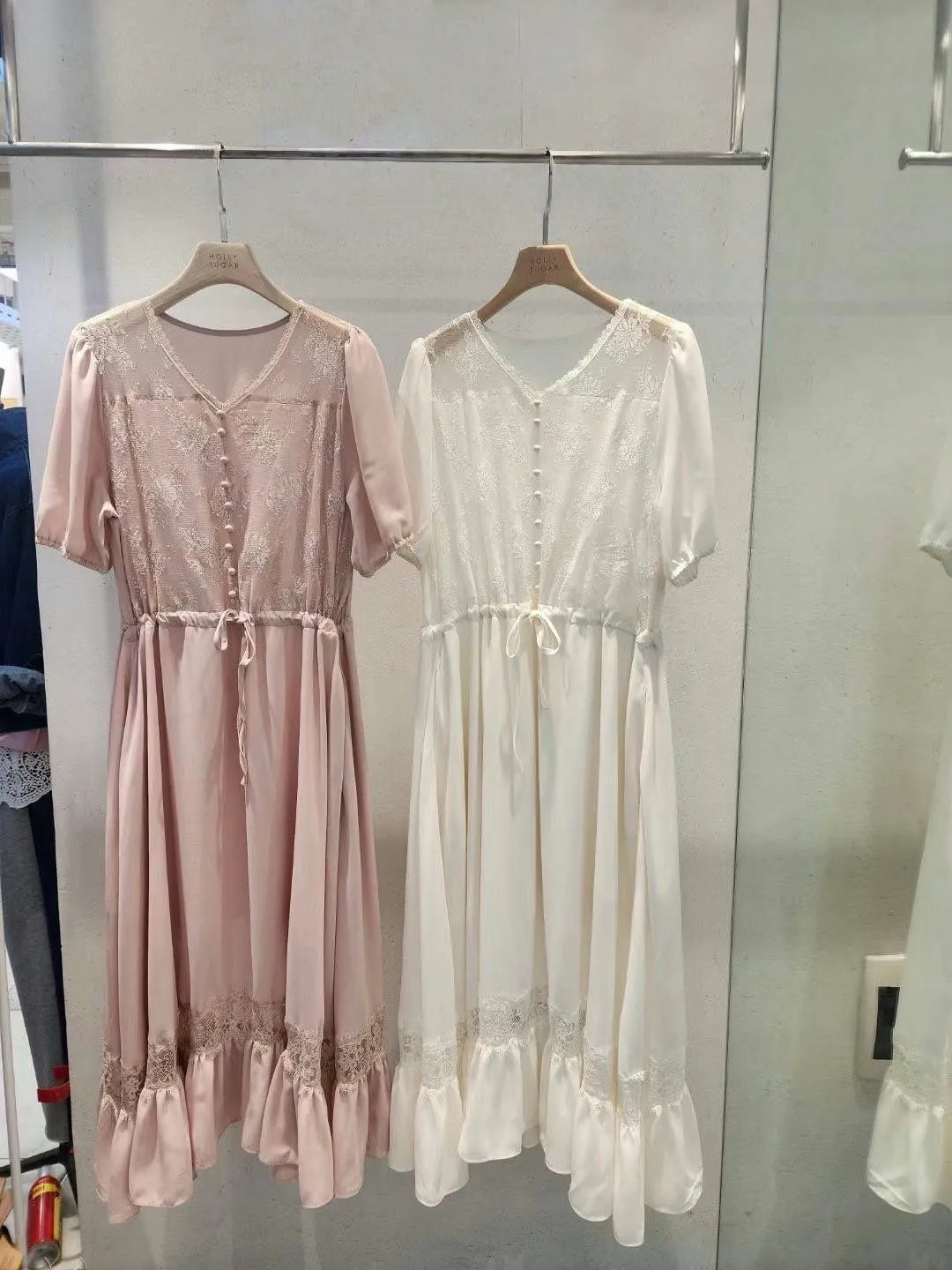 雪紡 推薦款 細緻蕾絲 薄款飄逸 不易皺 腰綁繩 有口袋