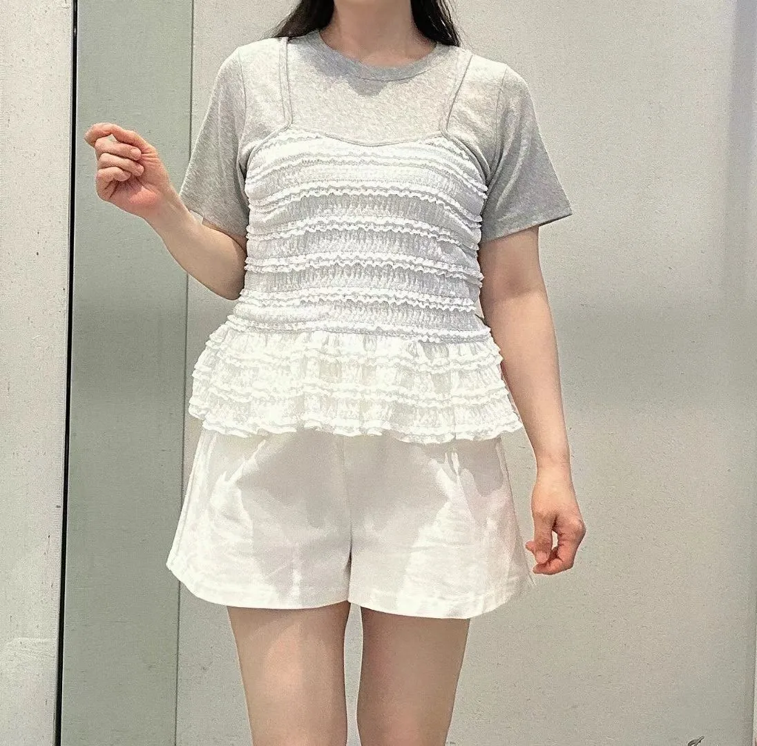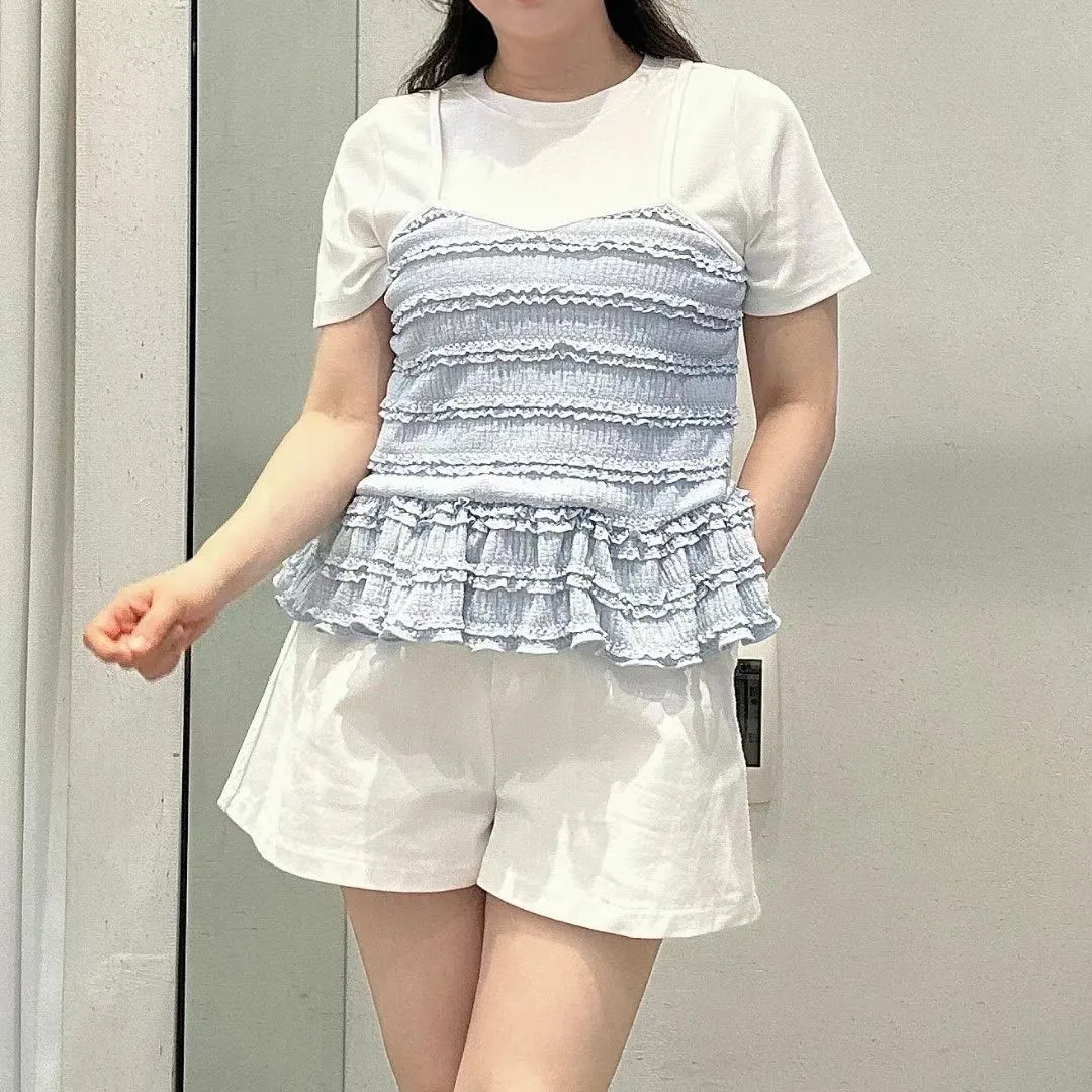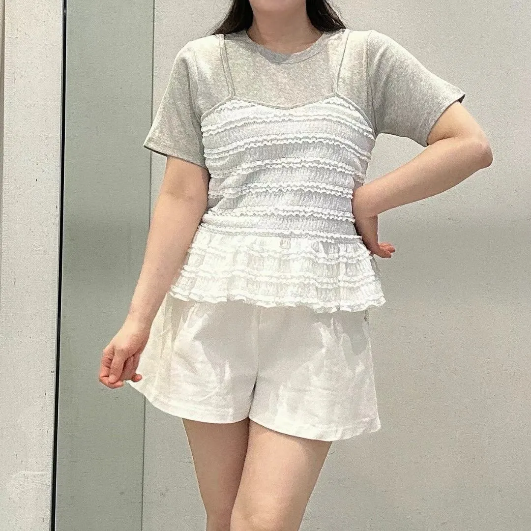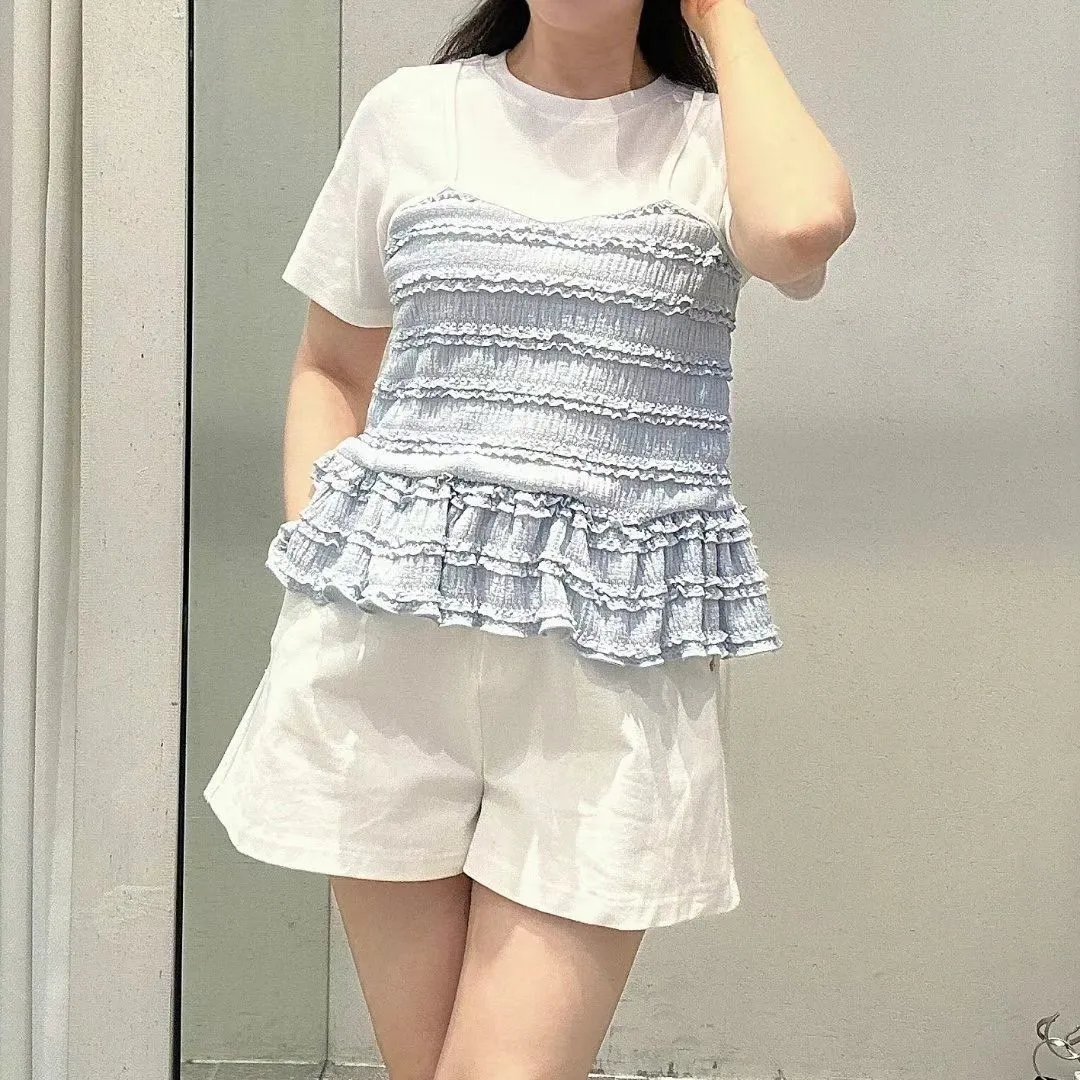 彈性棉+聚酯 上衣有彈性 假兩件不可拆 下擺娃娃裝