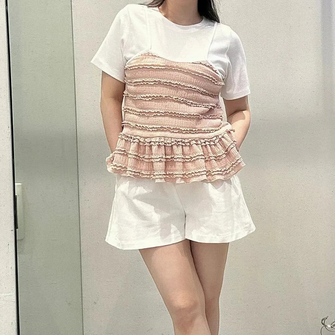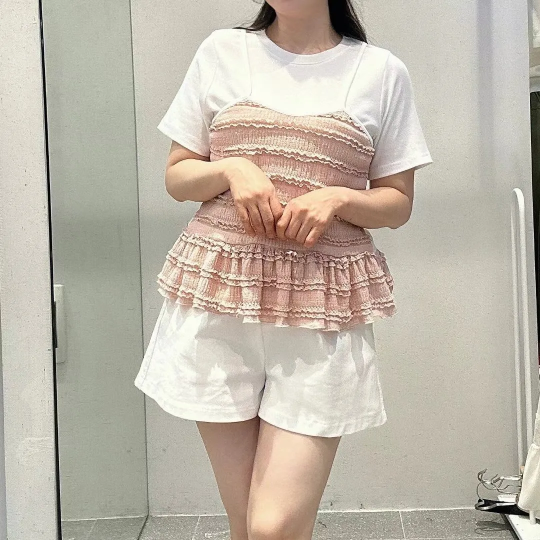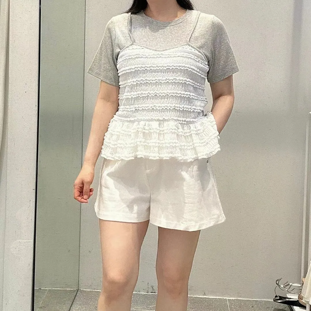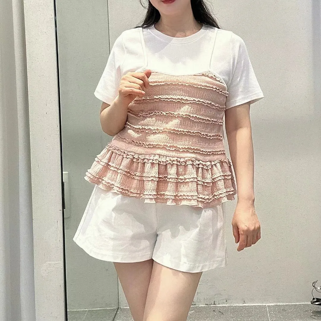 彈性棉+聚酯 上衣有彈性 假兩件不可拆 下擺娃娃裝