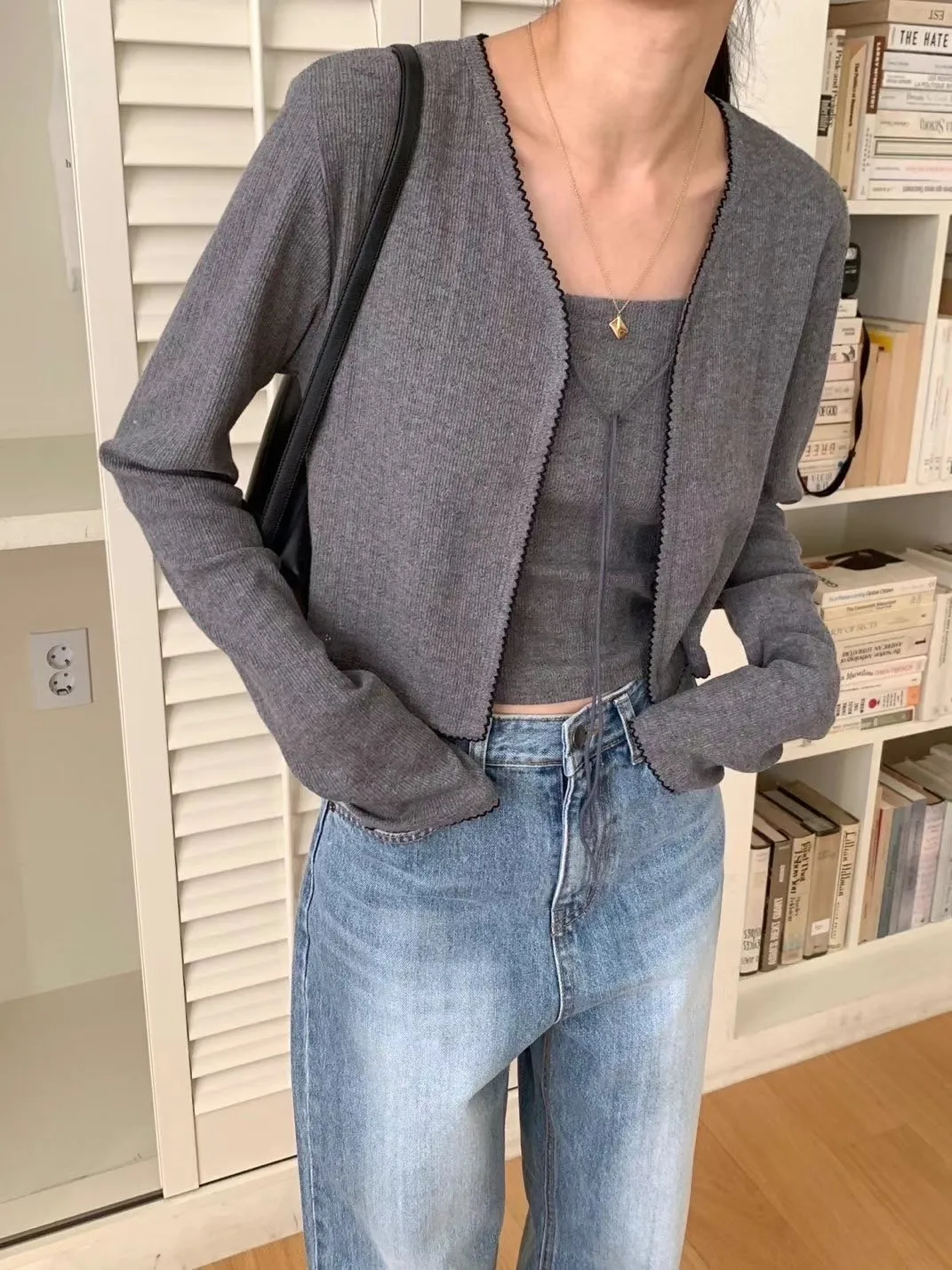 棉 細緻洞洞紋理 小雲朵滾邊 有彈性 細肩帶背心無杯墊 L號友善