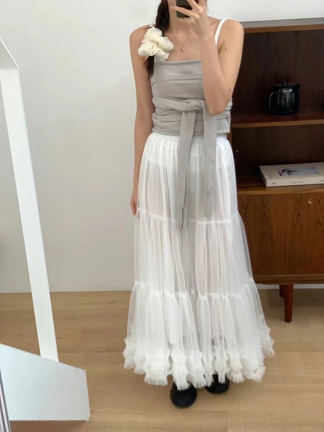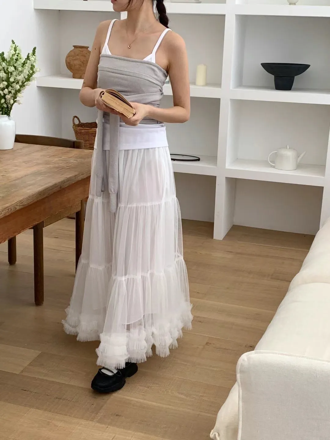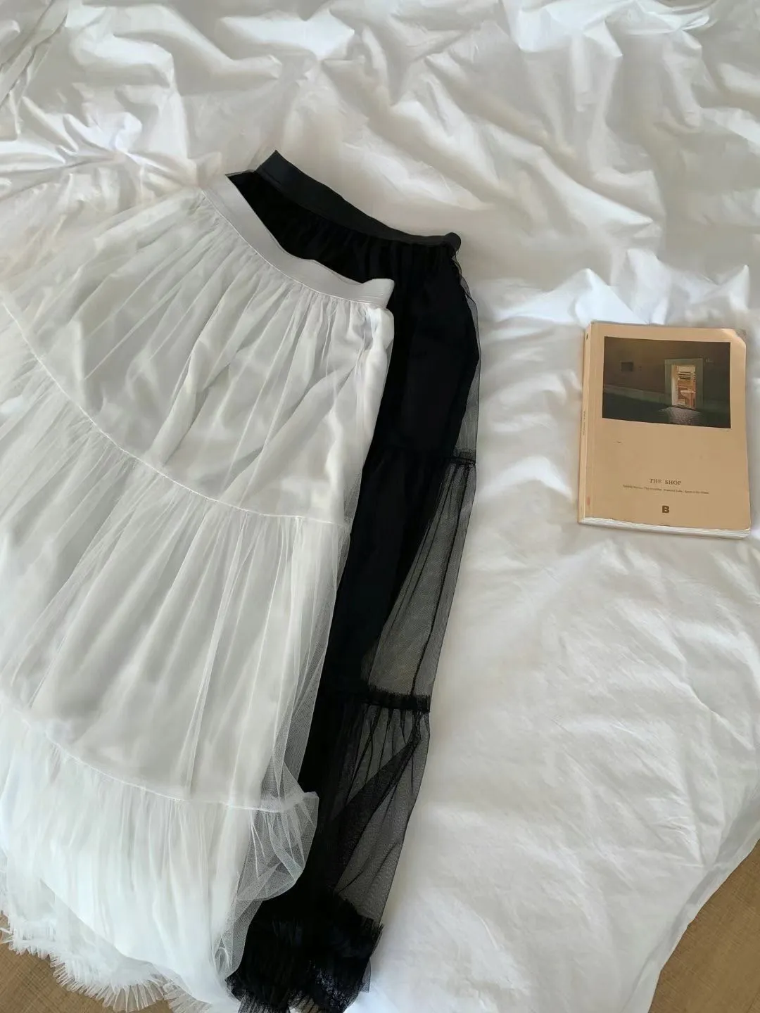 聚酯 網紗輕盈 白會透 飄逸垂墜 有內裡 腰寬極大 XL友善