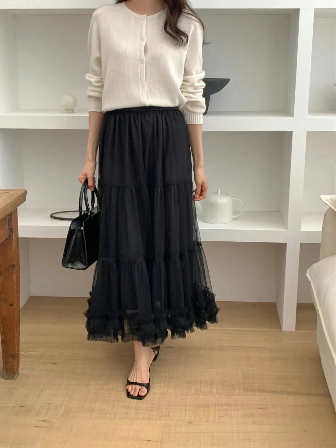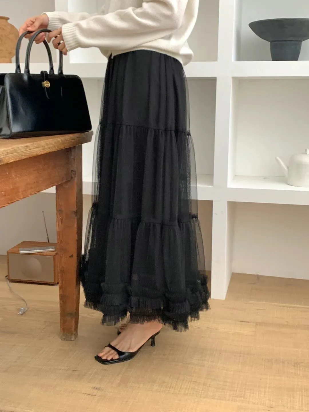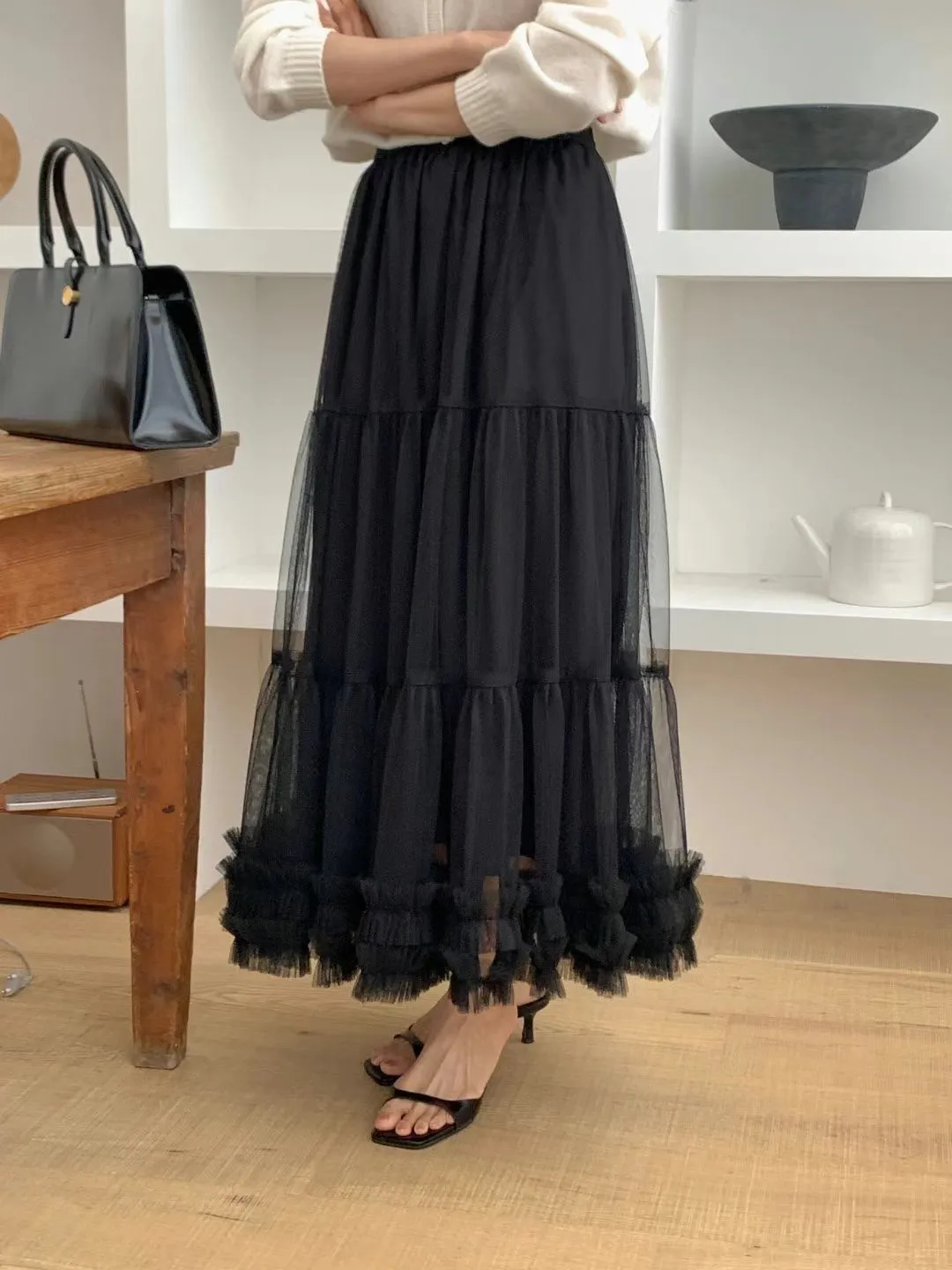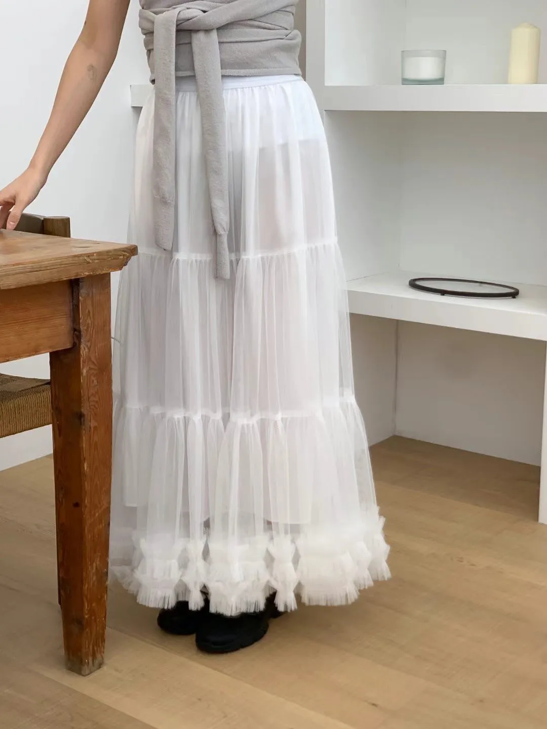 聚酯 網紗輕盈 白會透 飄逸垂墜 有內裡 腰寬極大 XL友善