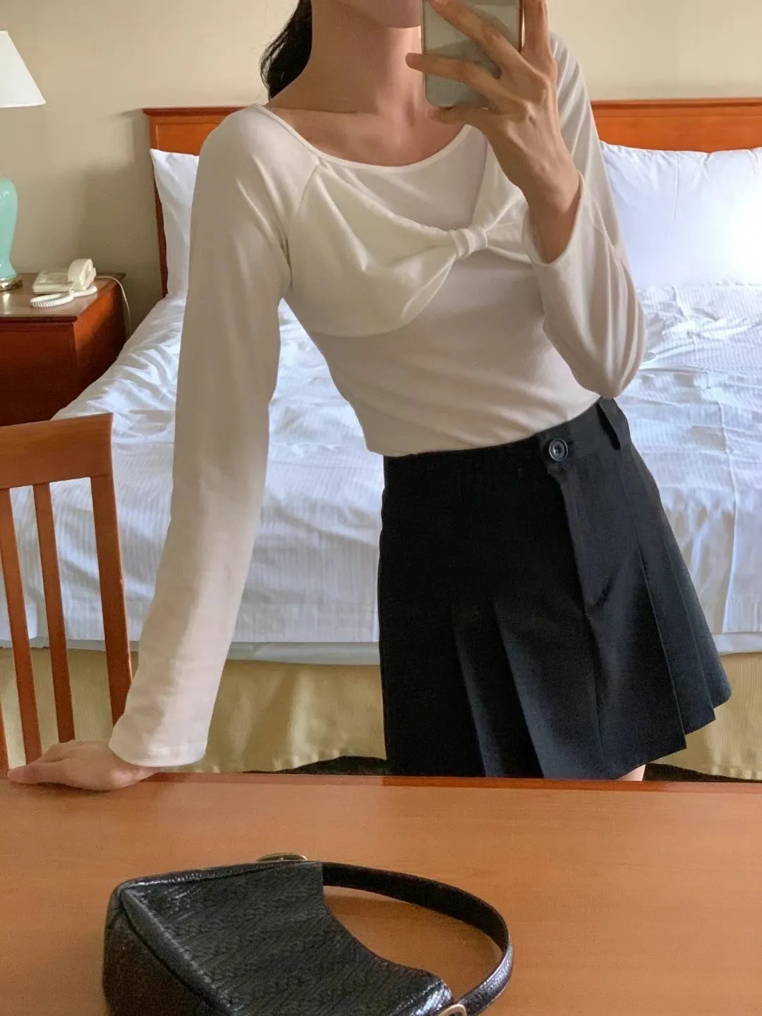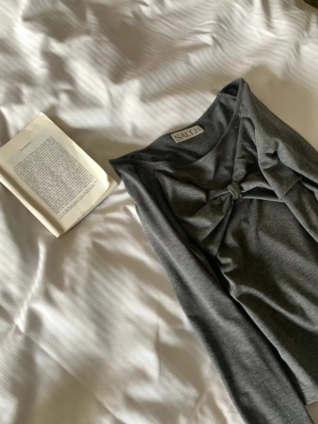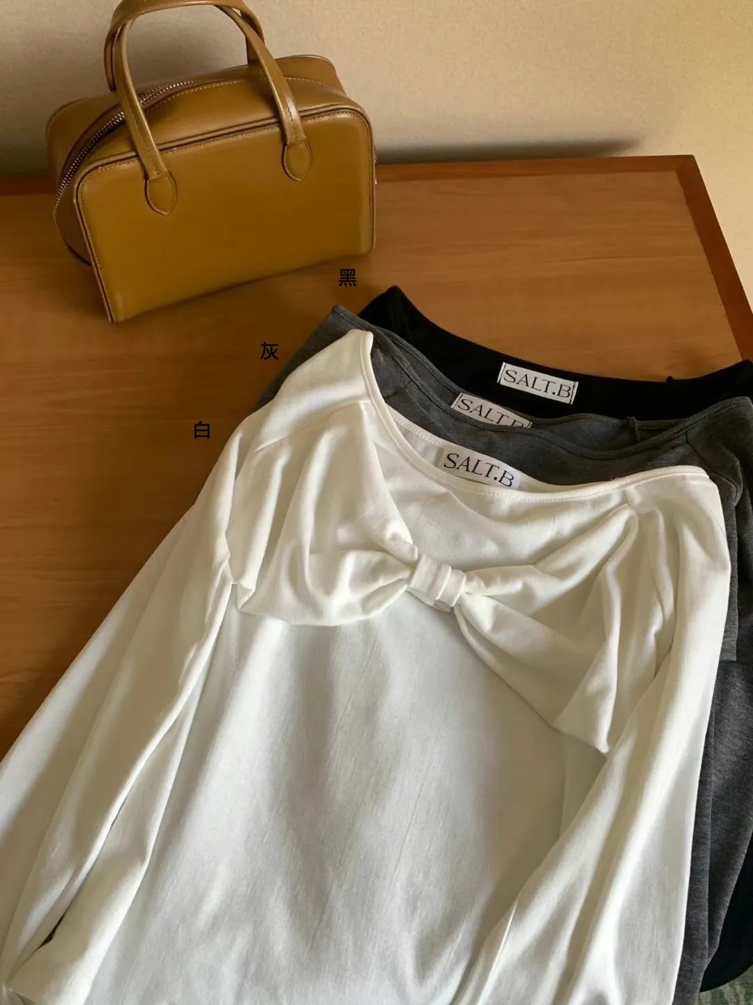 彈力棉 蝴蝶結可移動 寬領舒適小露鎖骨 有彈性 穿到S號