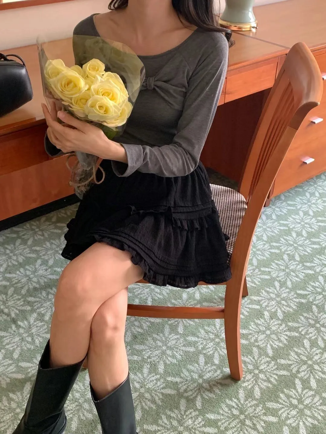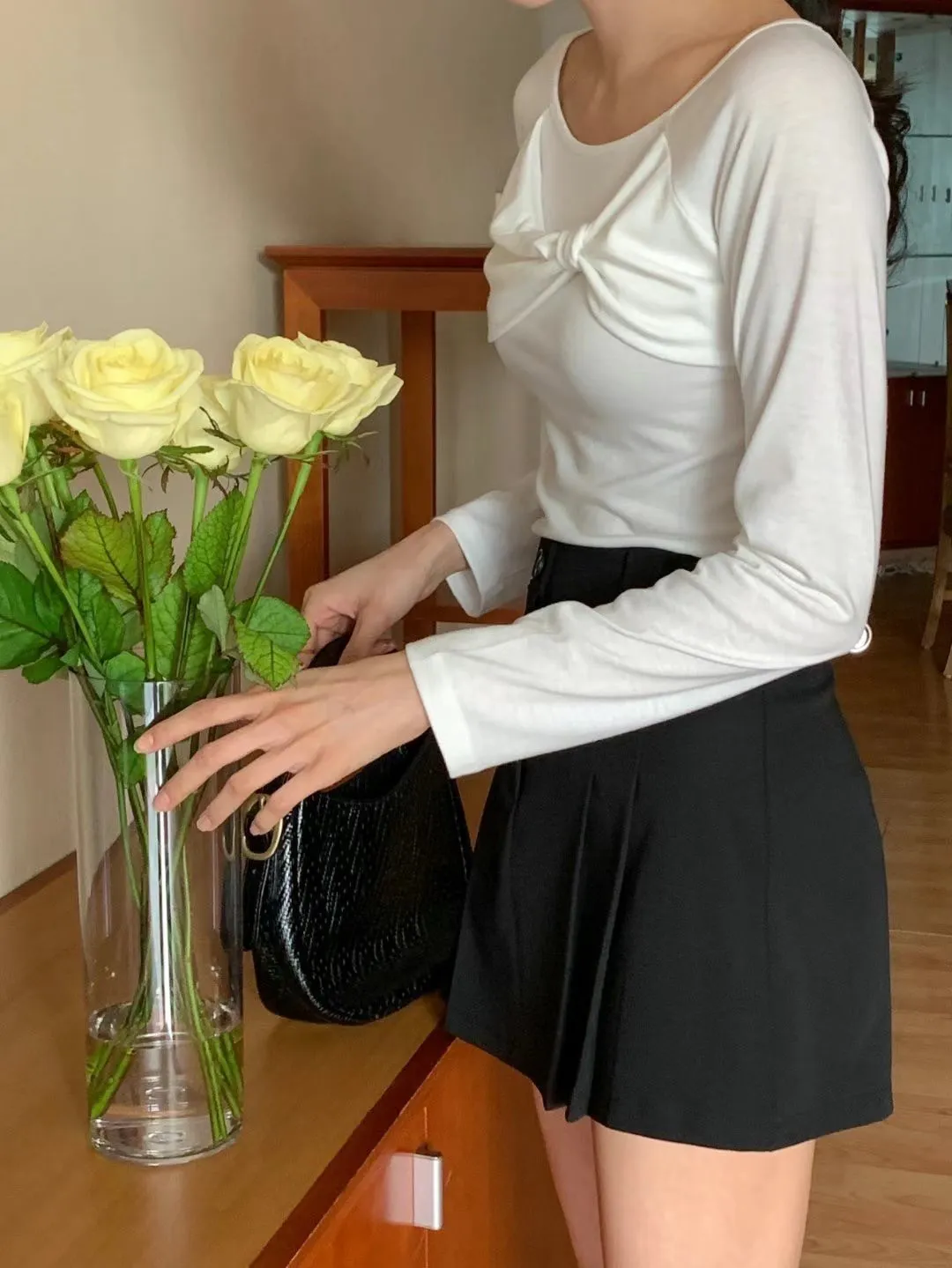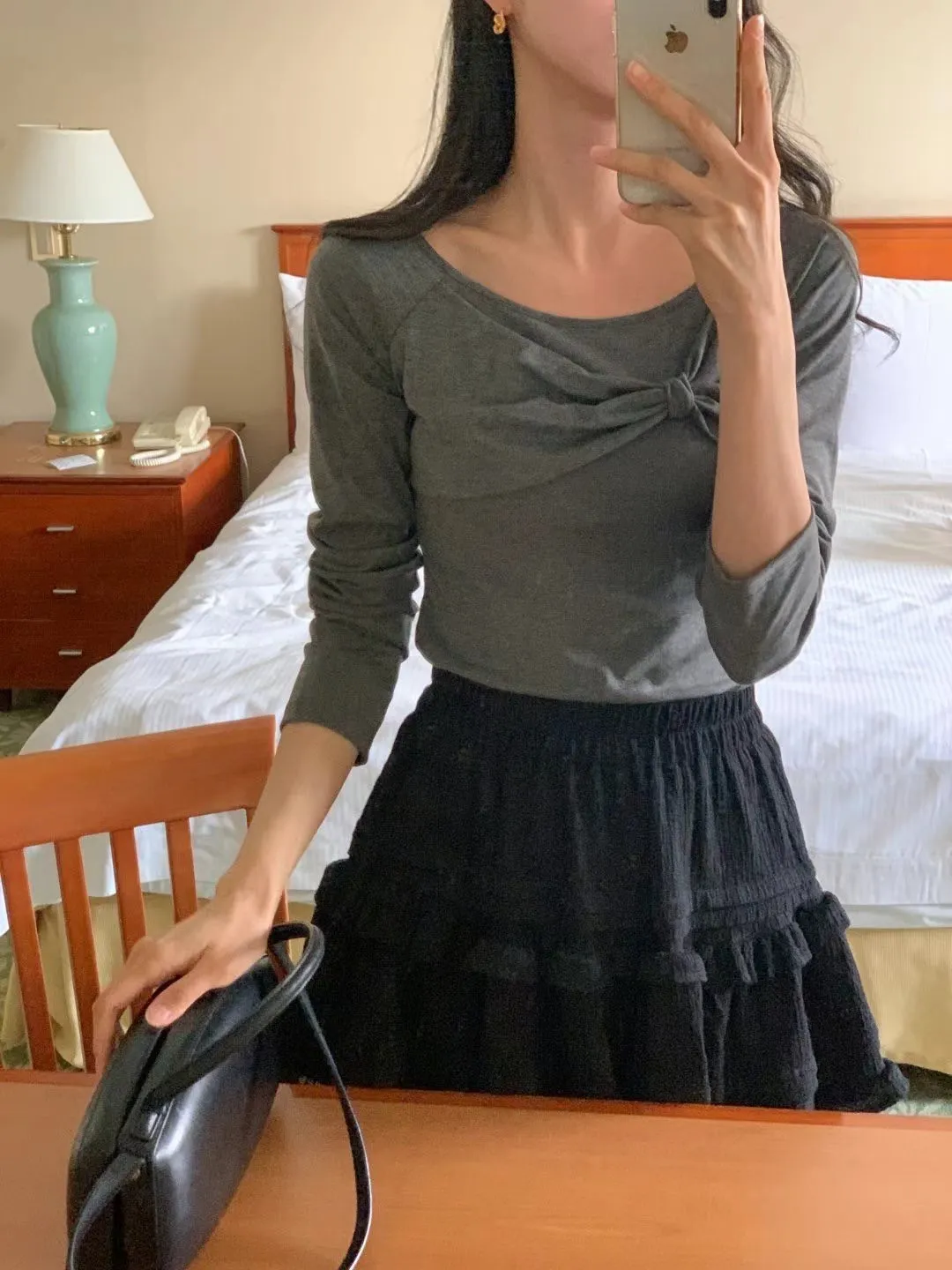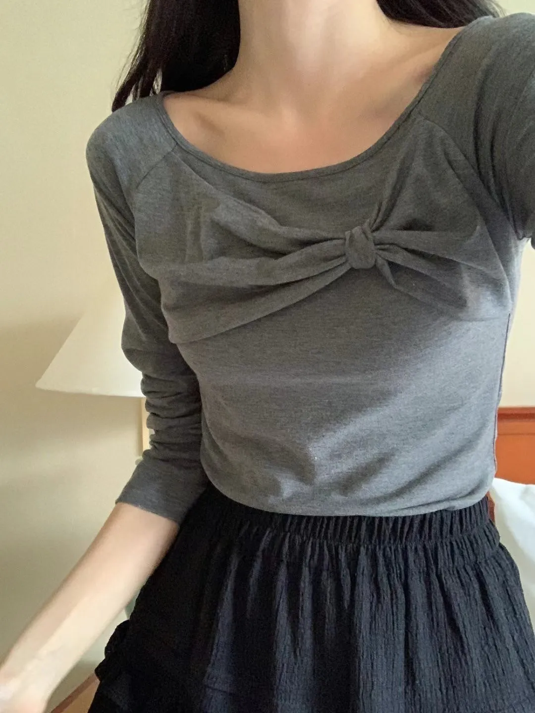 彈力棉 蝴蝶結可移動 寬領舒適小露鎖骨 有彈性 穿到S號