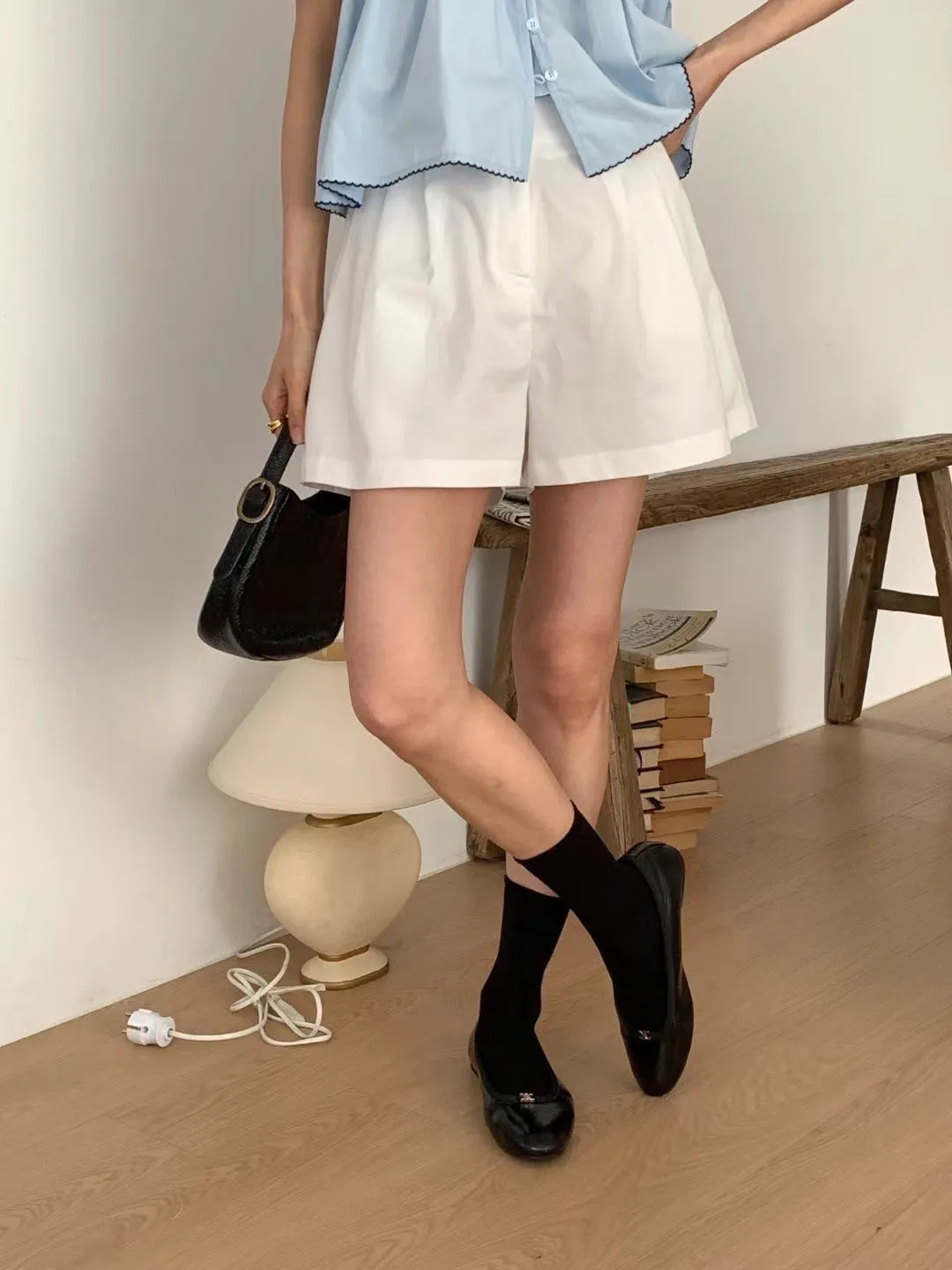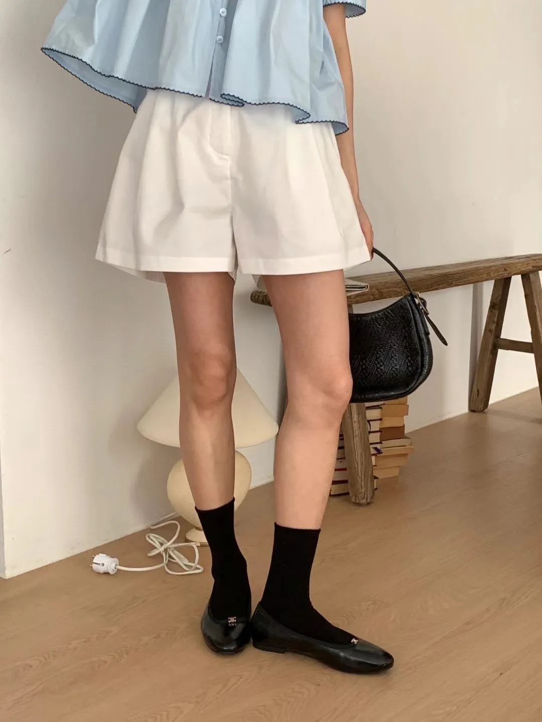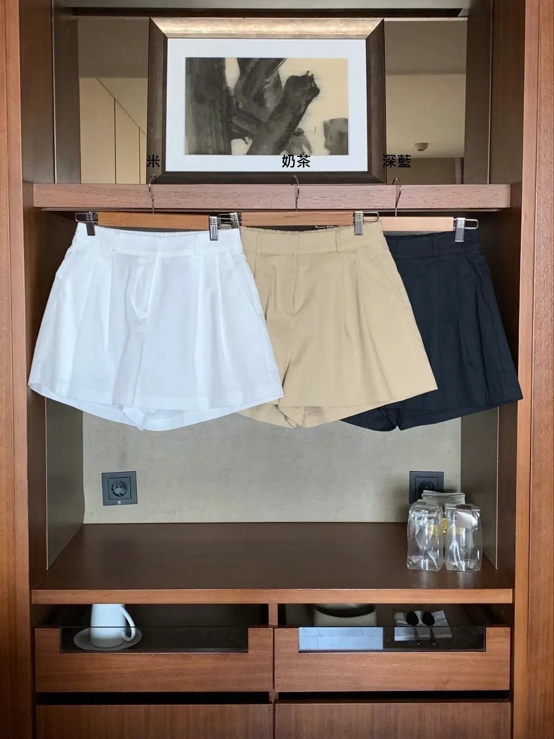 TW979絲滑微涼感藏釦短褲 米 奶茶 深藍 官網價$699 線上價$669