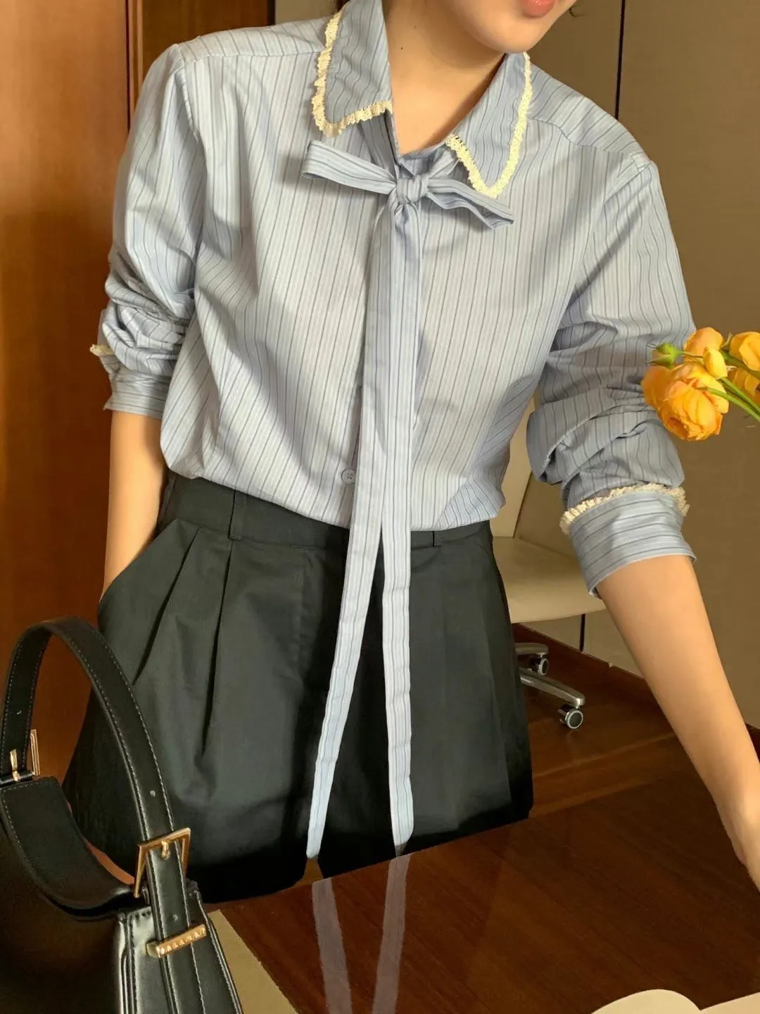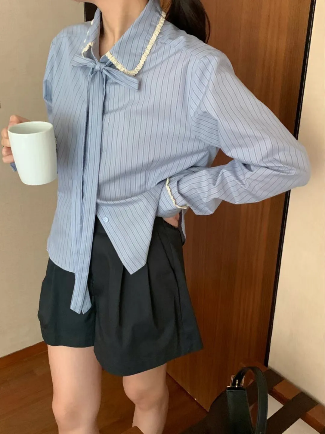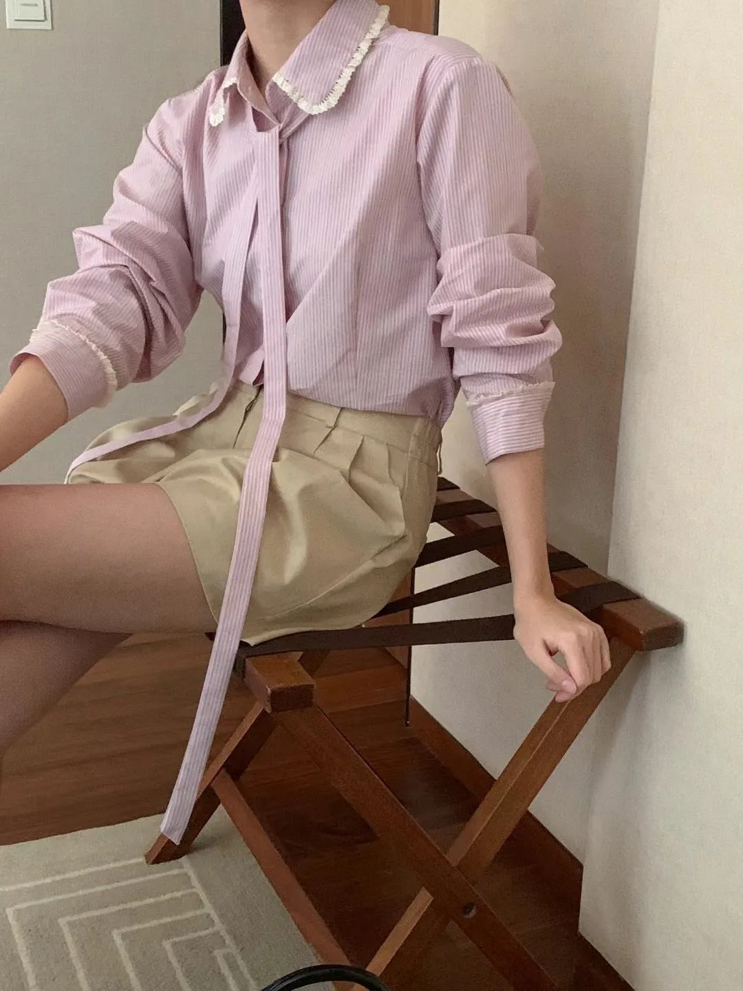 棉+聚酯 領口袖口布蕾絲 手袖偏長有釦 綁帶可拆L號友善