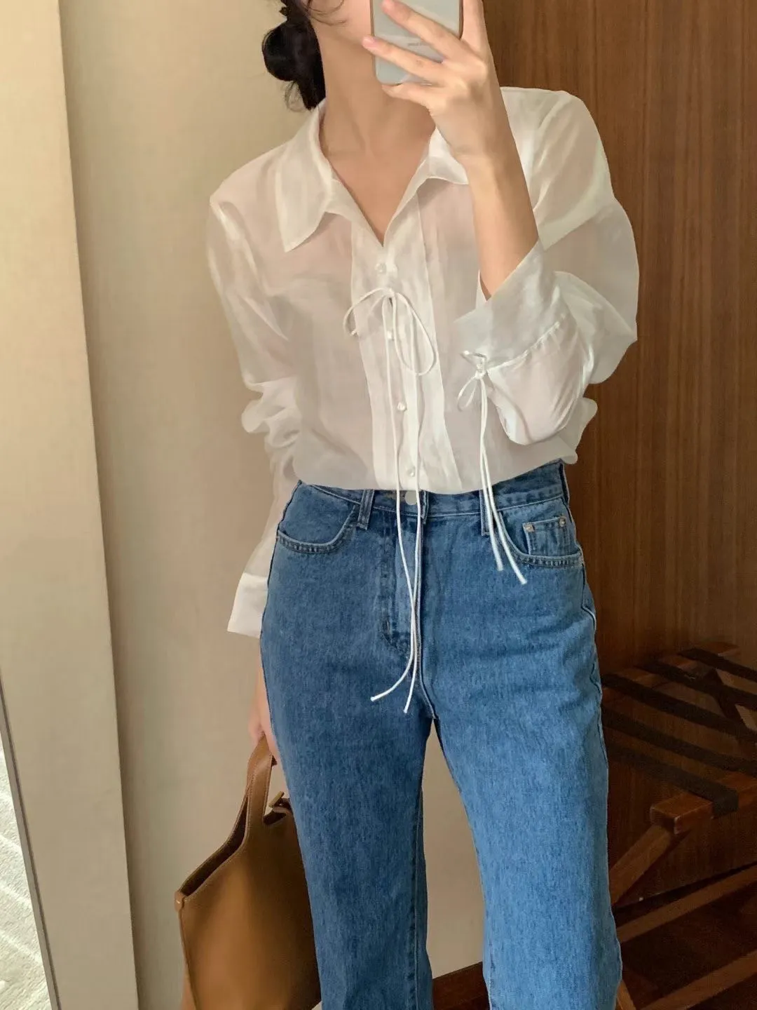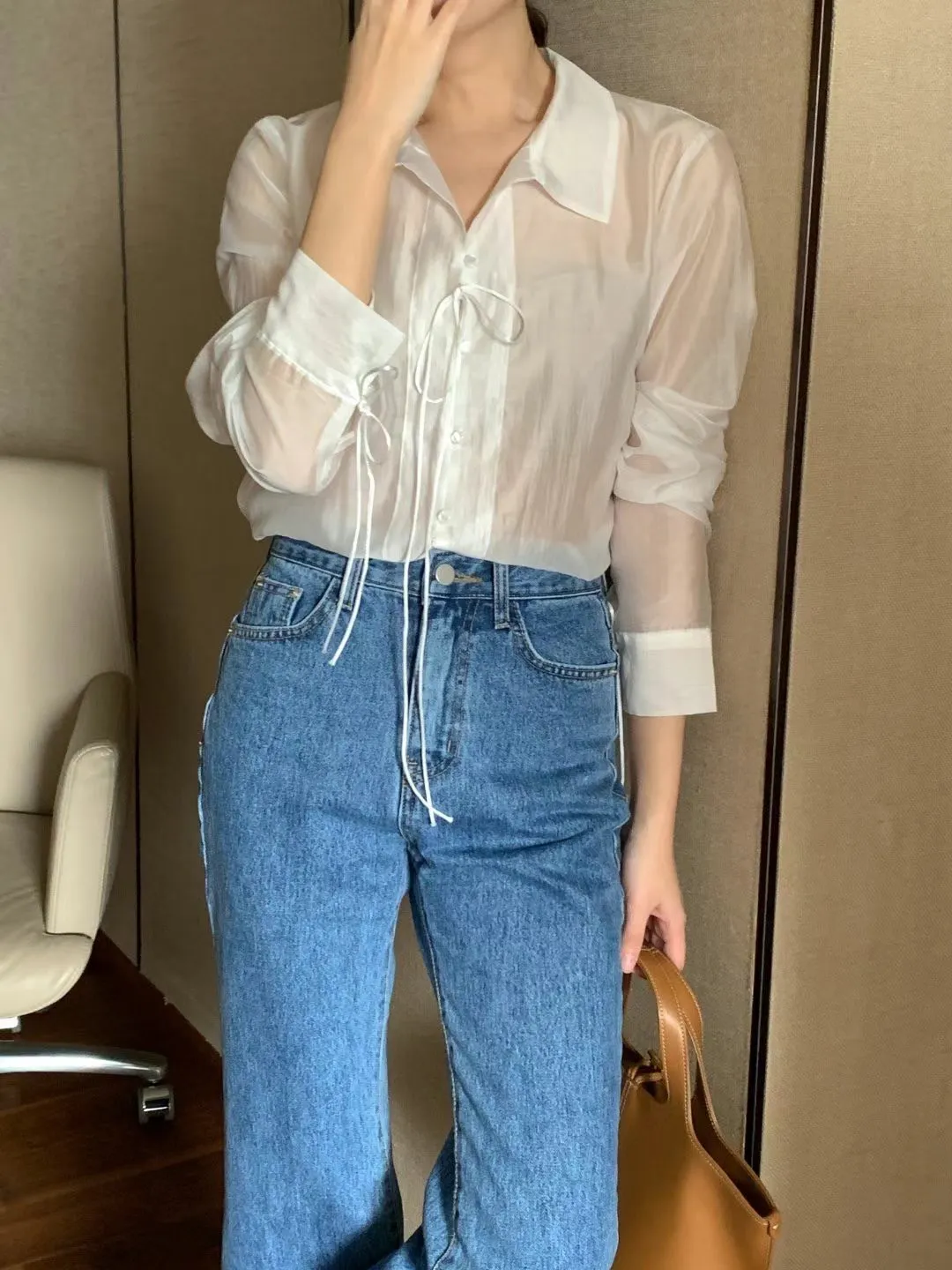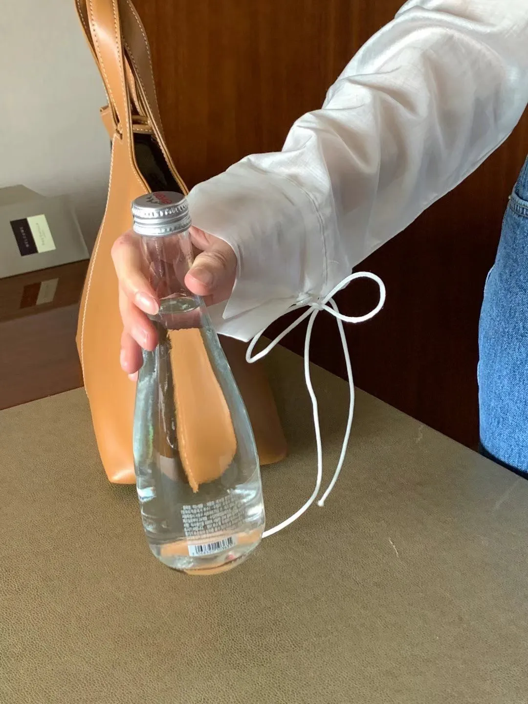 天絲+聚酯 輕盈薄款 柔軟舒適 細洞釦胸前綁帶 縫線不刺