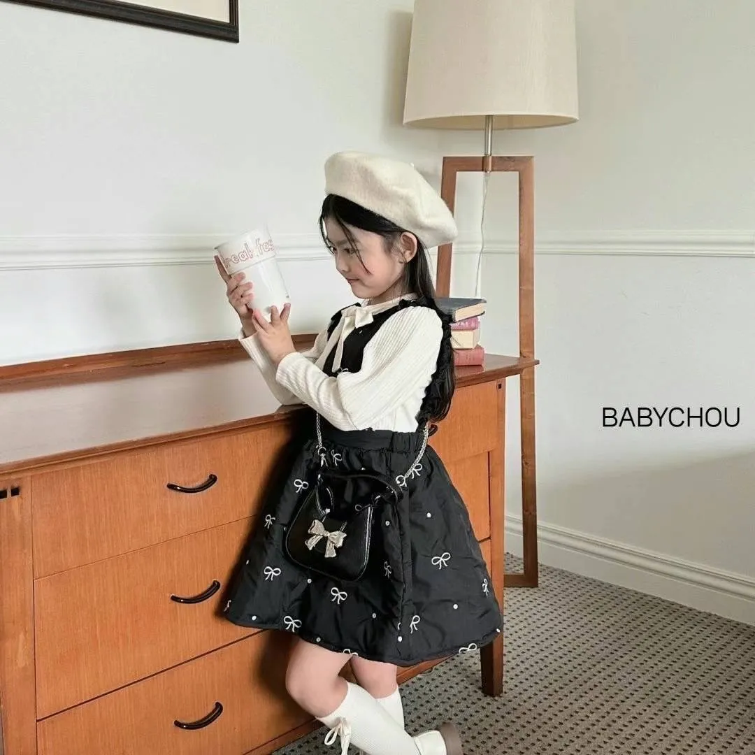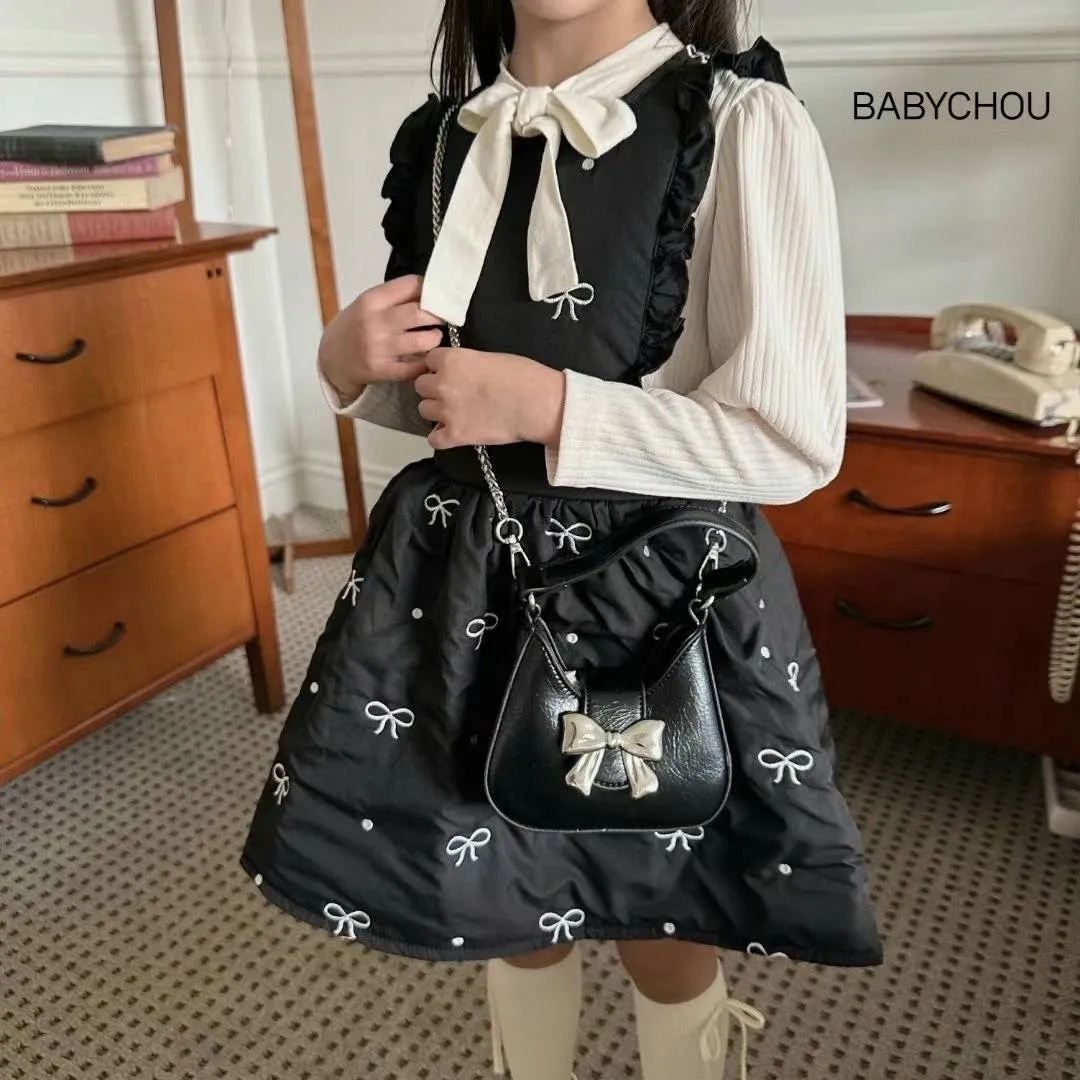 尼龍 蓬蓬空氣感 刺繡蝴蝶結 實體高級 拉鍊穿脫