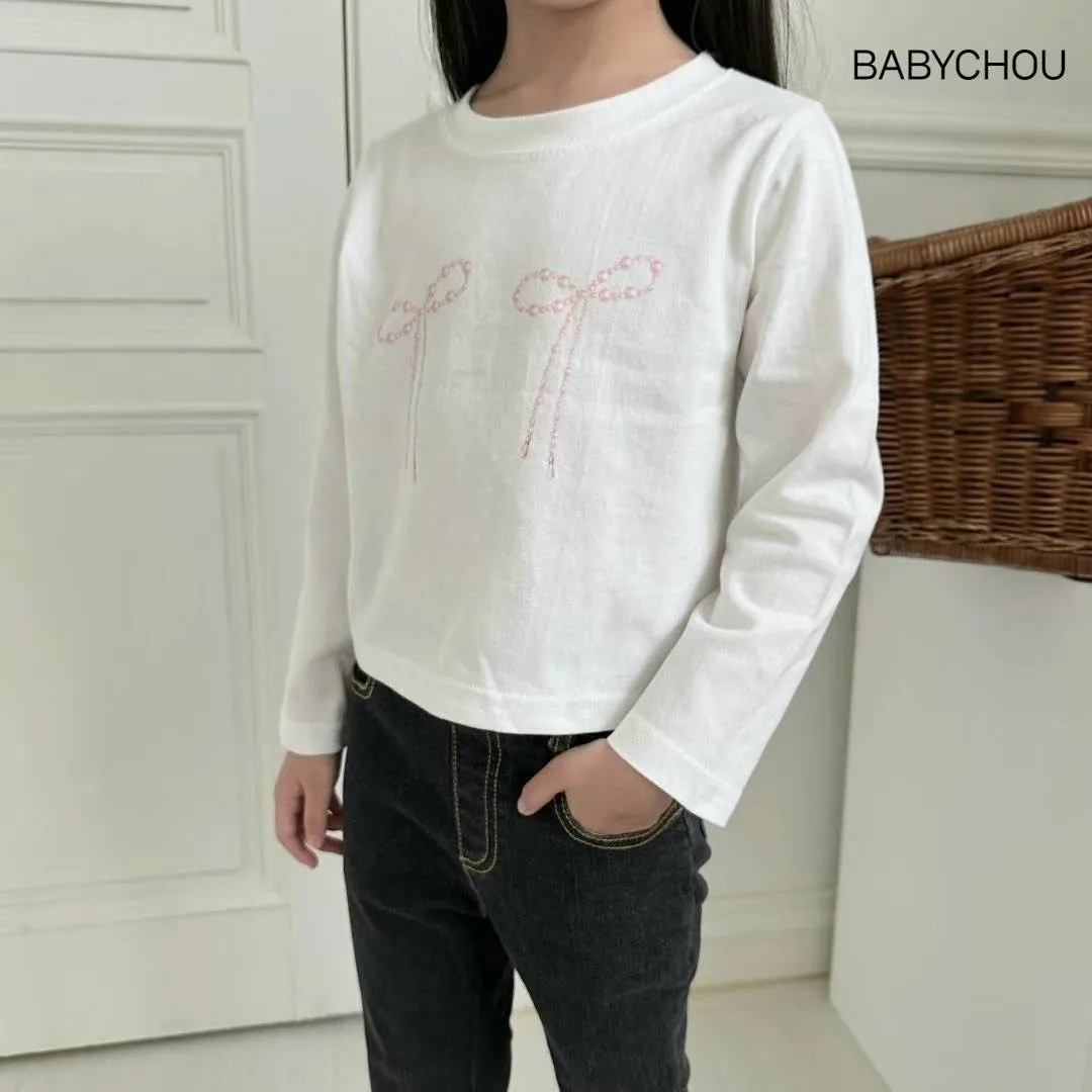 棉 串珠的立體蝴蝶結 長袖 可愛好搭配