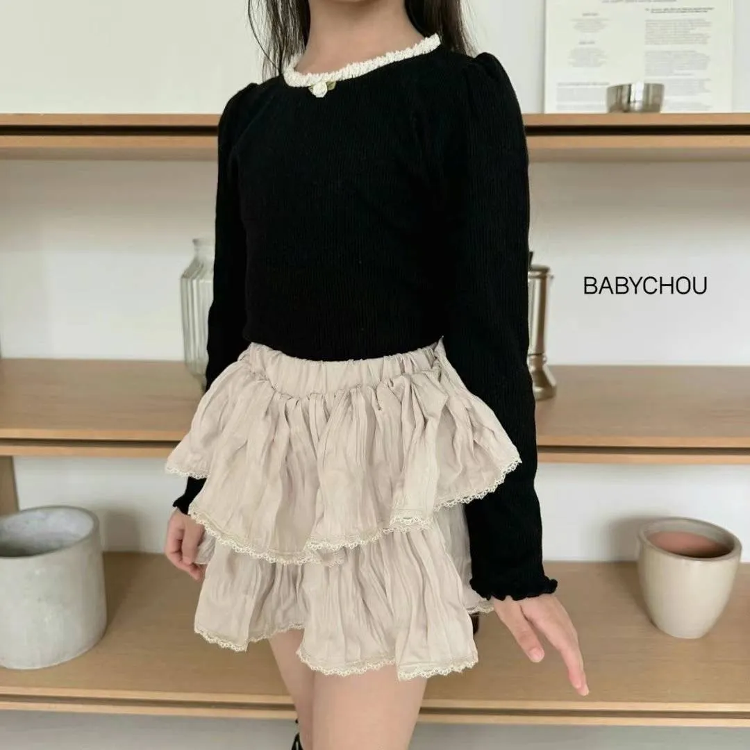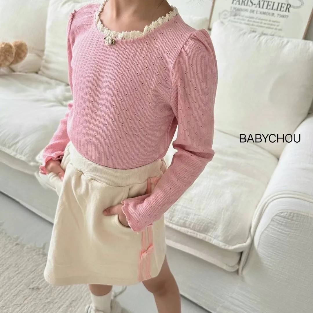 棉+彈力 高級感的彈性棉料 木耳滾邊 胸前一個小小花