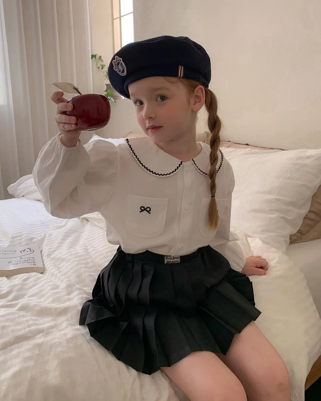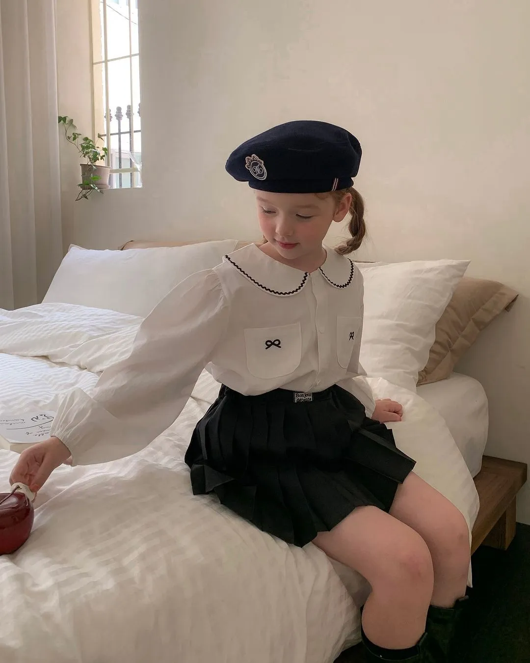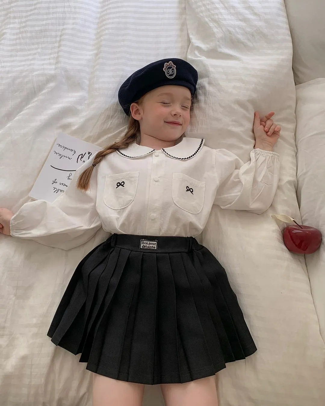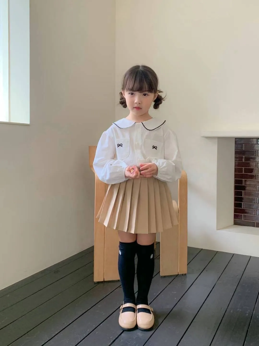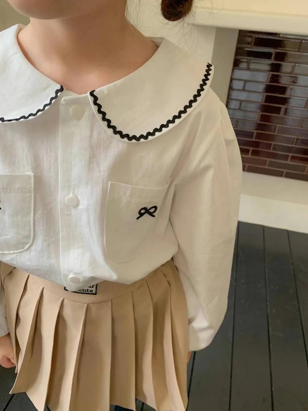 棉 排釦穿脫 手袖鬆緊 雙口袋刺繡可愛小蝴蝶結