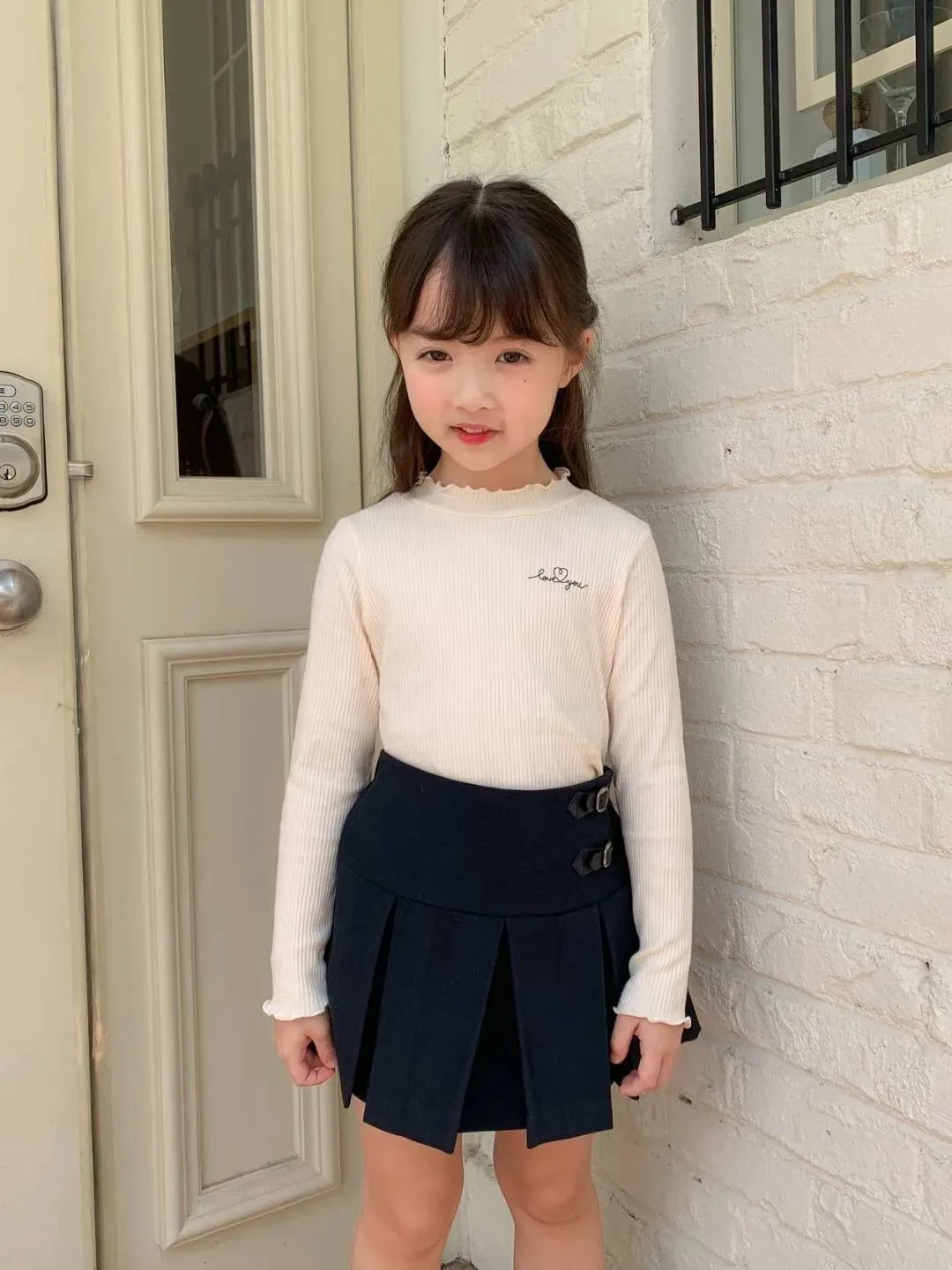 UU048小愛心love you木耳上衣 米 黑 5 7 9 11 13 $360 15 $380 (線上價-30元)