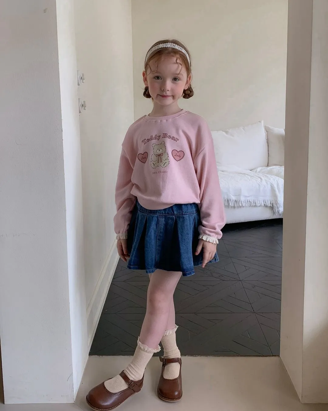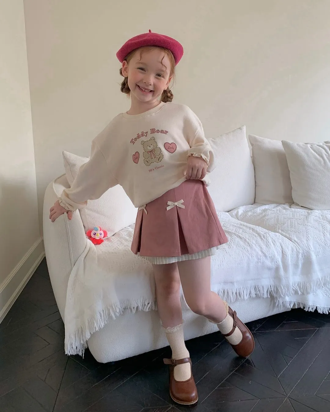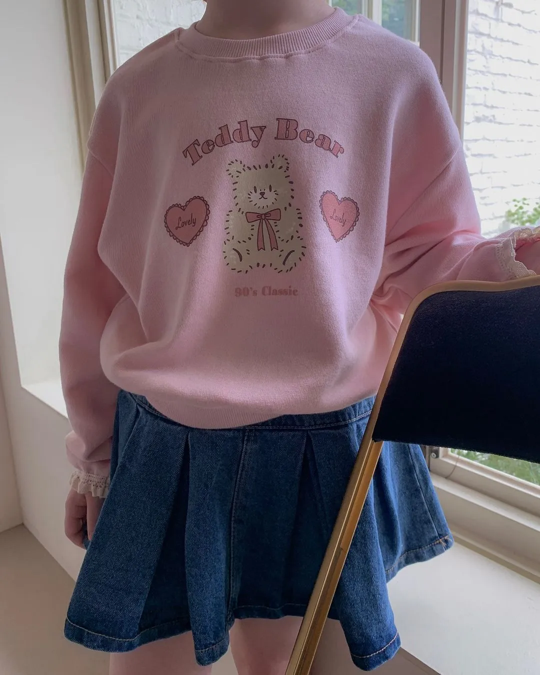 UU053熊熊Teddy愛心大學T 米 粉 5 7 9 11 13 $499 (線上價再-30元)