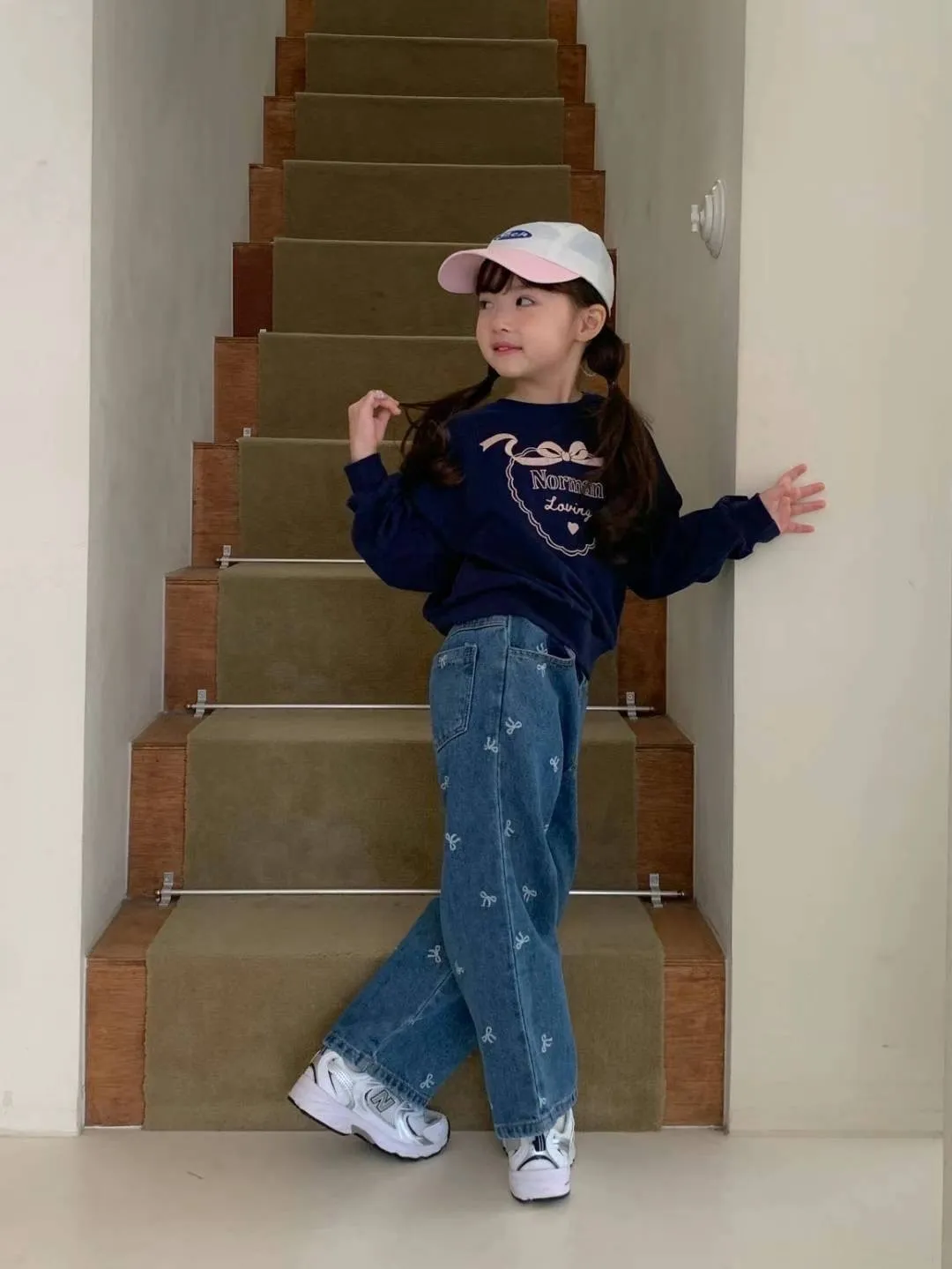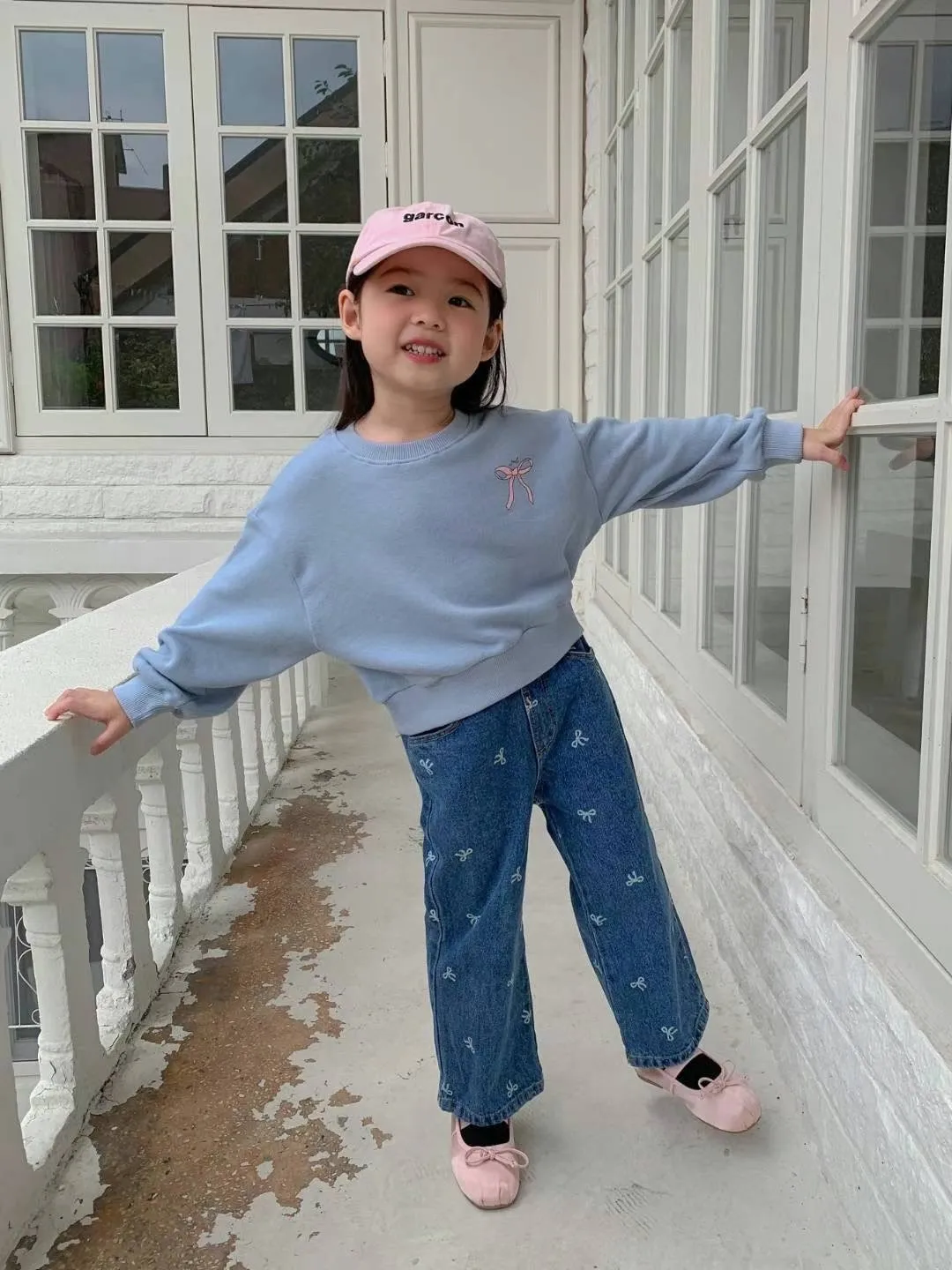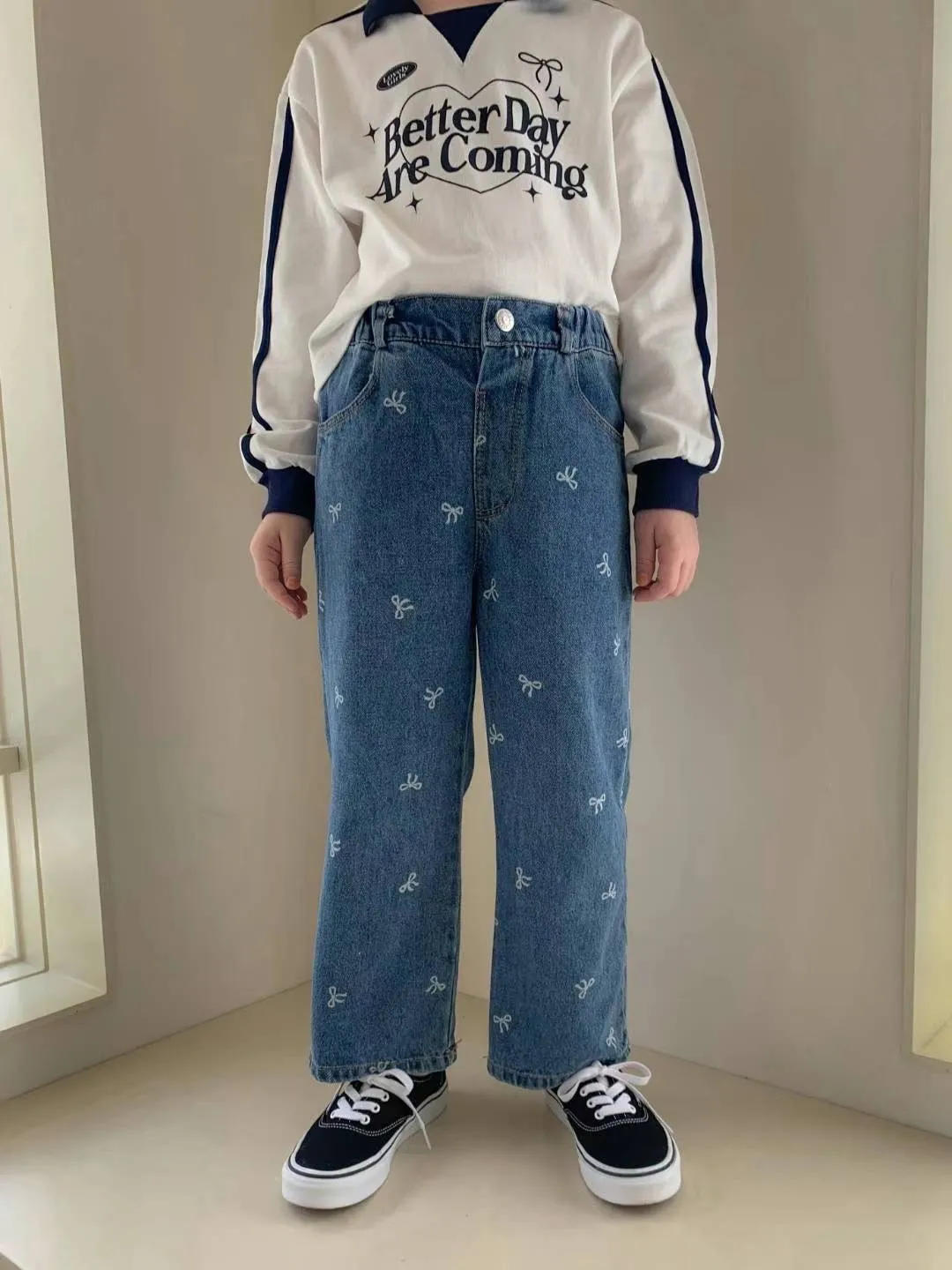 UU058小蝴蝶結牛仔長褲 5 7 9 11 13 $690 15 $730 (線上價-30元)