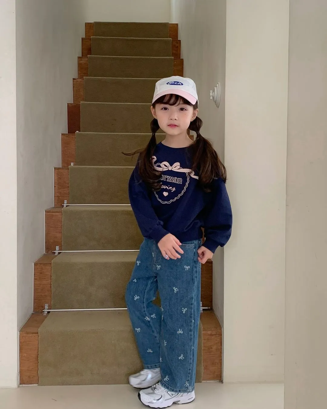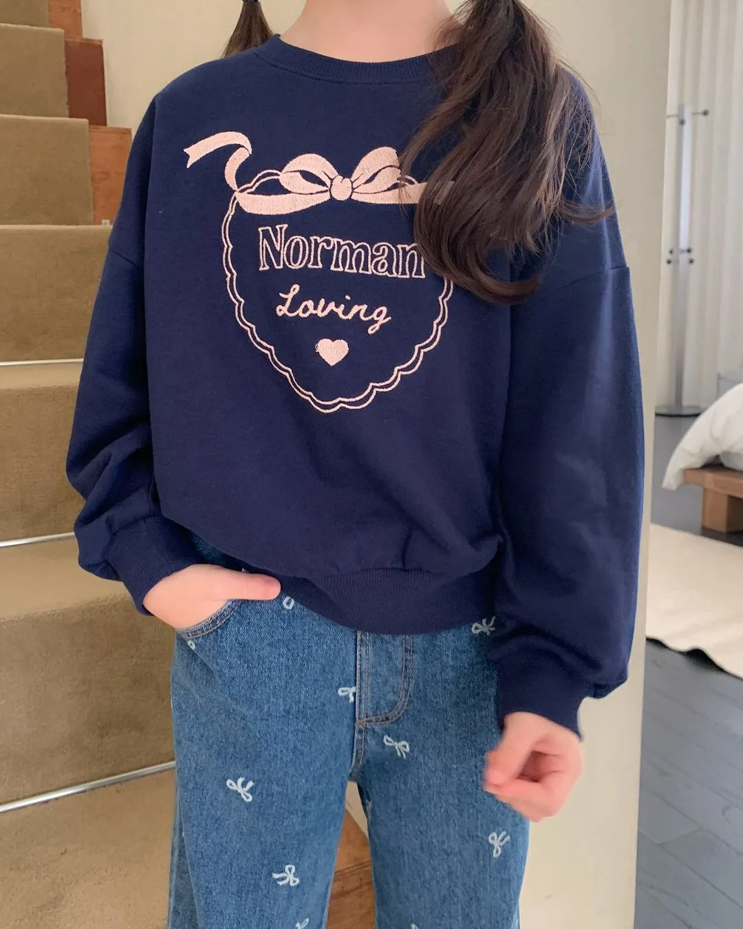 UU059柔軟蝴蝶結雙線愛心大學T 米 藍 5 7 9 11 13 $520 15 $550 (線上價-30元)