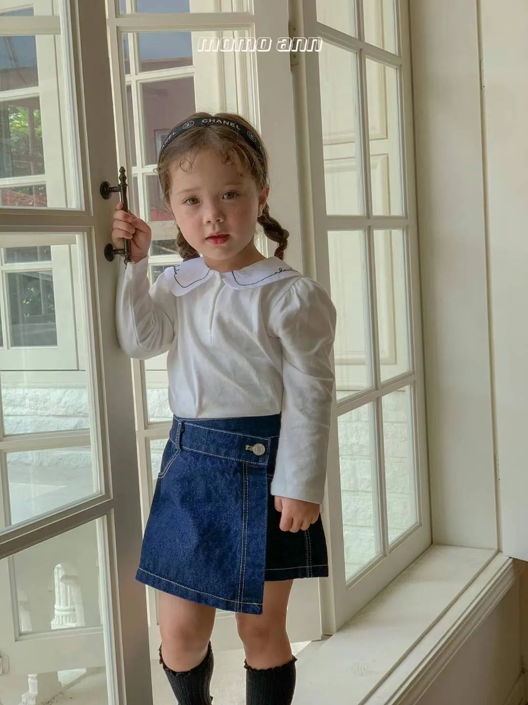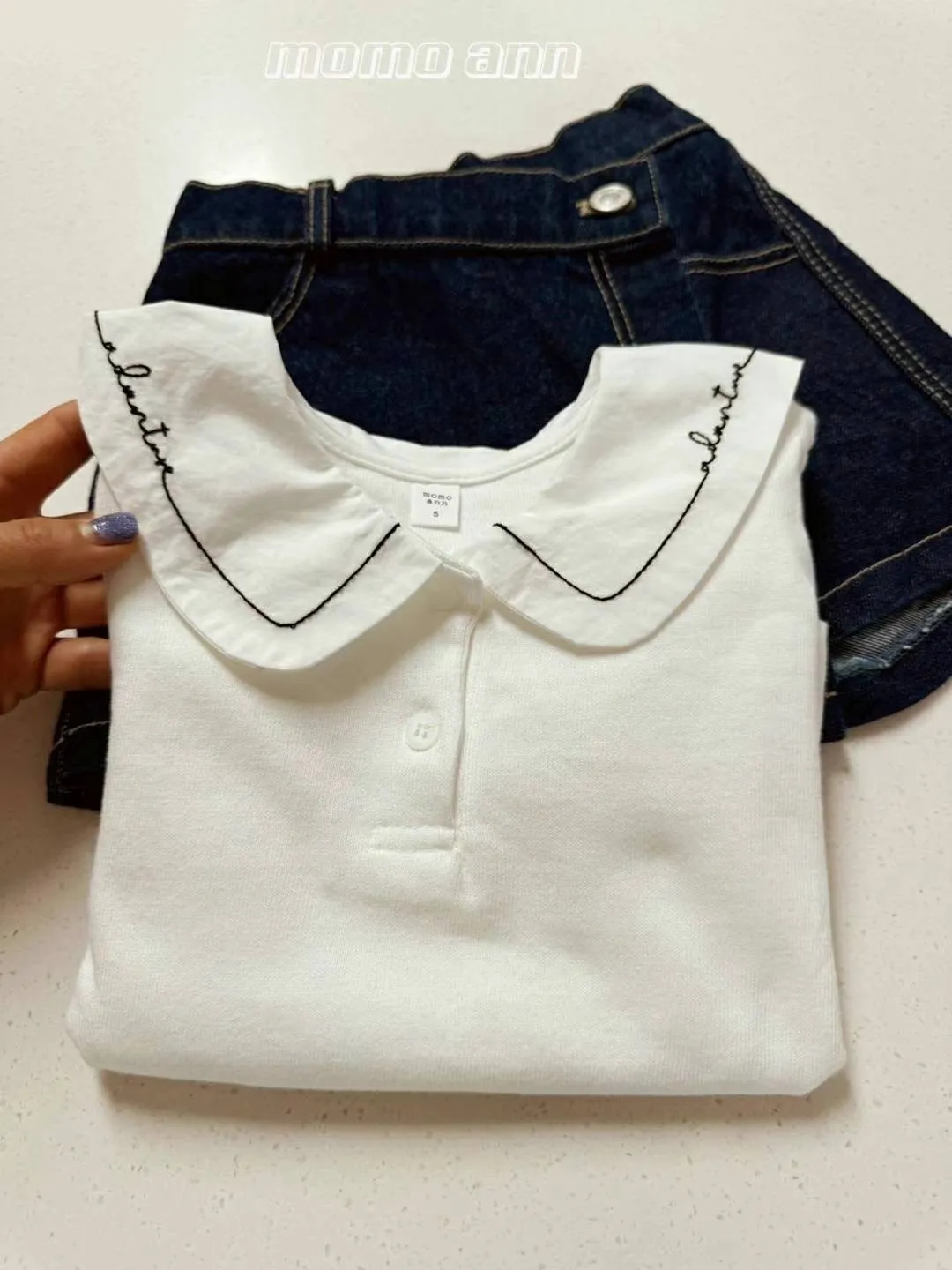 UU067英文刺繡翻領雙釦上衣 5 7 9 11 13 $550 15 $580 (線上價再-30元)