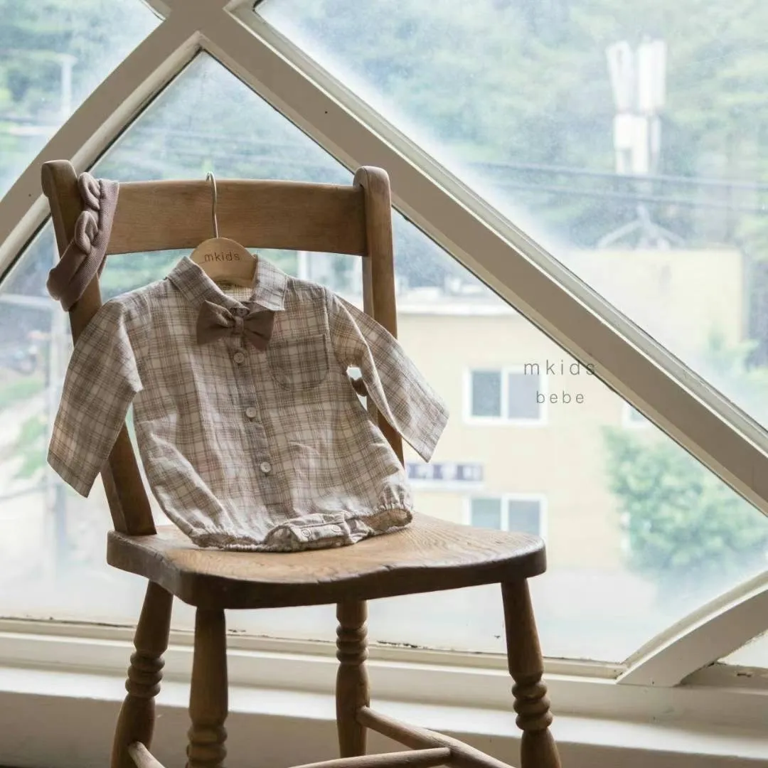 UU209襯衫奶茶色格紋包屁衣(只有M號) 特價$590