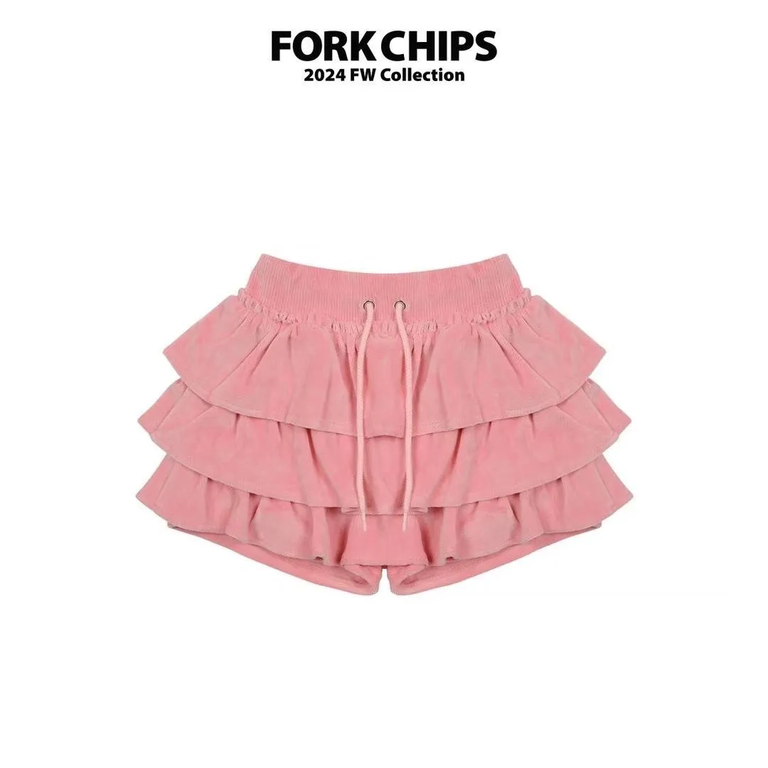 法蘭絨 腰鬆緊有抽繩 三層蛋糕設計 是褲裙