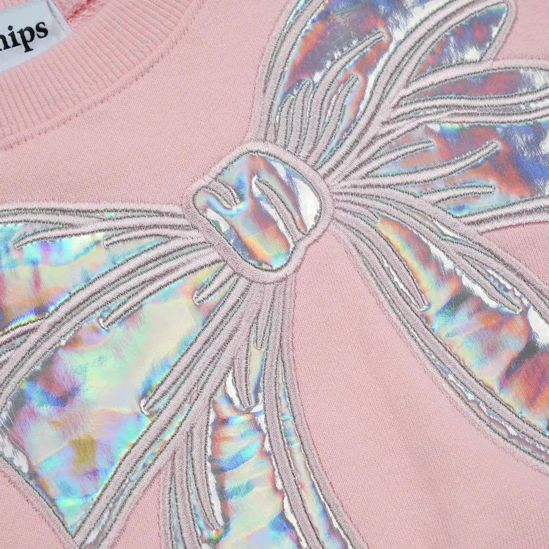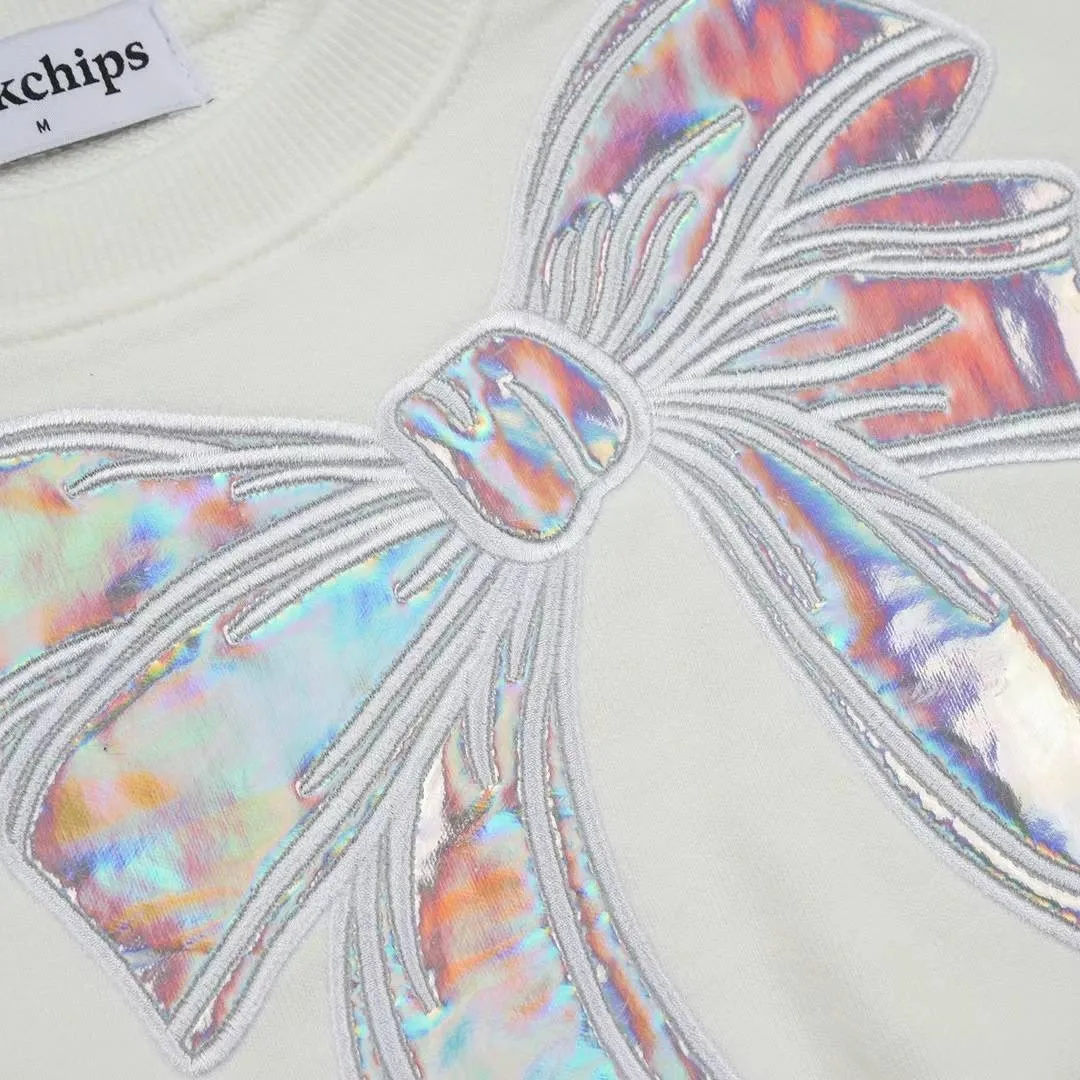 UU238薄款閃亮大蝴蝶結大學T 白 粉 M L XL $530 JS JM JL JXL $570 (線上價再-30元)