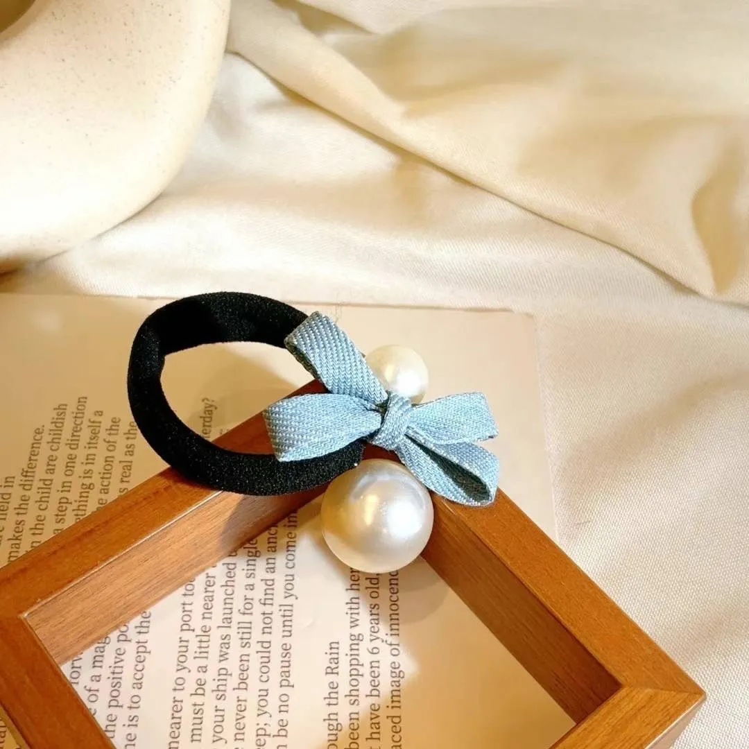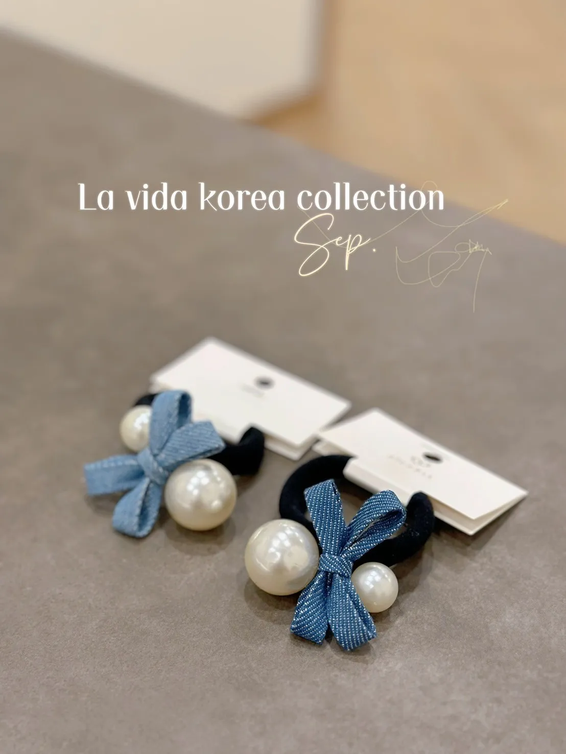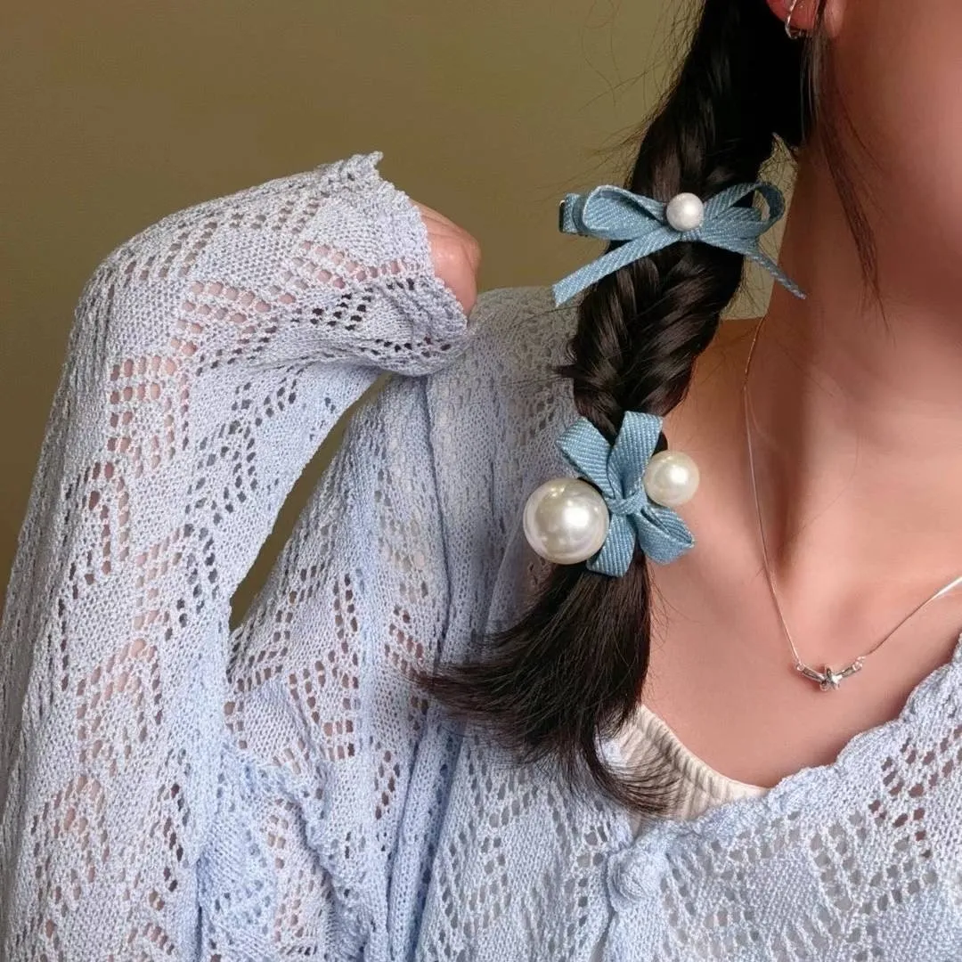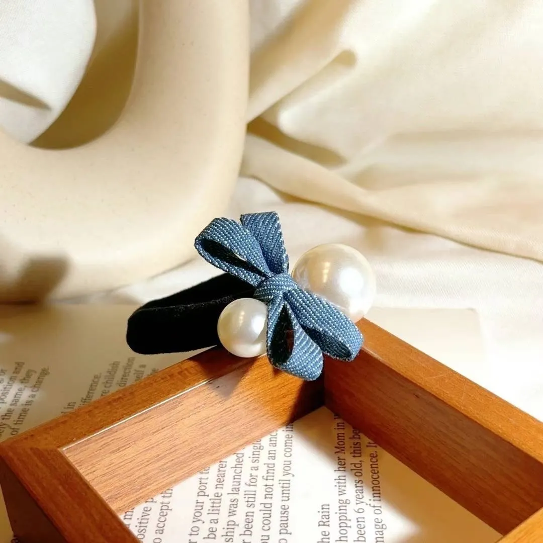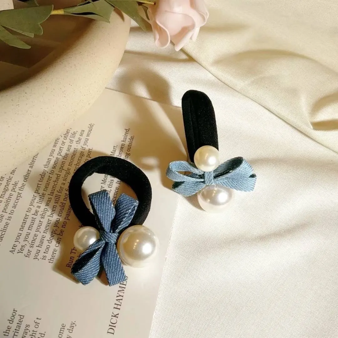 UU308牛仔蝴蝶結珍珠髮圈 淺藍 深藍 官網價$119 線上價$99