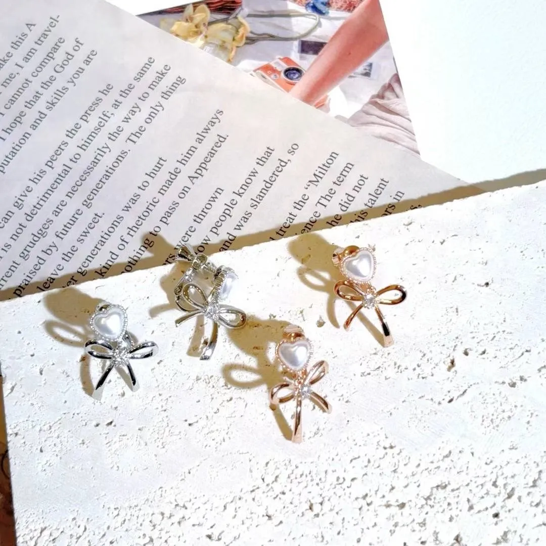 UU342蝴蝶結愛心小鑽耳夾(螺旋夾) 金 銀 官網價$350 線上價$330