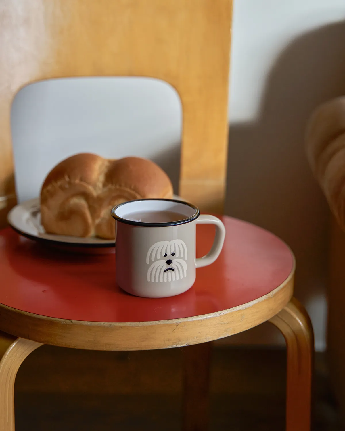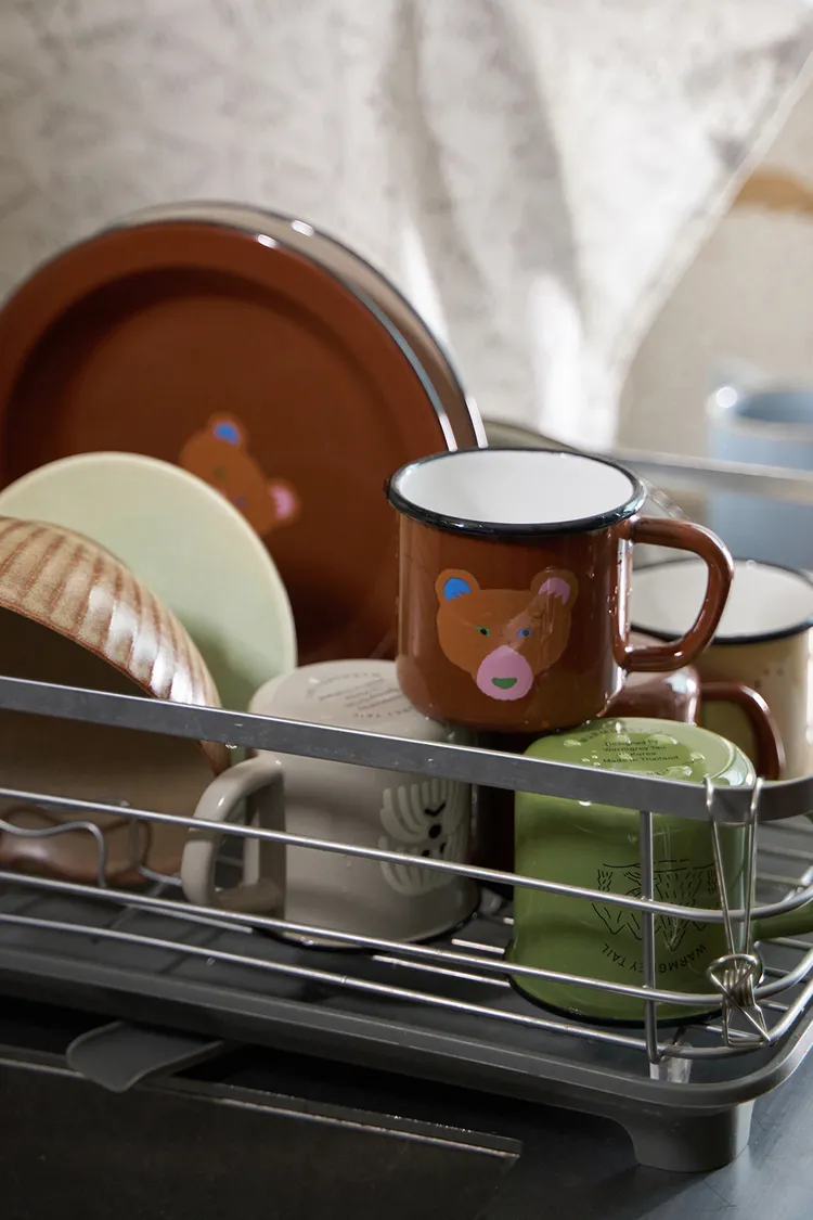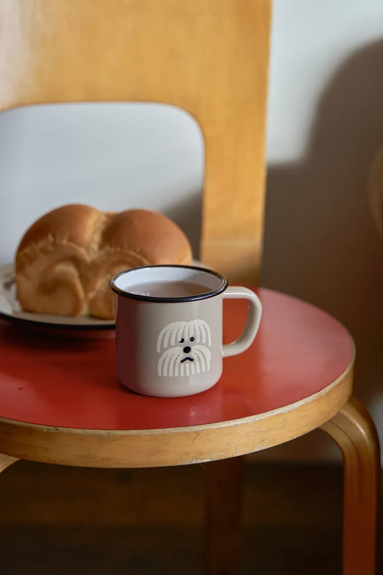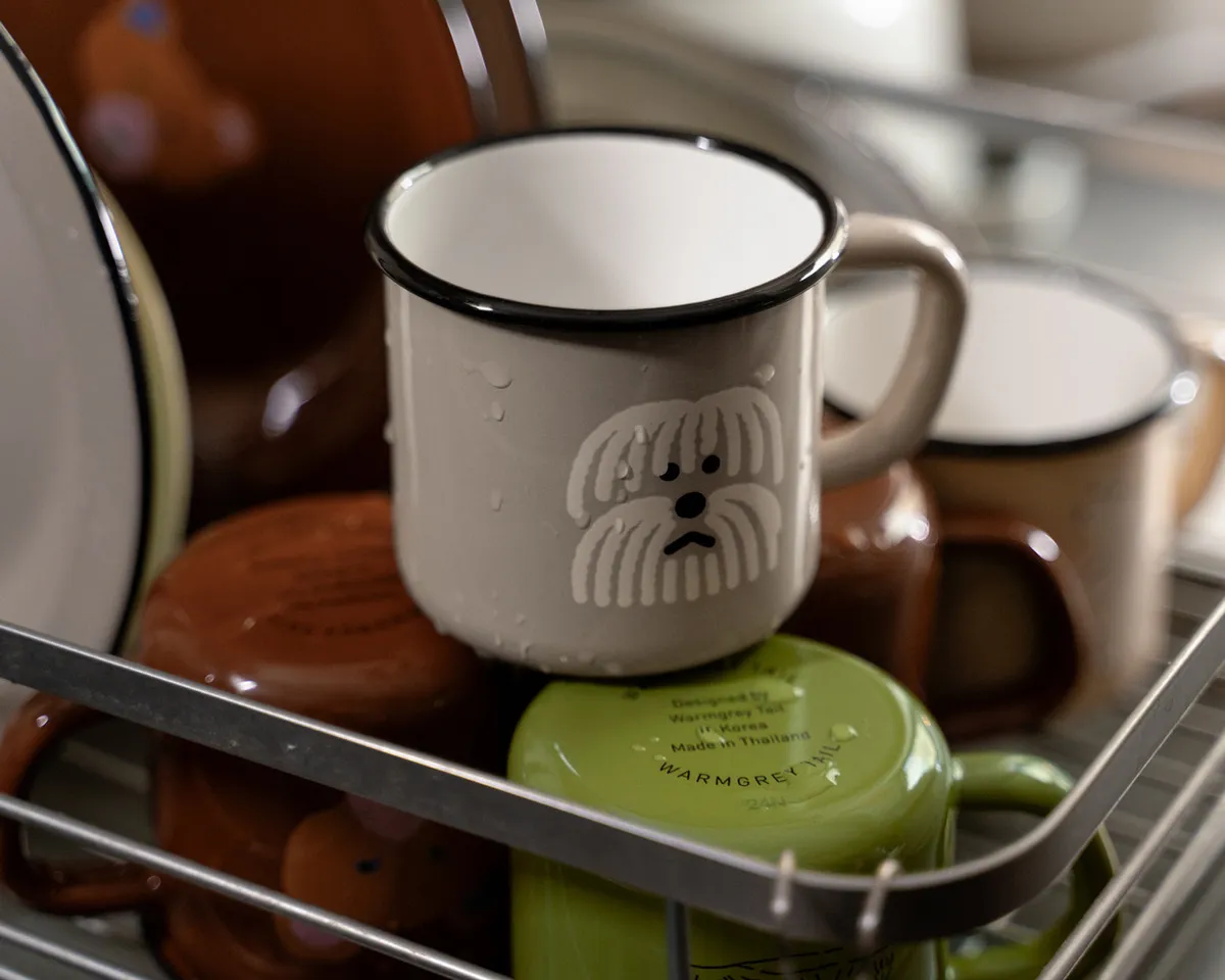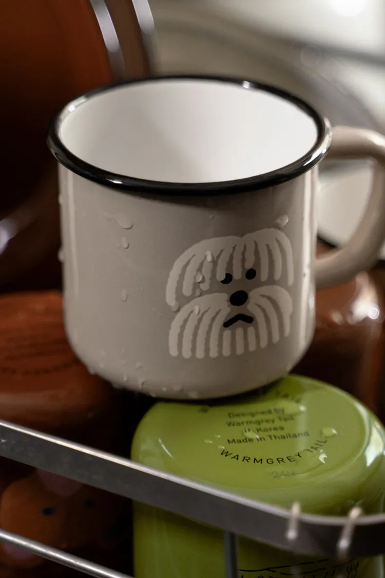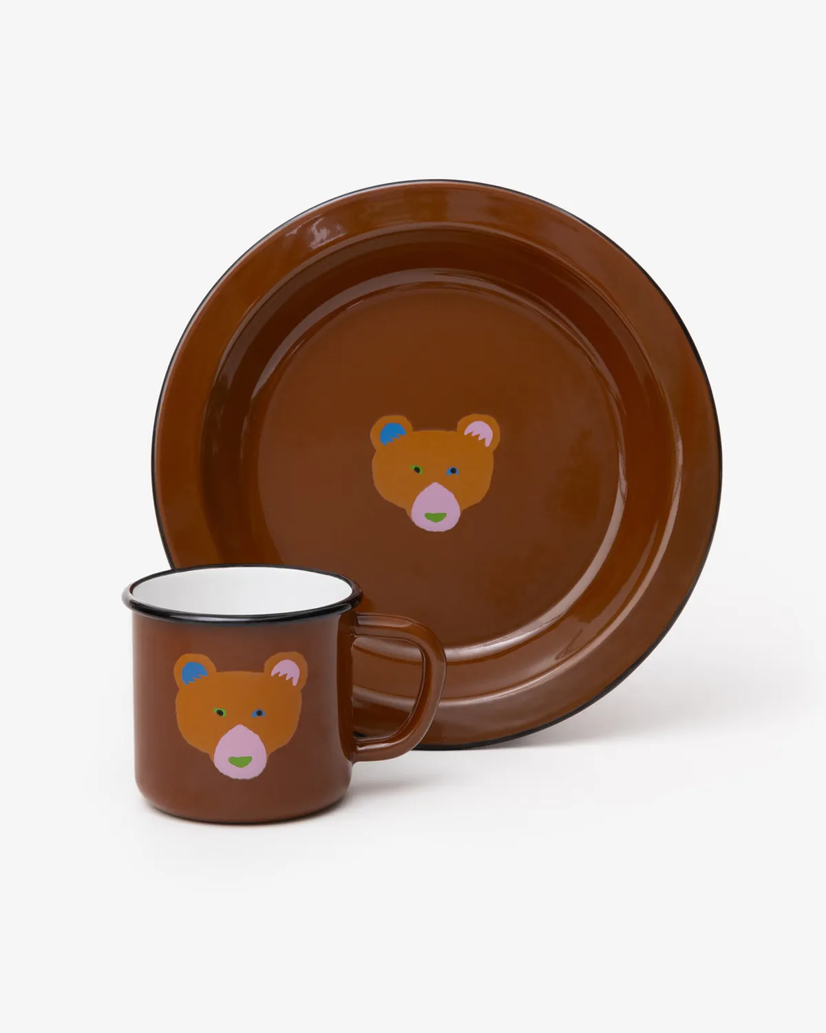 這是一套兩件裝的Warmgreytail琺瑯馬克杯和餐盤禮盒。