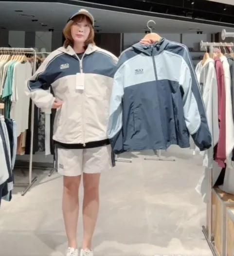WB065推薦款套裝的拚色休閒連帽外套 米 藍 S M L XL 官網價$2680 線上價$2650