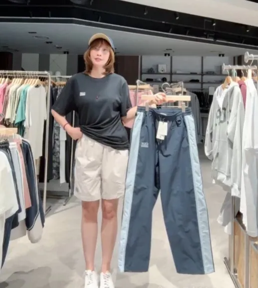 WB067推薦款套裝的拚色休閒長褲 米 藍 S M L XL 官網價$1650 線上價$1620