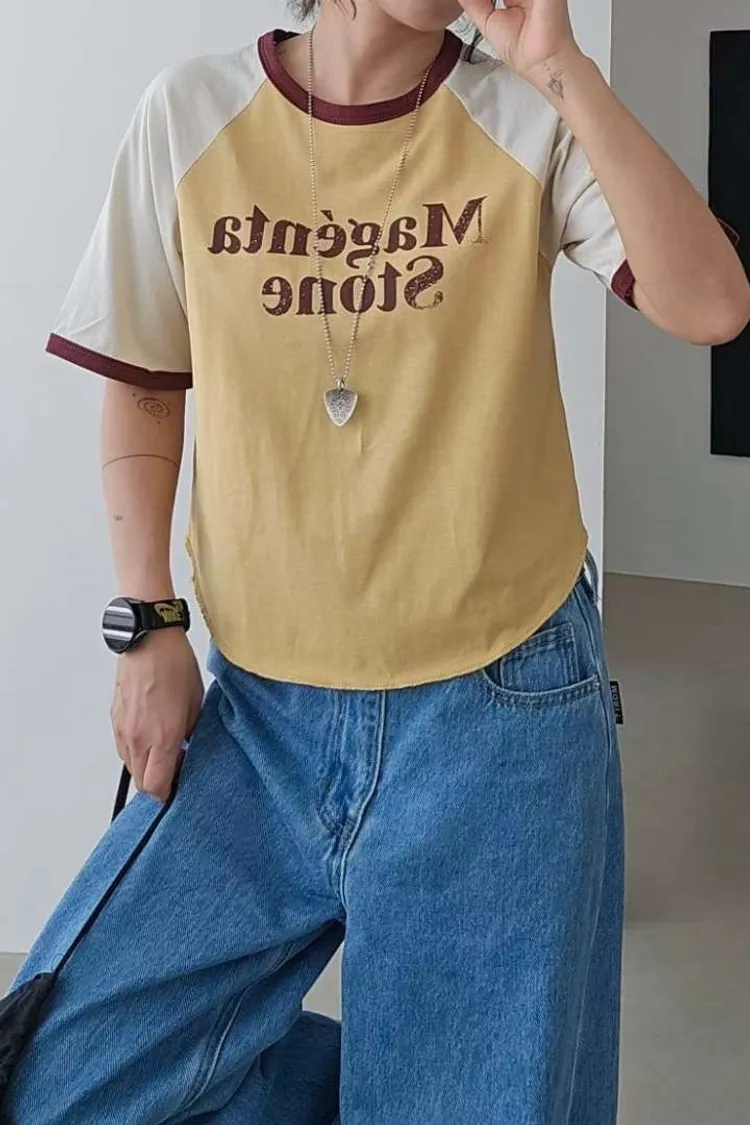 棉,薄款舒適 復古漸層英文 滾邊拚色 透氣適合夏天